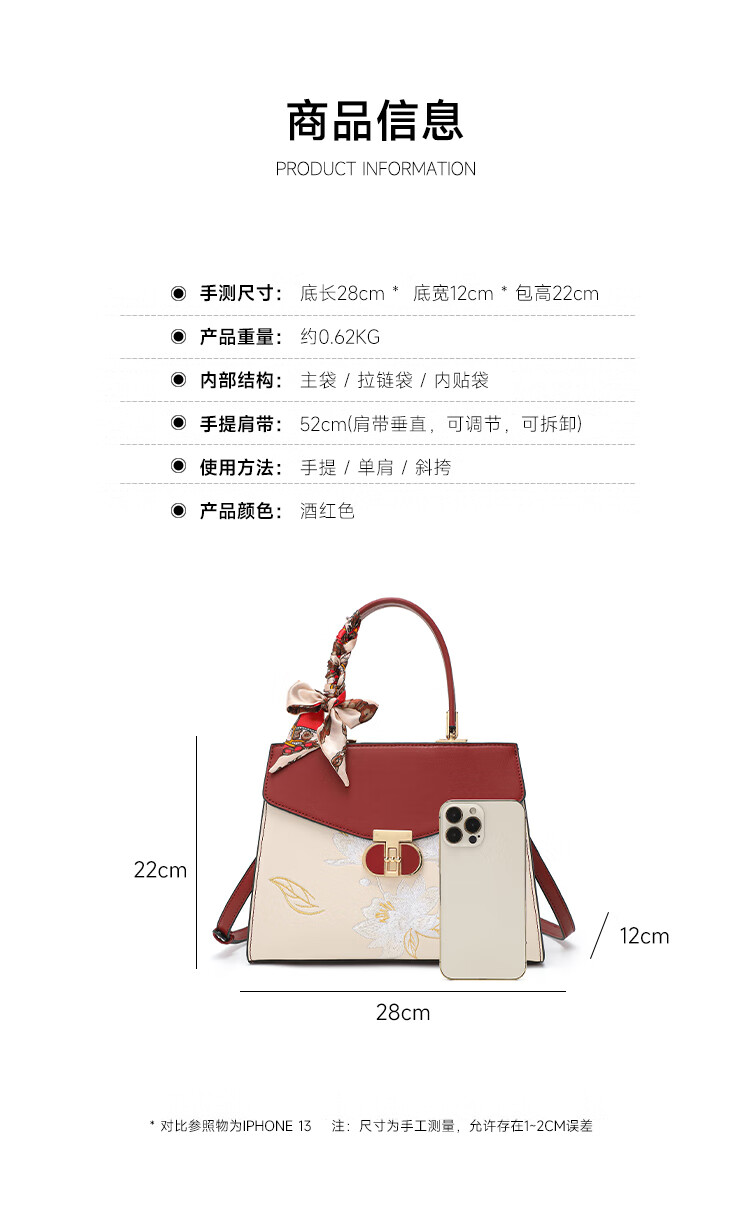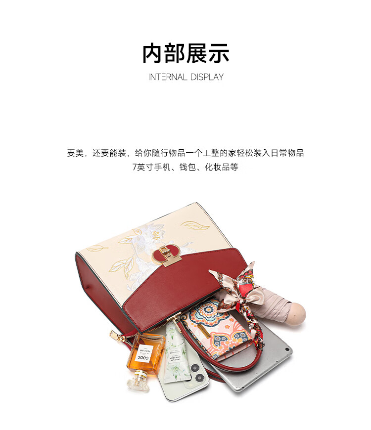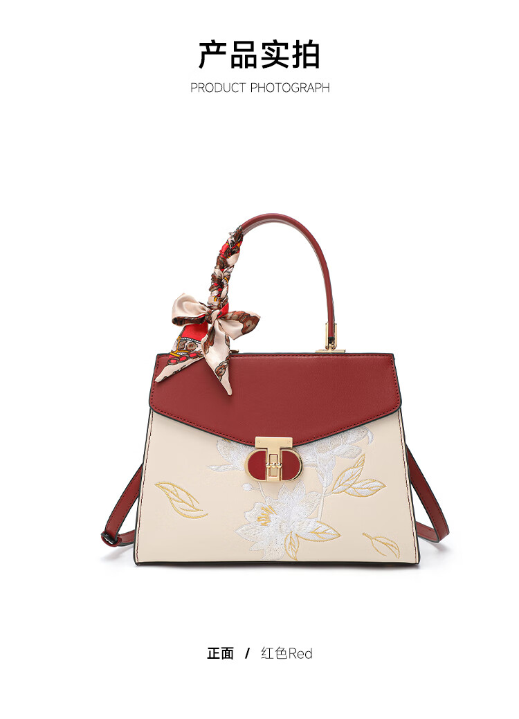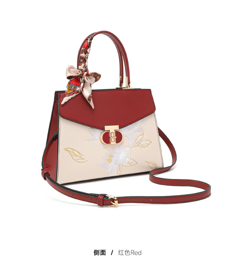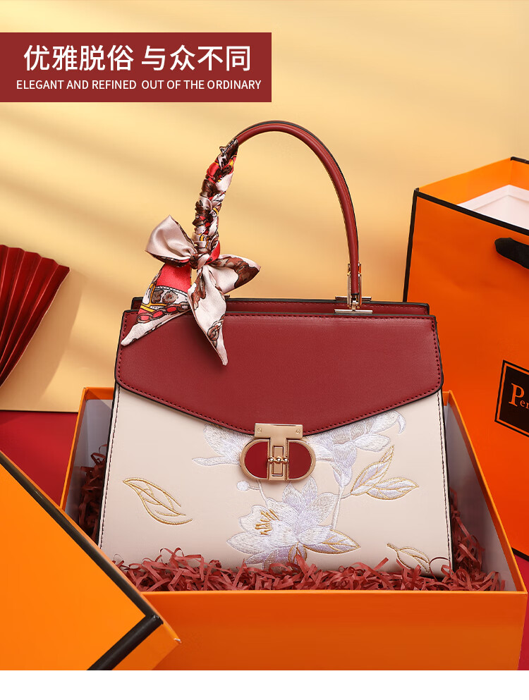 新中式刺绣手提包高级感时尚百搭单肩斜挎包送女友长辈手提托特包 926 红配白