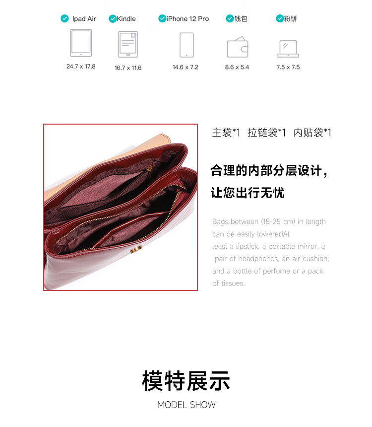 酷奇袋鼠酷奇真皮旅行包女大容量2025新款超大便携收纳包短途出差手提大包 咖啡色