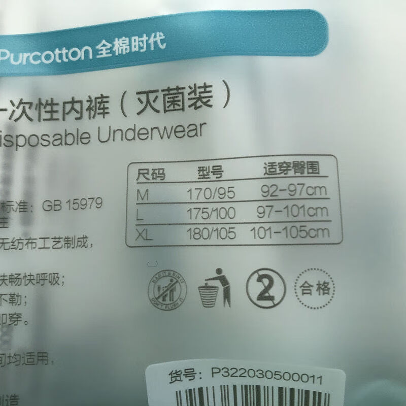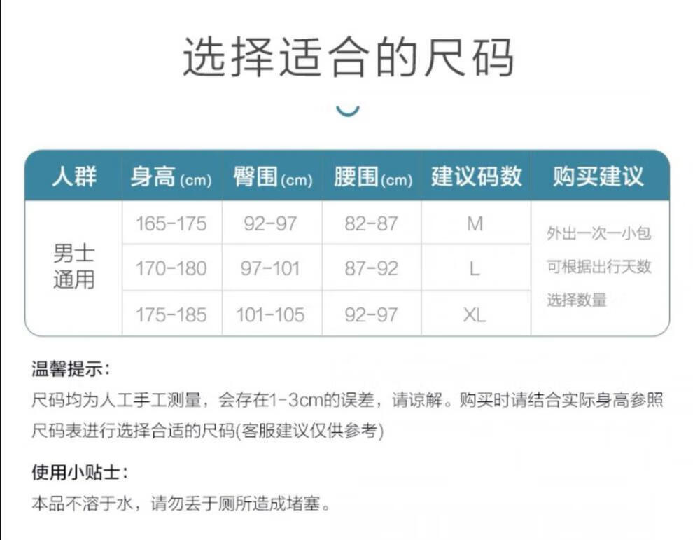 通用一次性内裤男士旅 纯棉短裤无菌底裤旅游 1袋5条 M