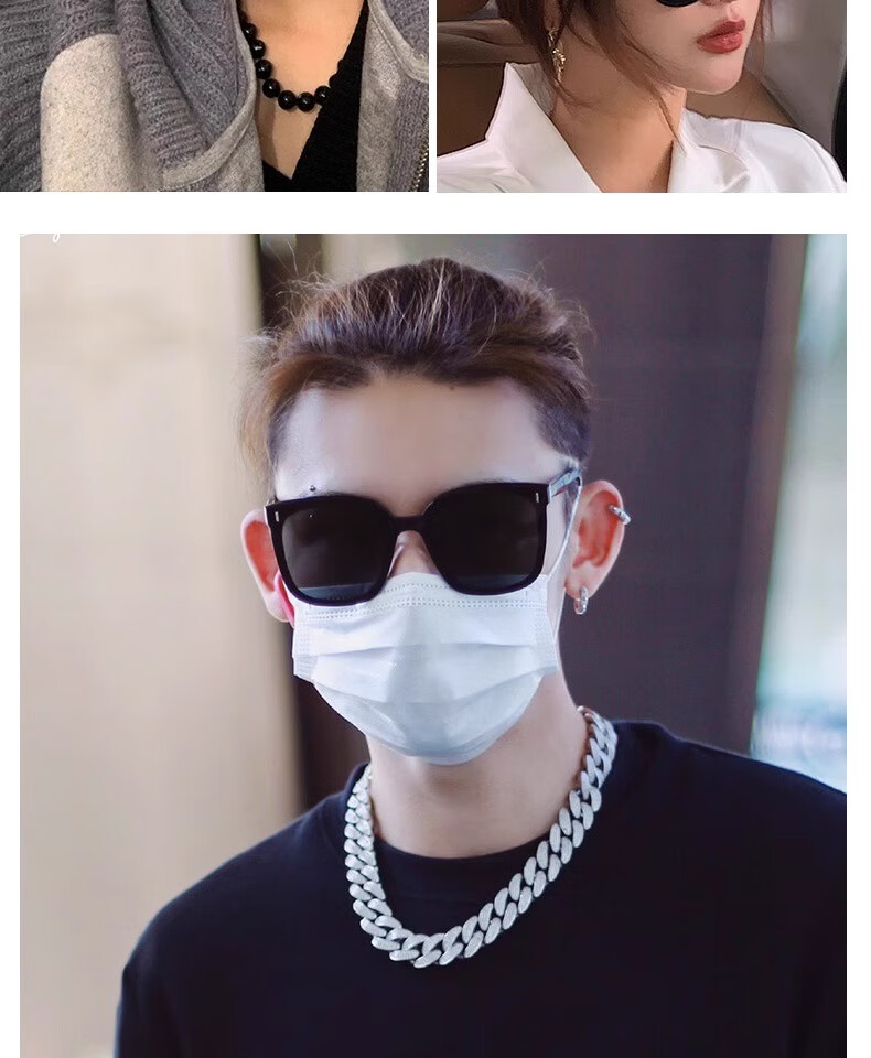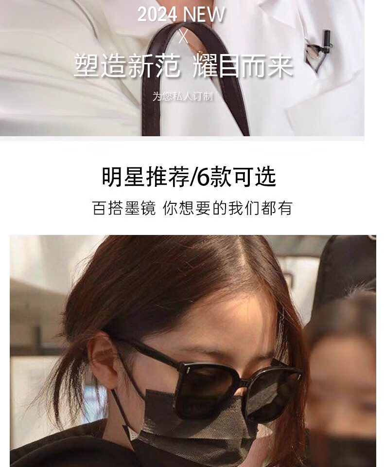 LESCA LUNETIERGM新潮网红墨镜高级时尚开车防紫外线 HE同款黑框