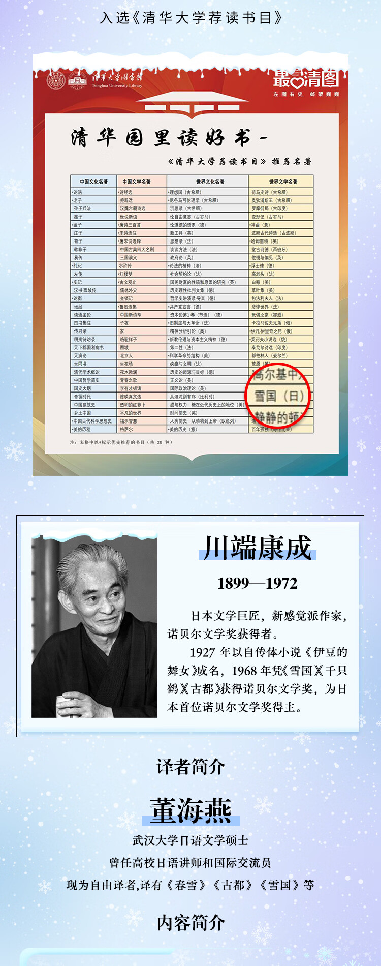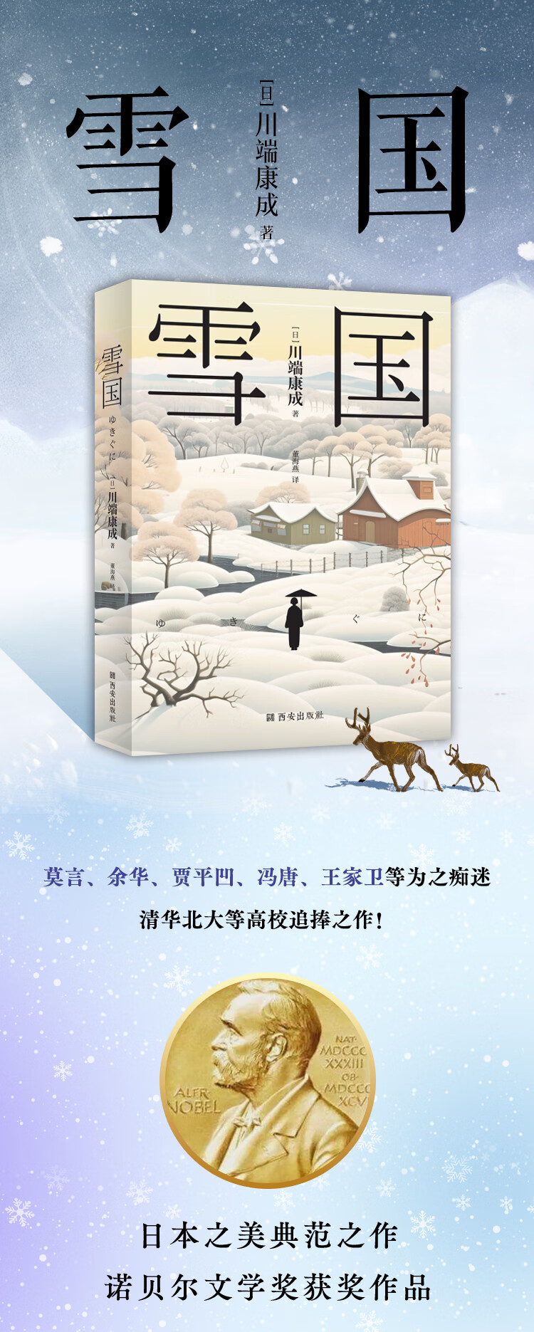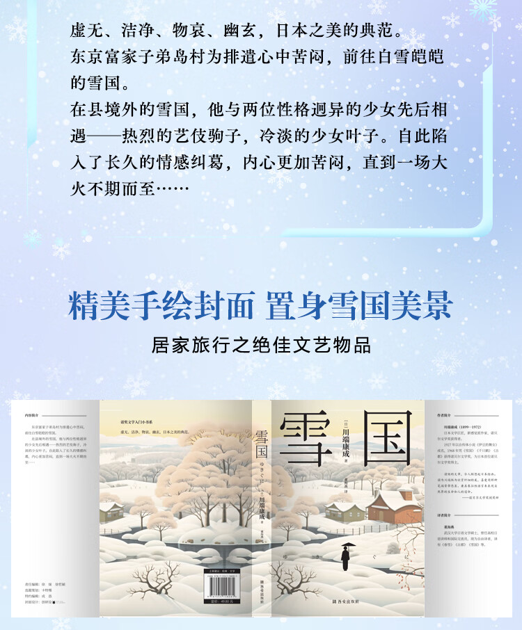 正版现货】川端康成:雪国 清华大学荐读书目日本之美典范之作 诺贝尔文学奖获奖作品 居家旅行之绝佳文艺物品 精美手绘封面 雪国