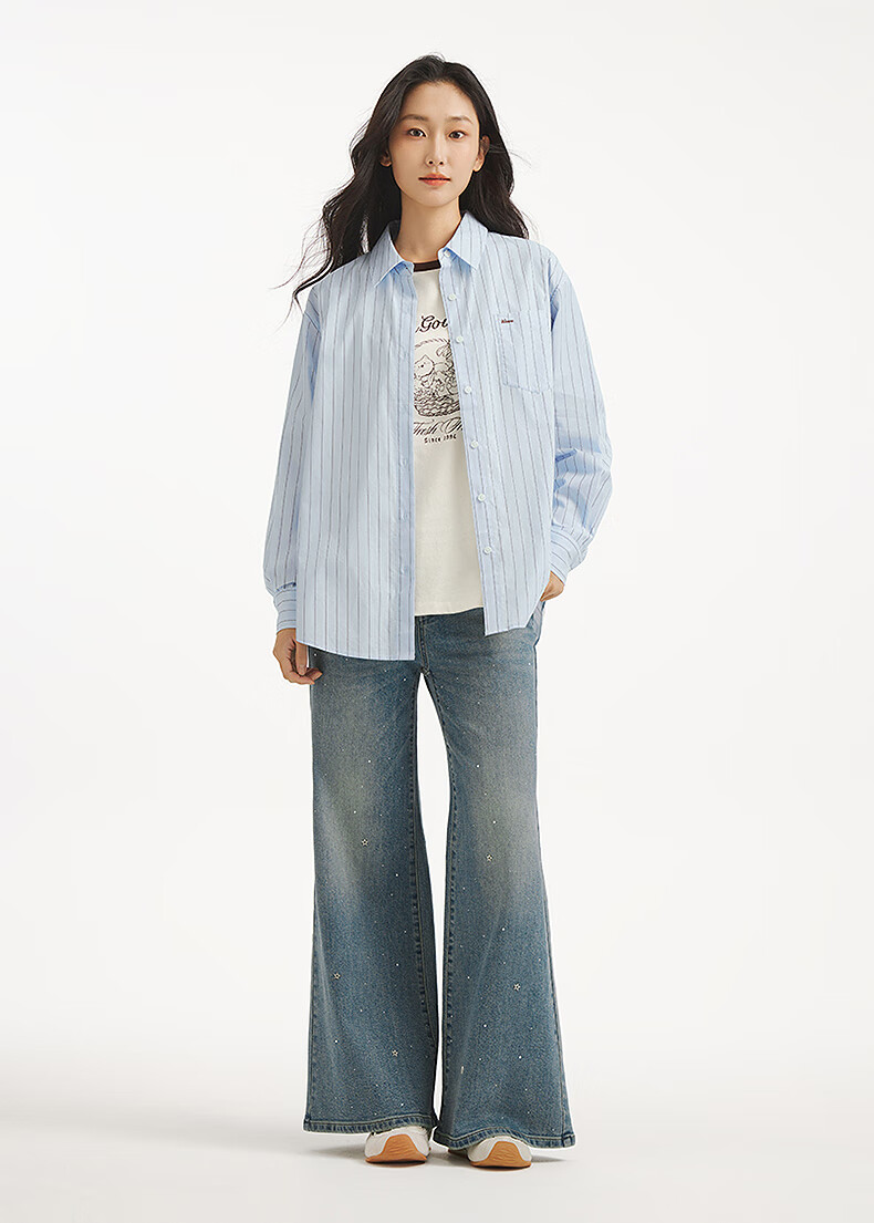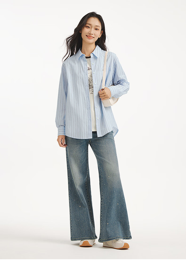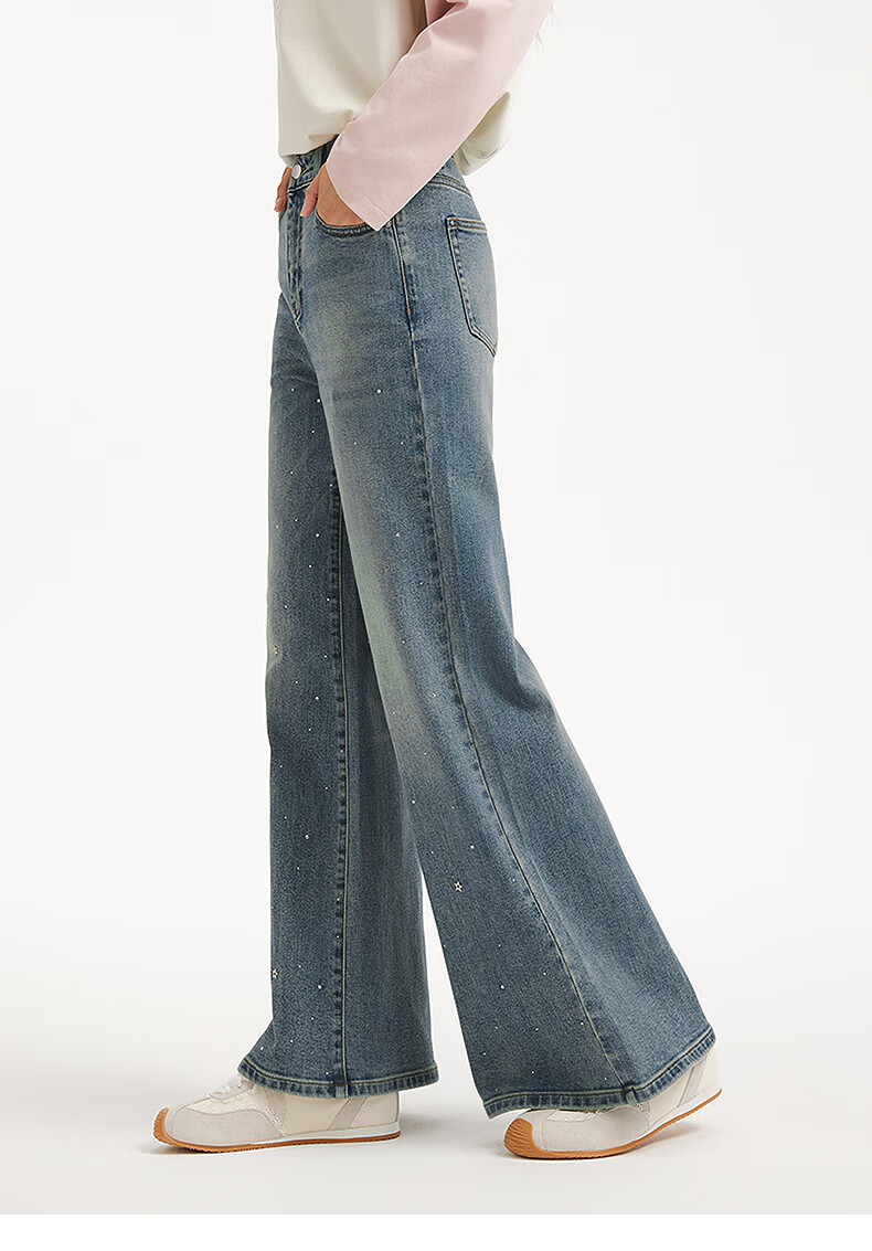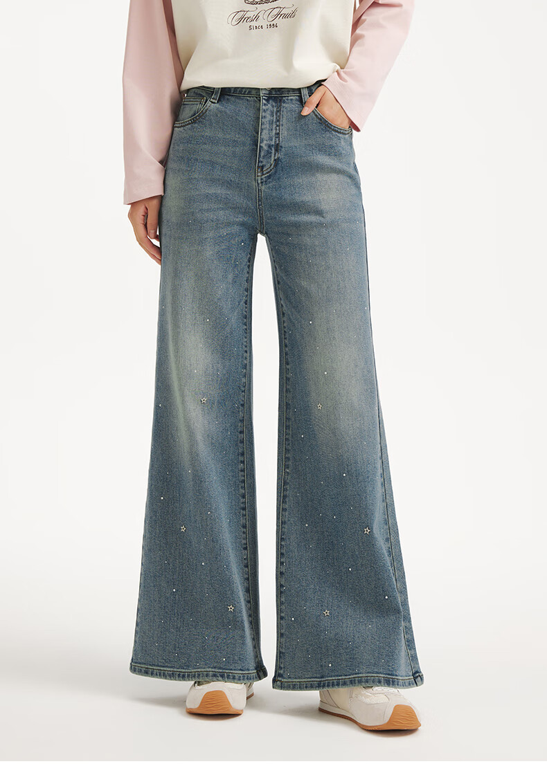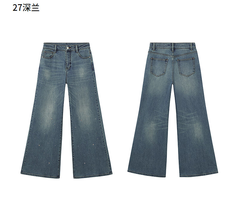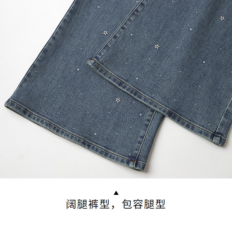 热风【商场同款】满天星牛仔裤宽松喇叭裤2025年秋新款亮钻潮流阔腿裤 27深兰 29