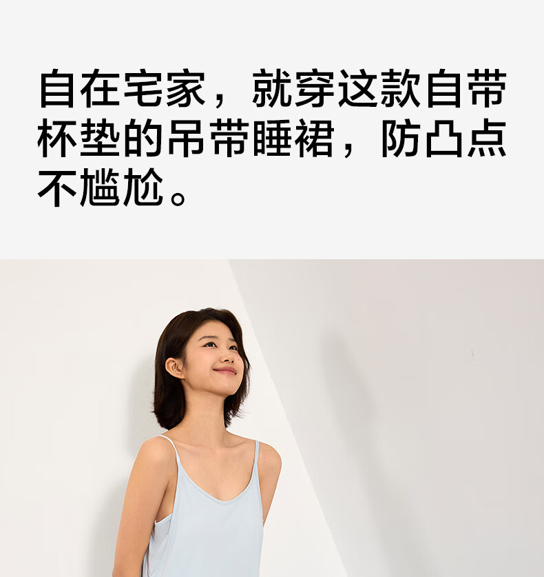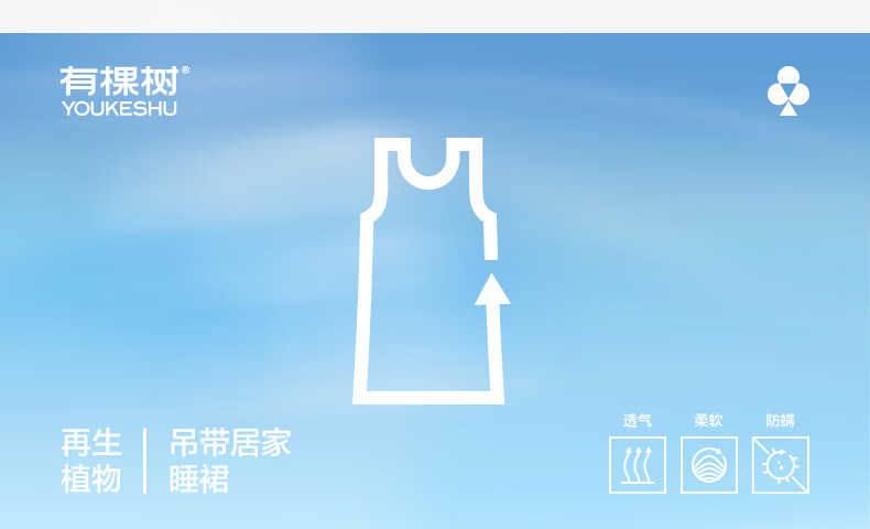 有棵树【带胸垫】睡裙女夏季中长款凉感防螨薄吊带睡衣 空气蓝 XL