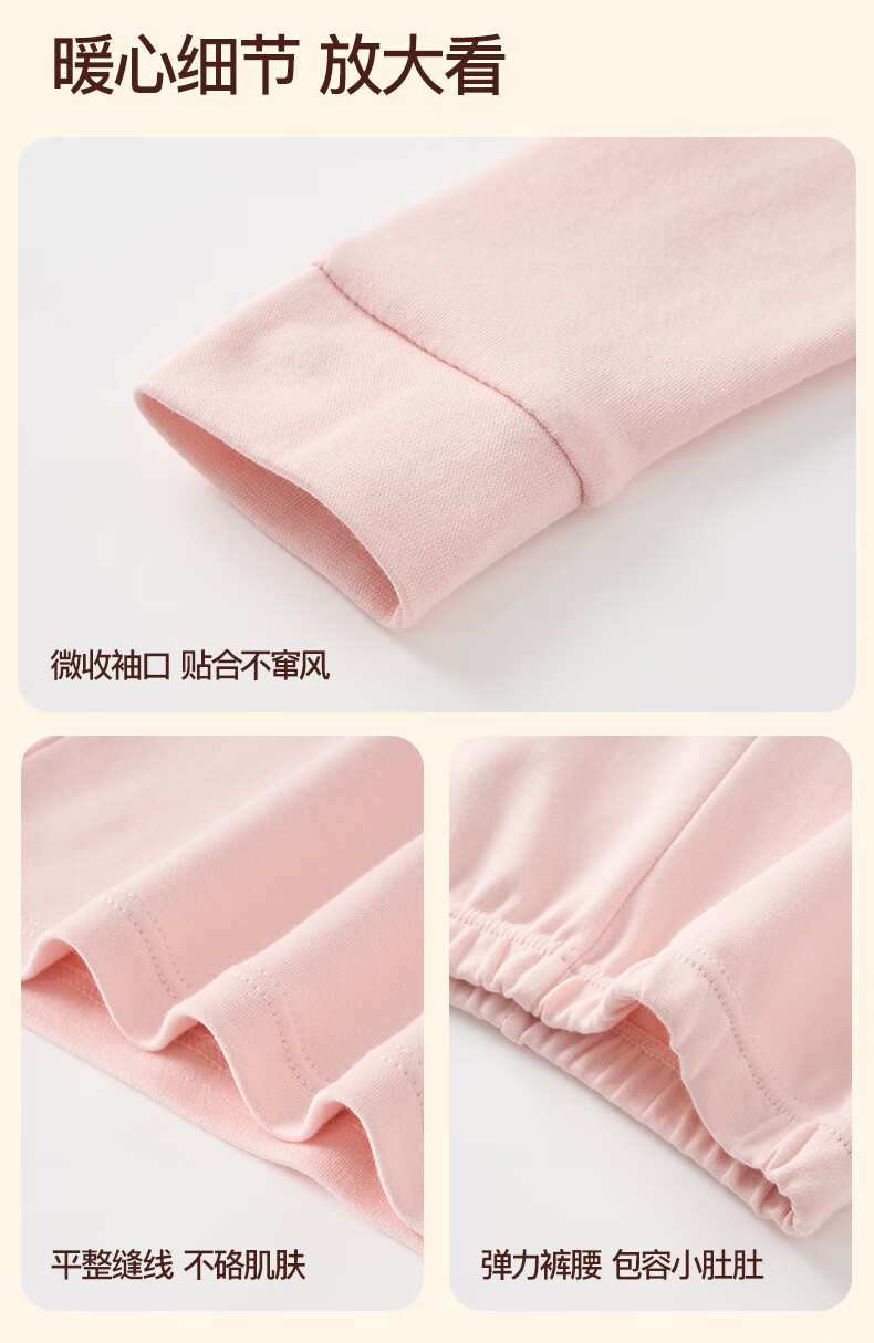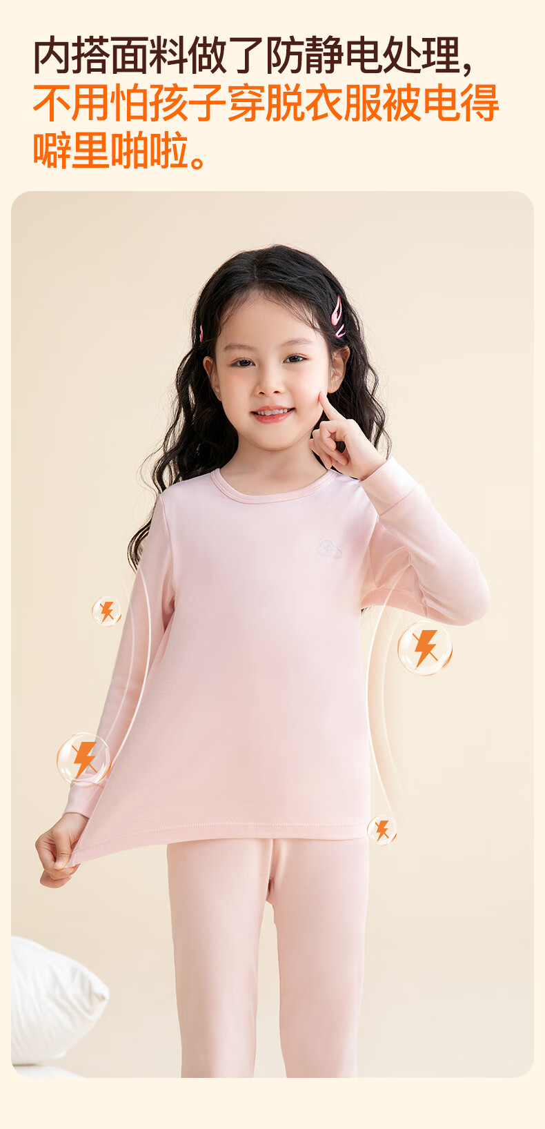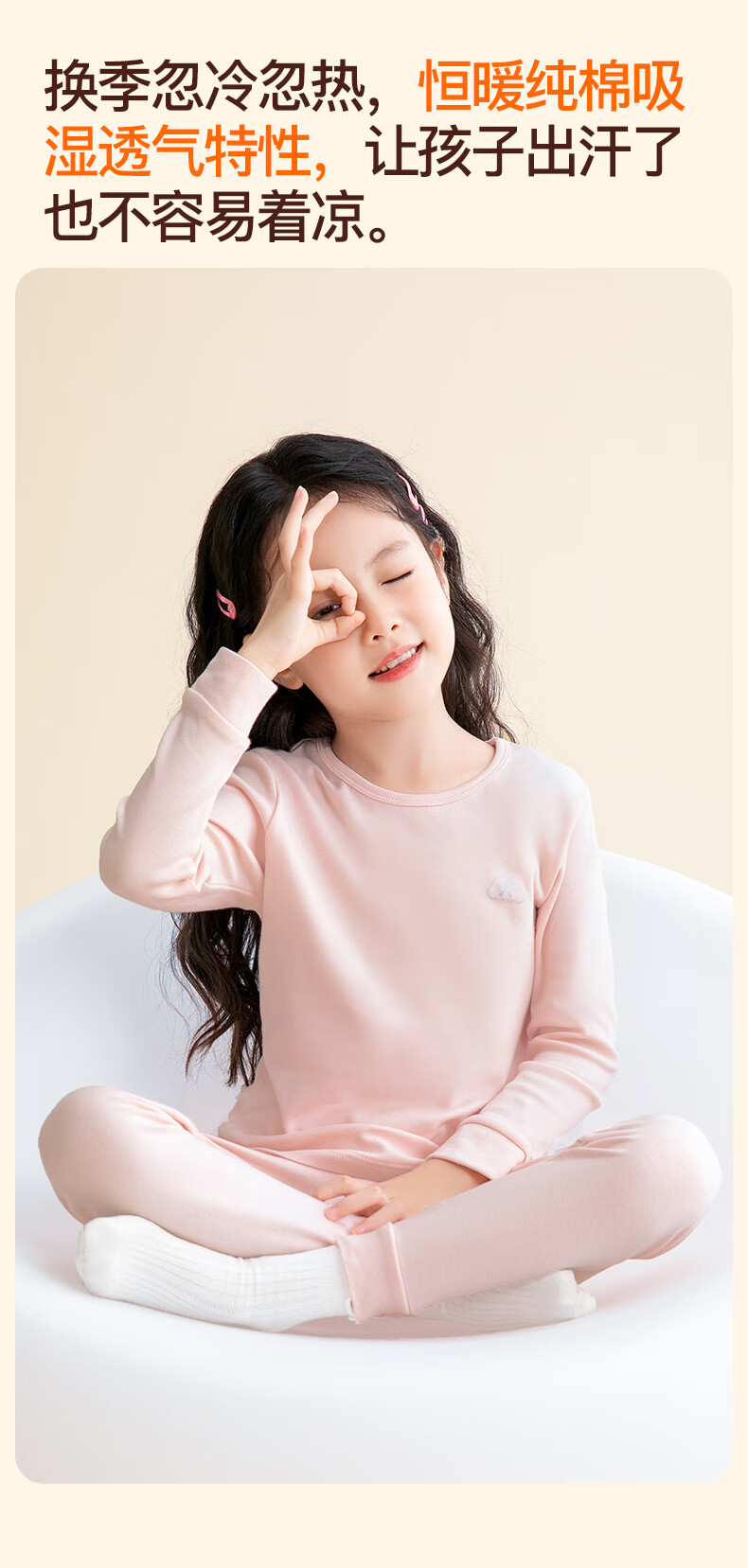 芬腾保暖内衣女童100%纯棉2025秋防静电保暖打底睡衣套装儿童柔暖秋衣 粉橙 150