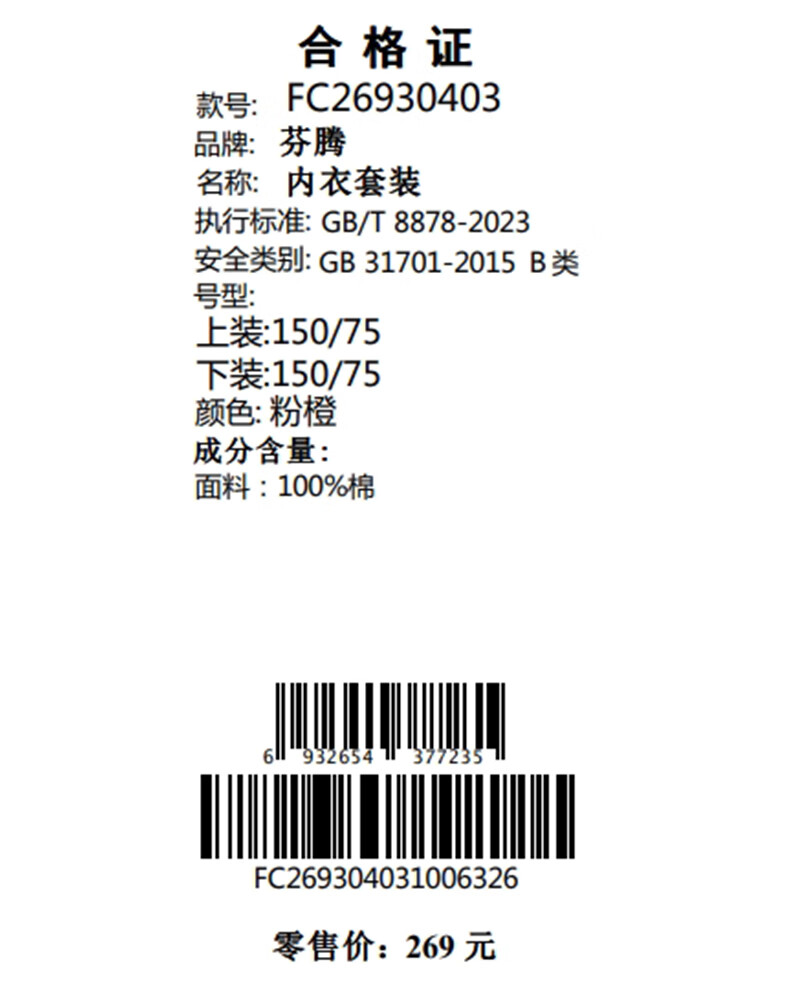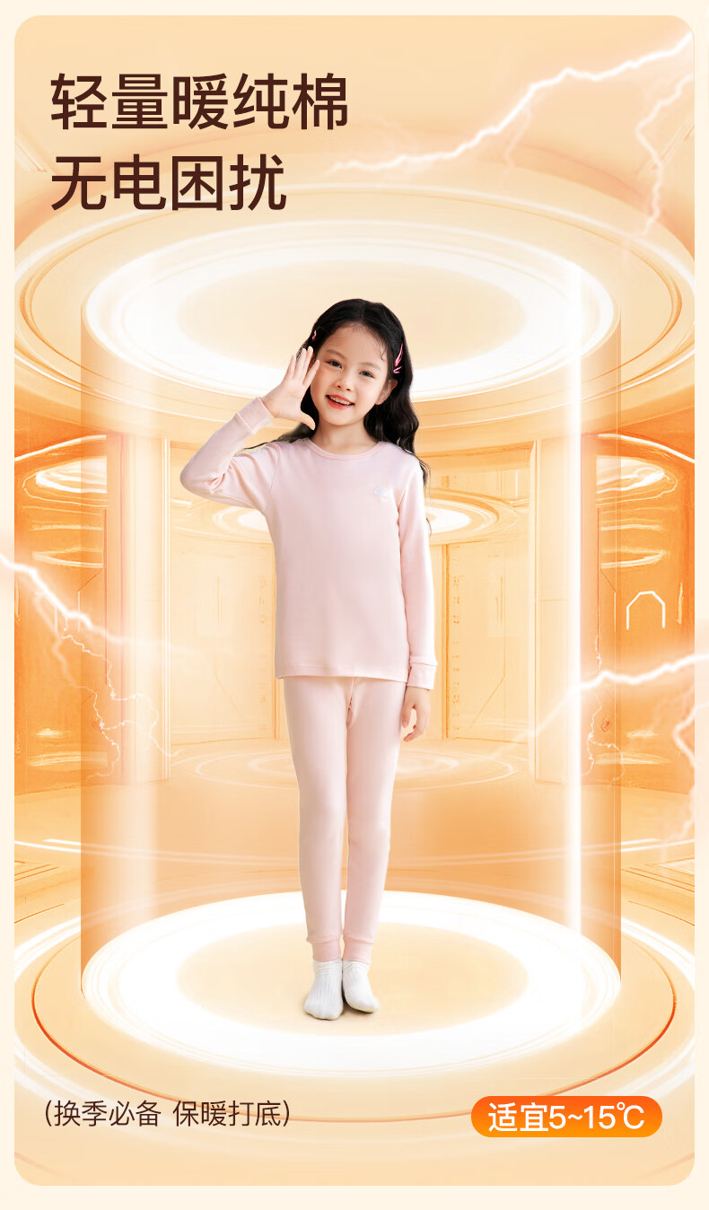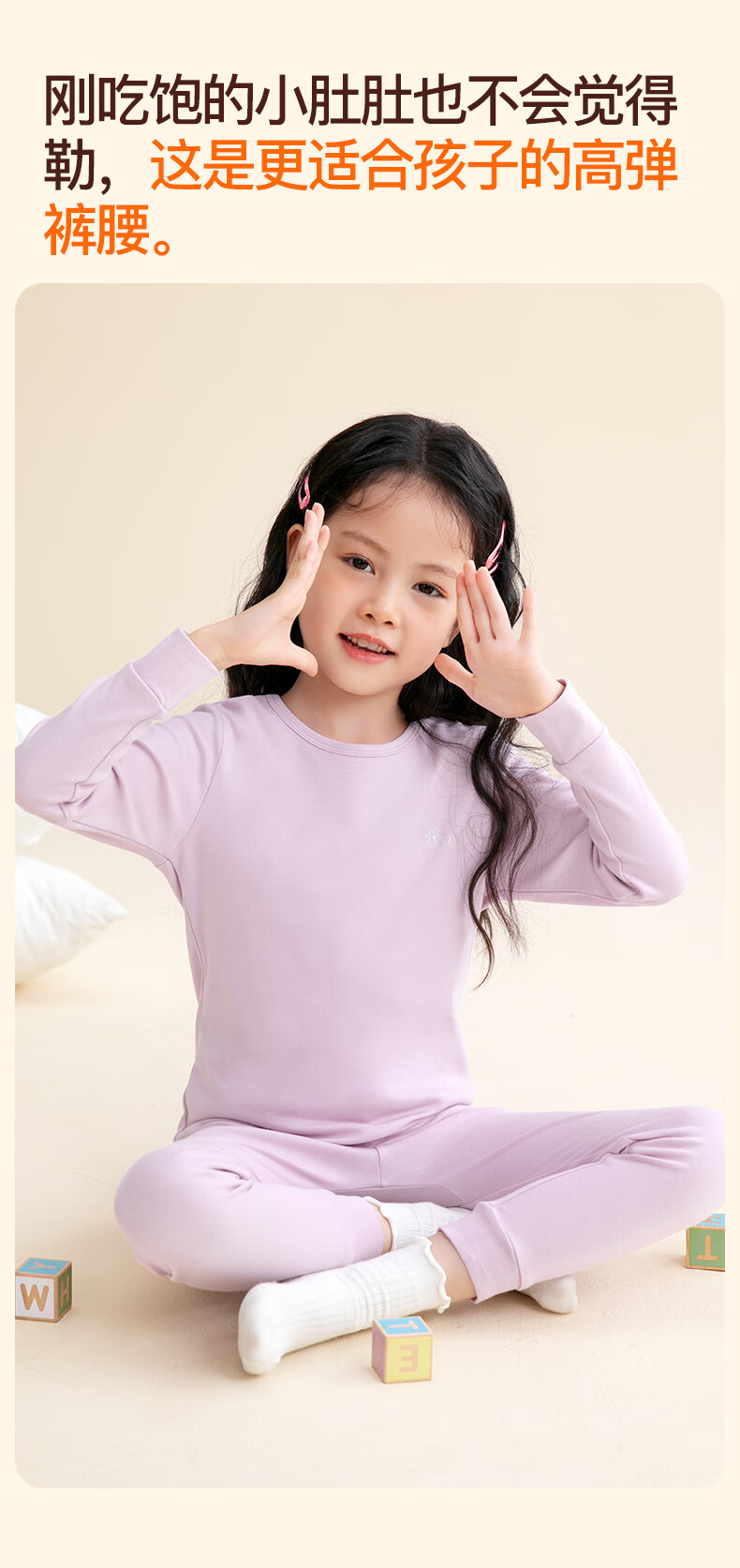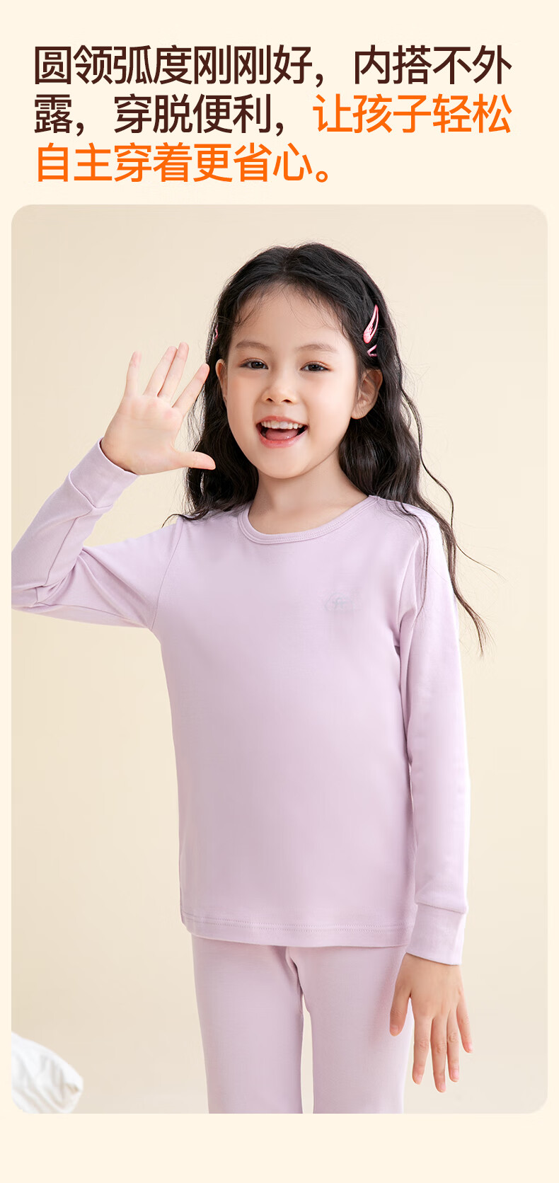 芬腾保暖内衣女童100%纯棉2025秋防静电保暖打底睡衣套装儿童柔暖秋衣 粉橙 150