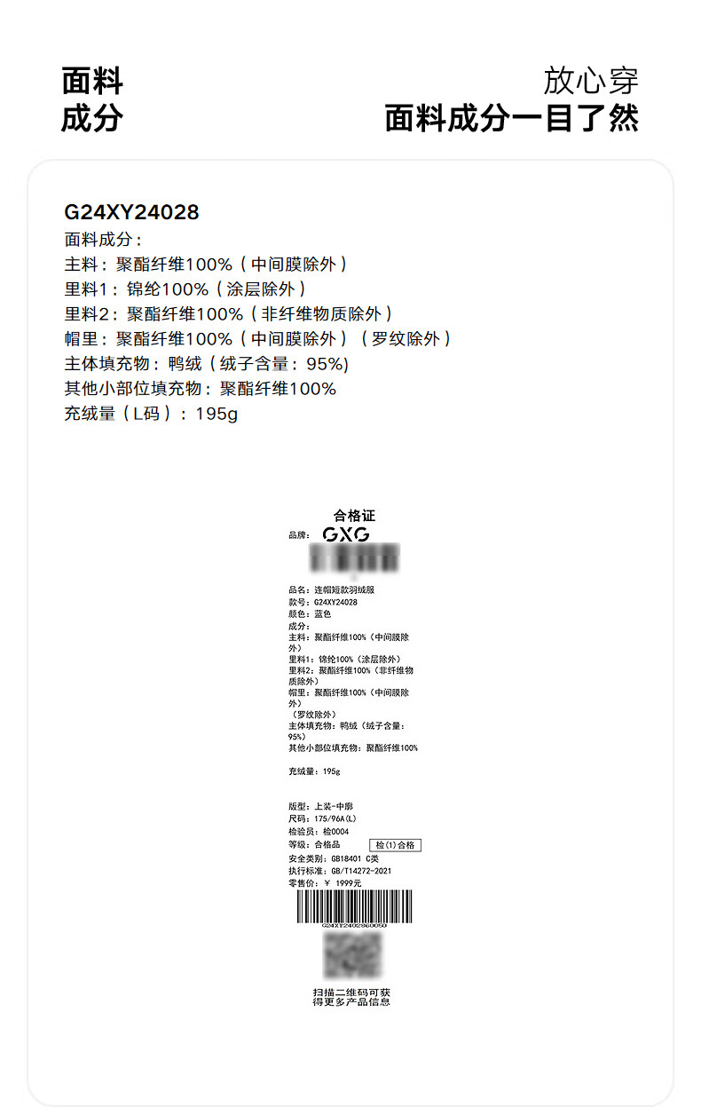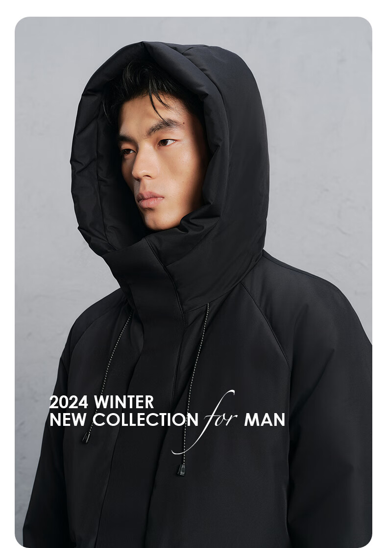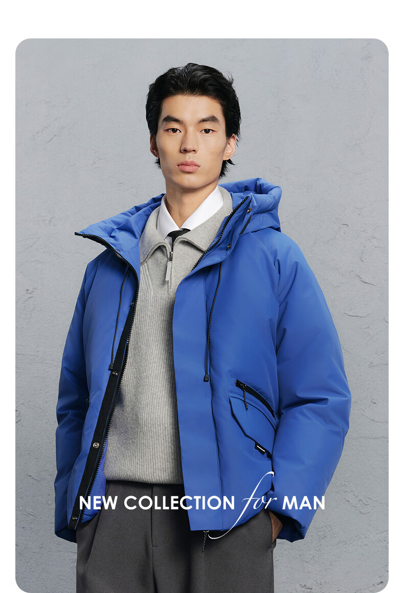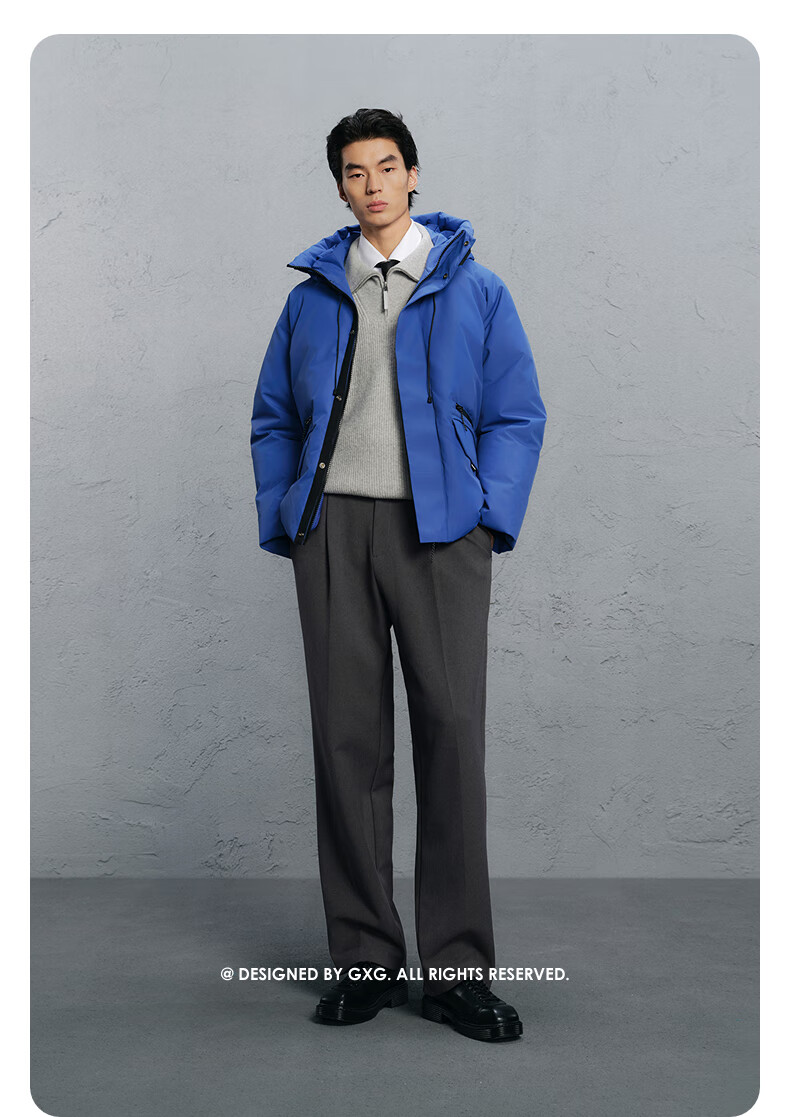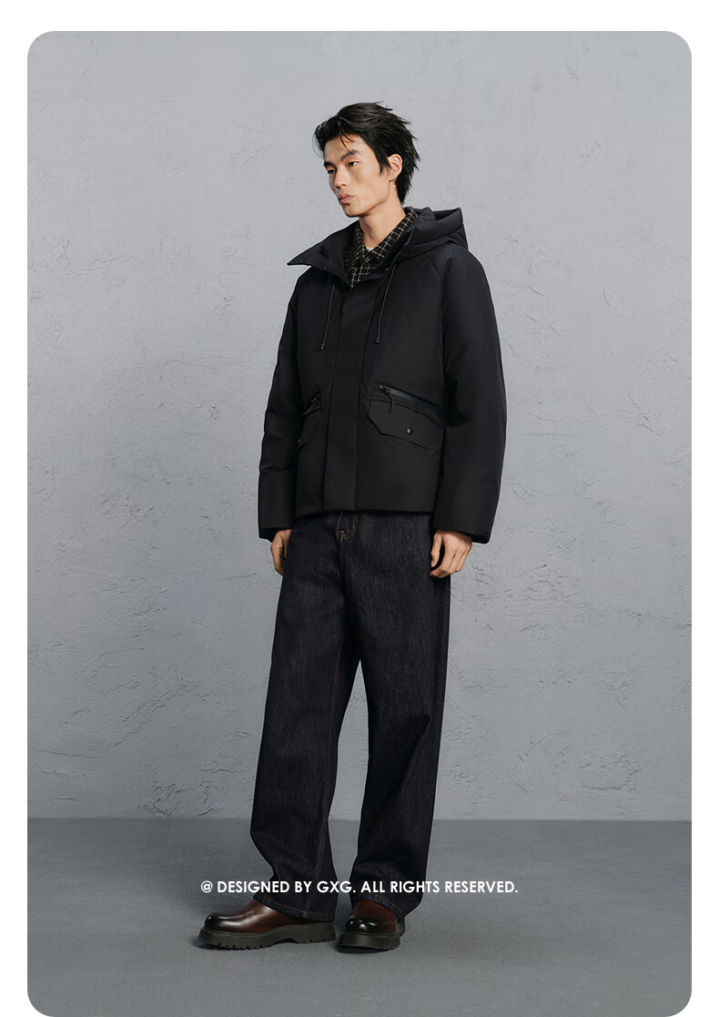 GXG男装 简约连帽羽绒服男通勤外套 24冬新品 黑色 170/M