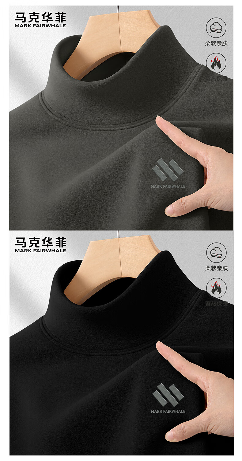 马克华菲男士打底衫秋冬德绒半高领保暖上衣男2025新款高级双面绒T恤男款