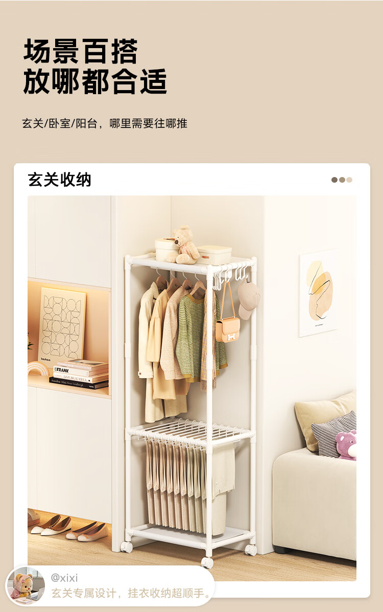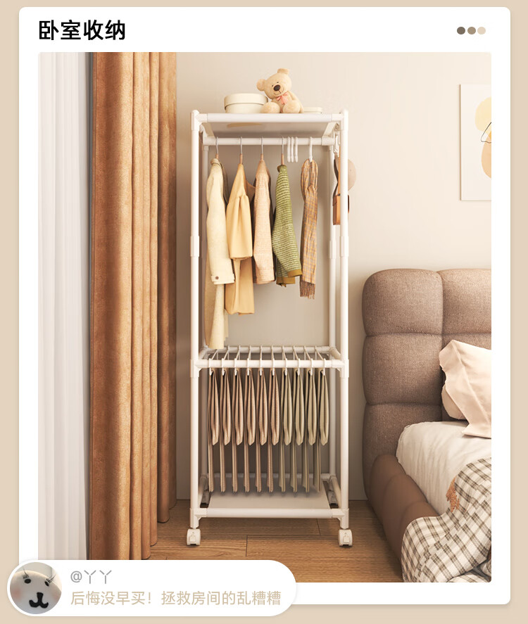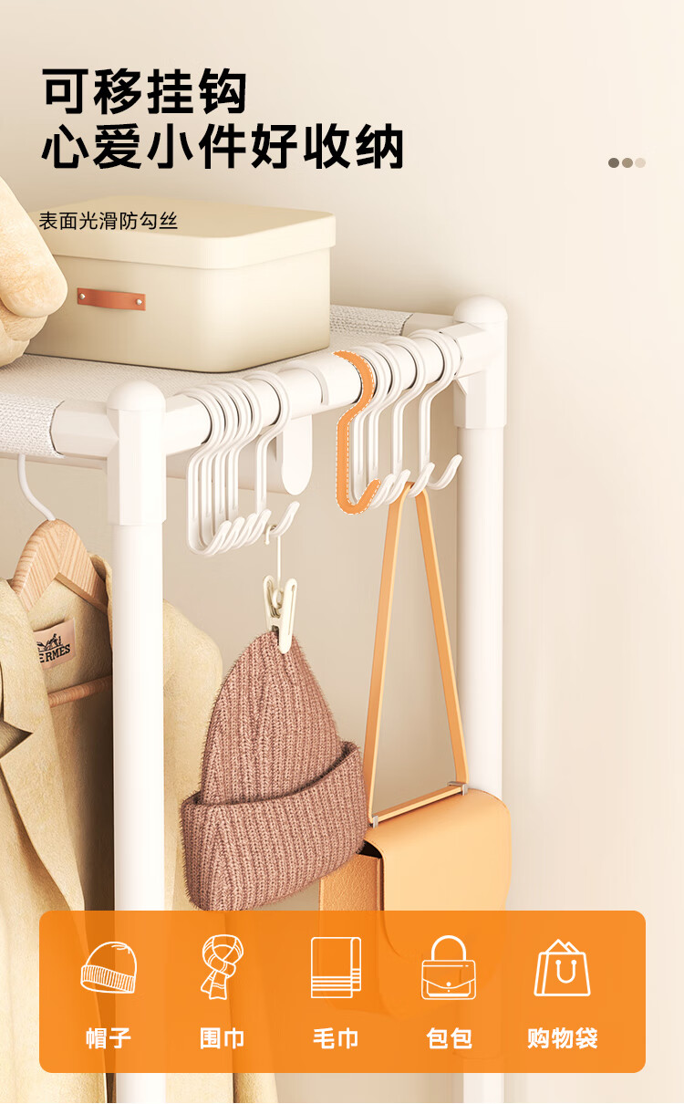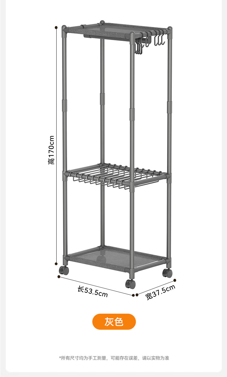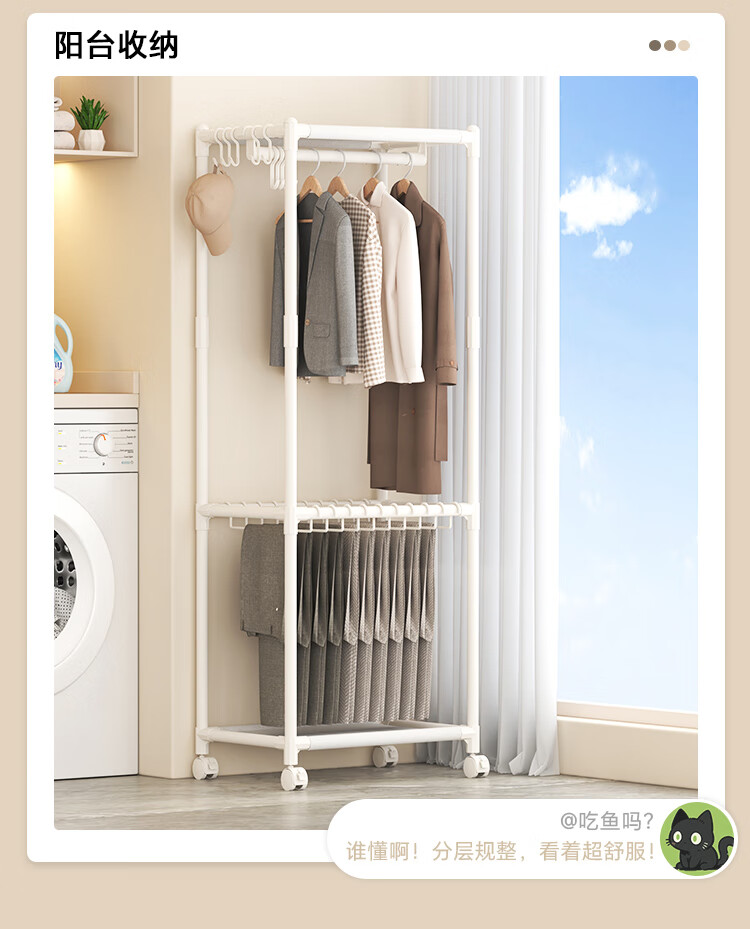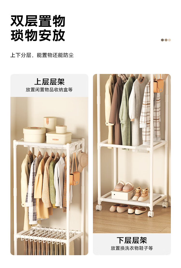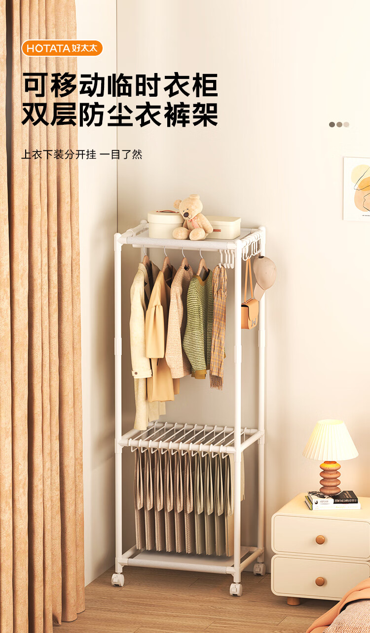 好太太(Hotata)落地晾衣架可移动室内家用多功能双层挂衣架卧室大容量收纳衣帽架 【灰色】双层挂衣架/送挂钩+送裤架