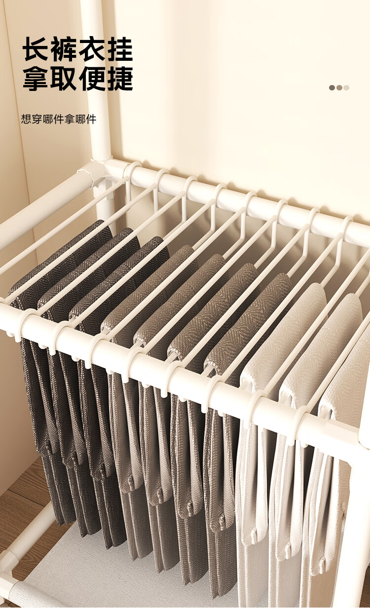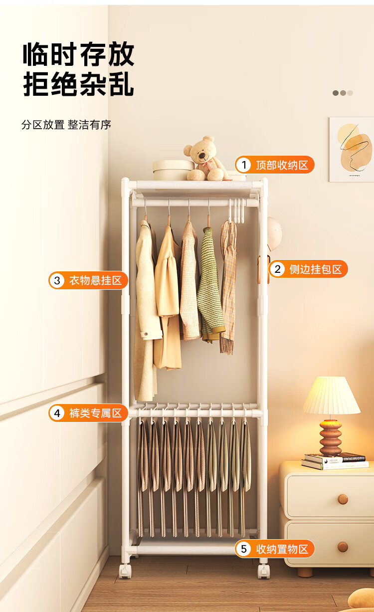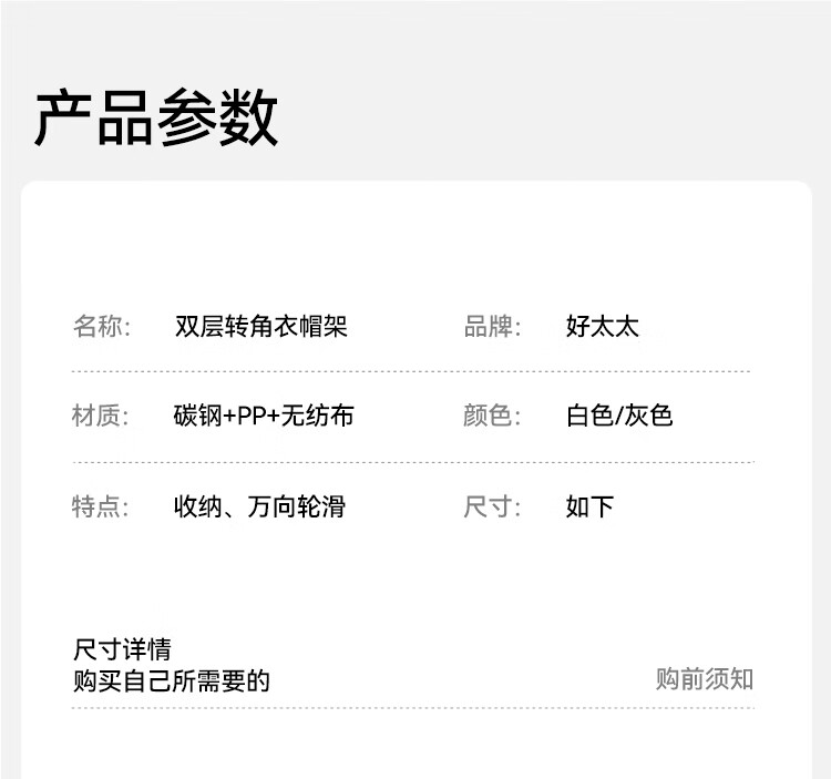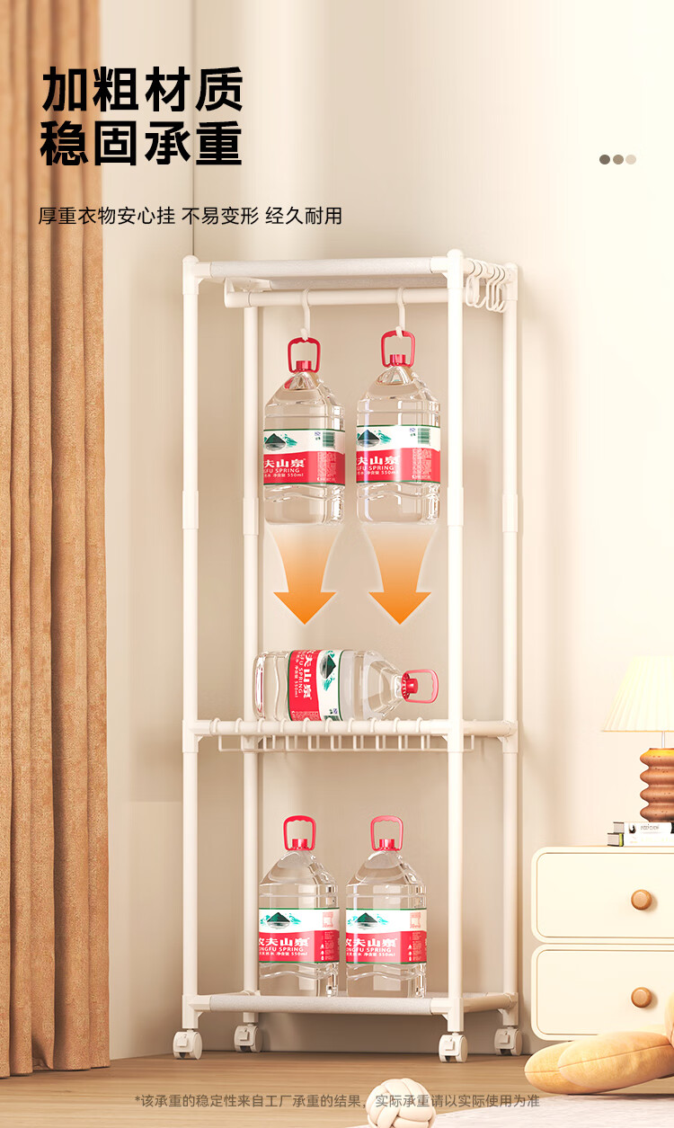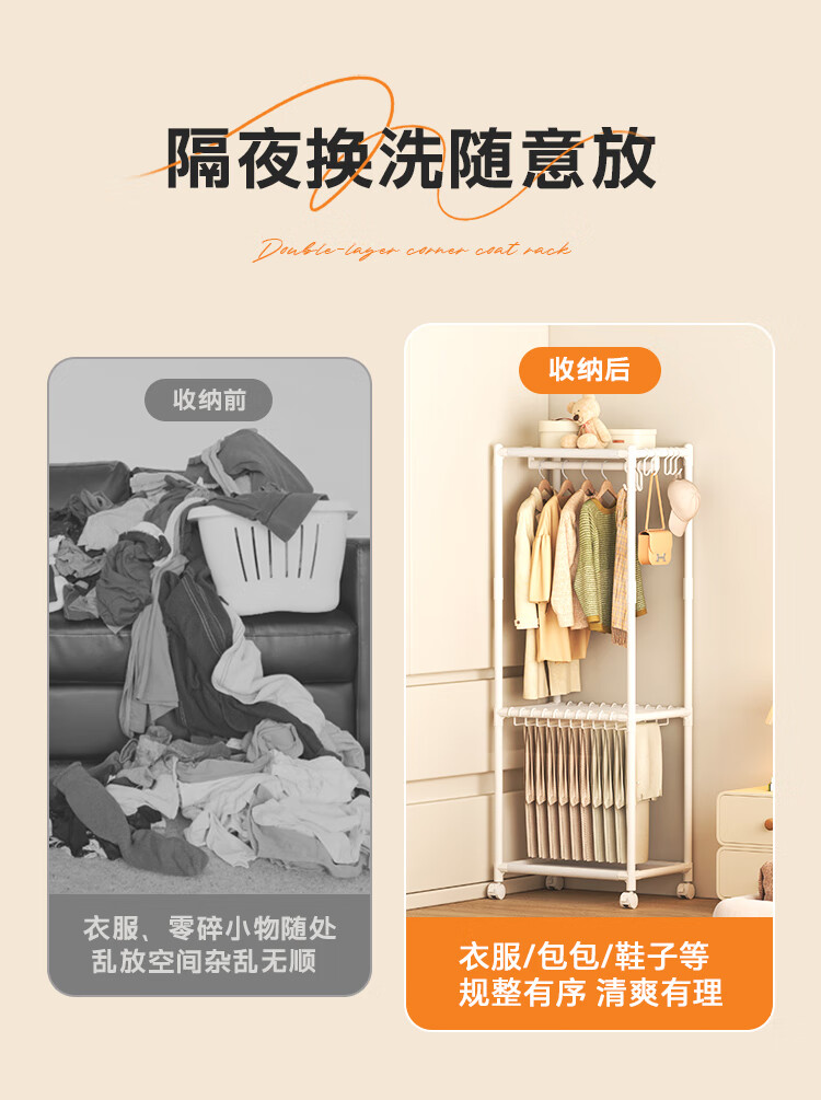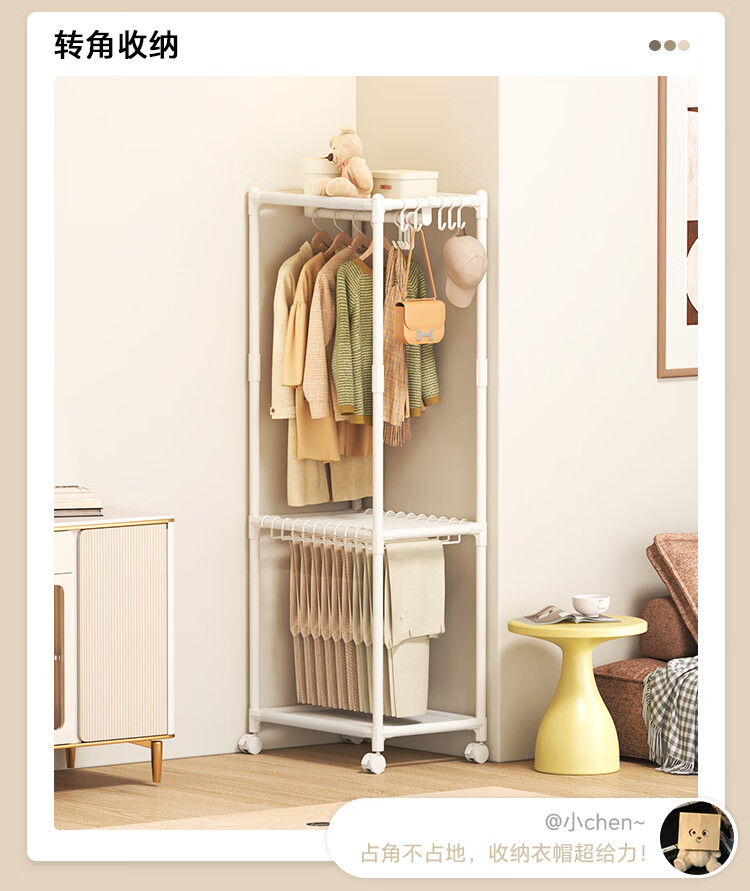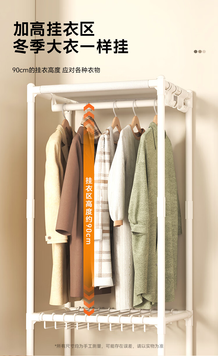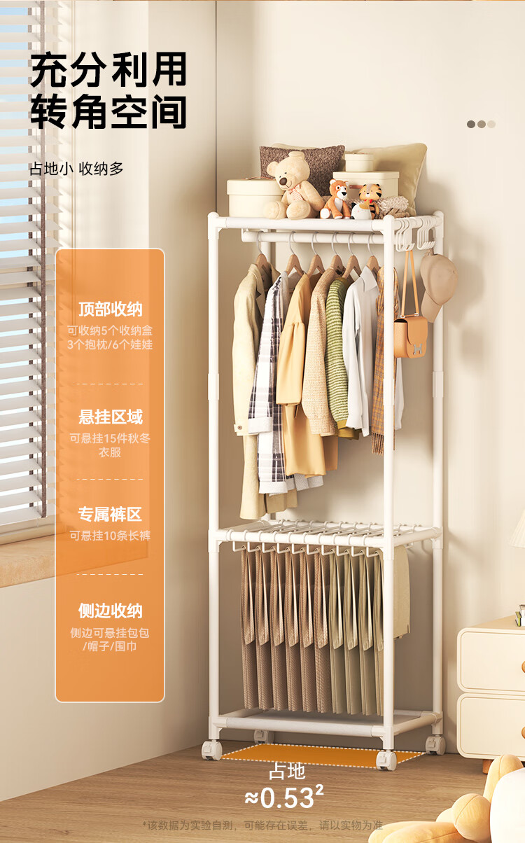 好太太(Hotata)落地晾衣架可移动室内家用多功能双层挂衣架卧室大容量收纳衣帽架 【灰色】双层挂衣架/送挂钩+送裤架