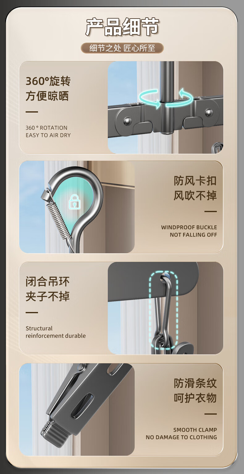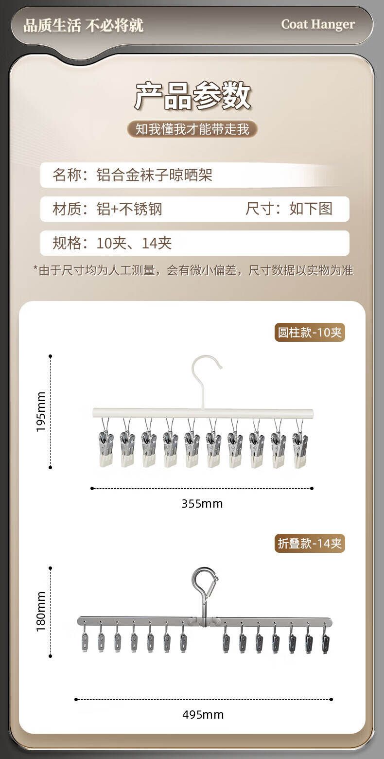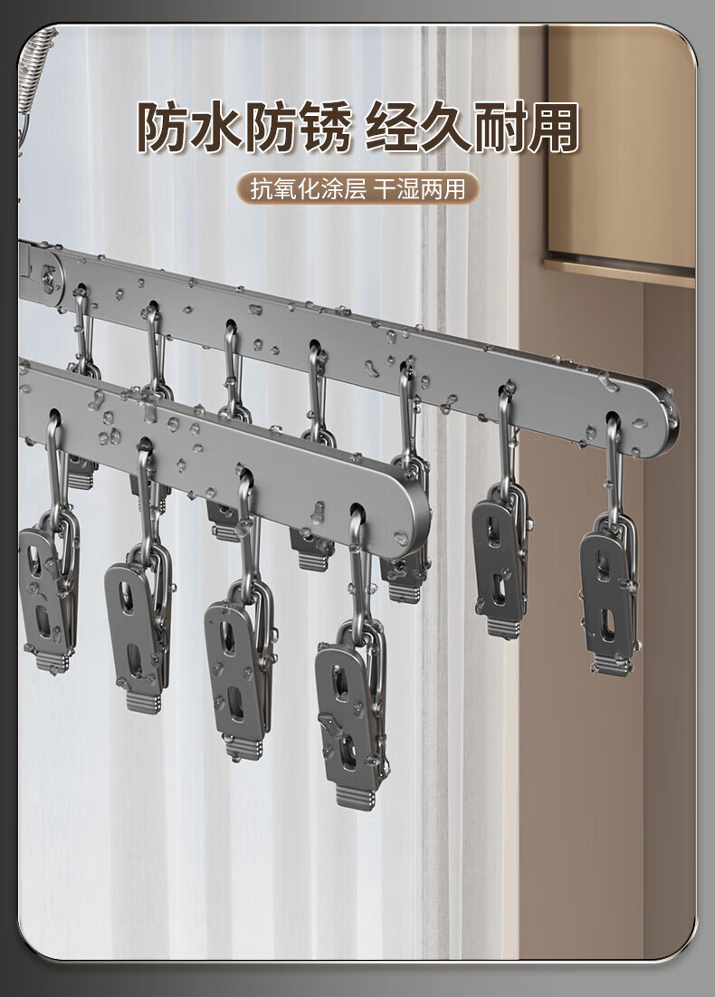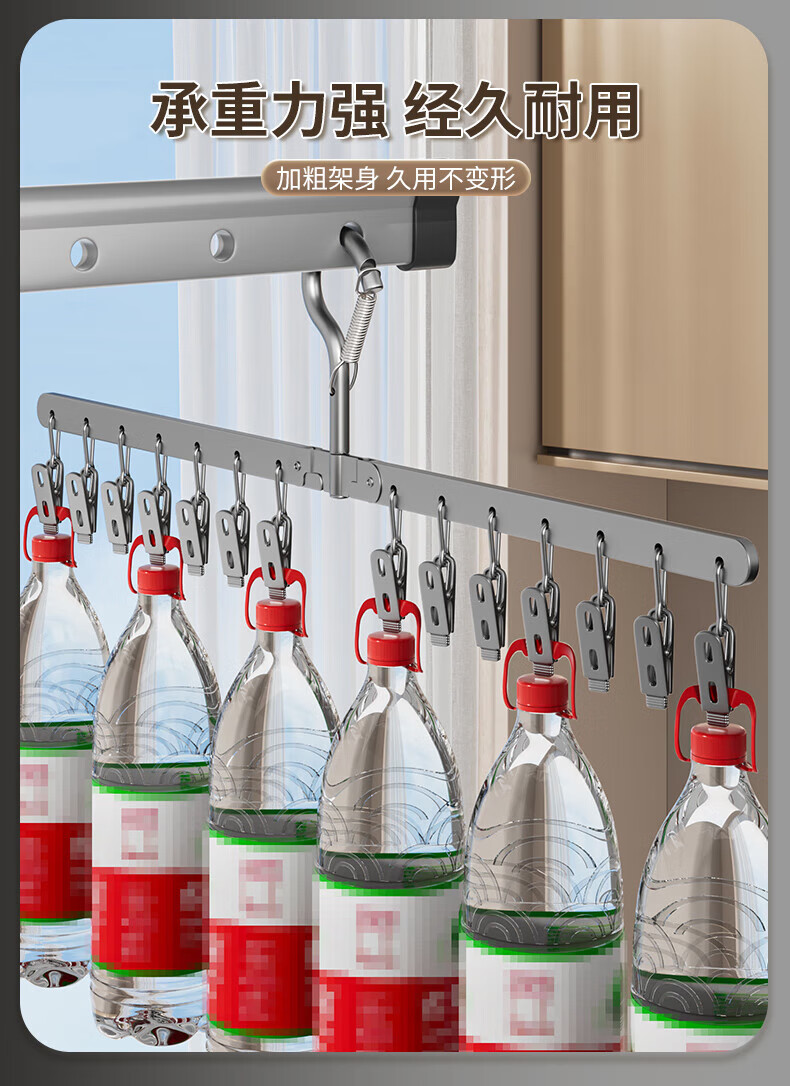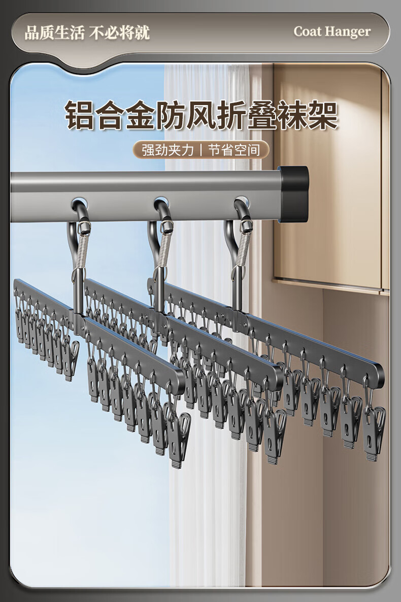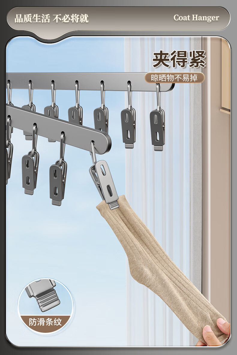 户璃德国铝合金晒袜子晾衣架多夹子神器阳台折叠多功能内衣裤晾衣架带 5斤+ABS龙头 1斤