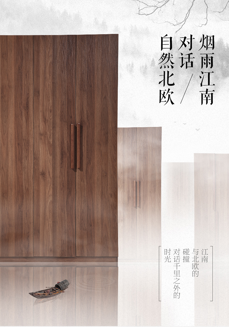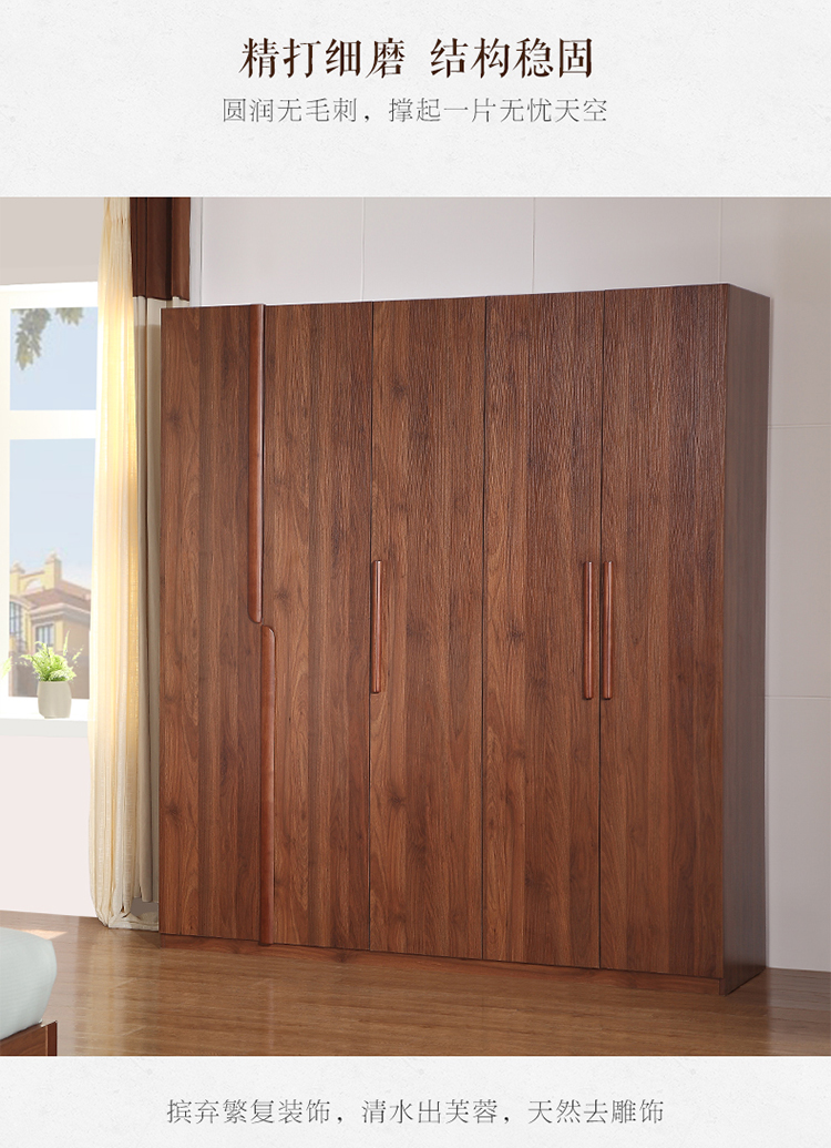 全友家居 主卧室新中式靠墙实木拉手衣柜家用衣服收纳储物柜子