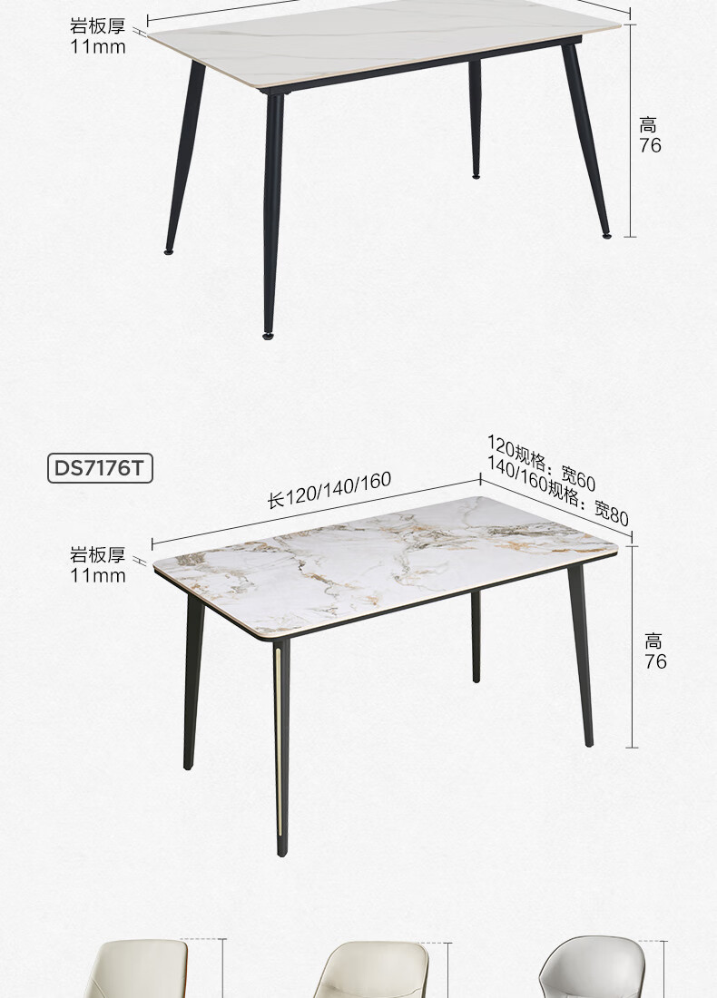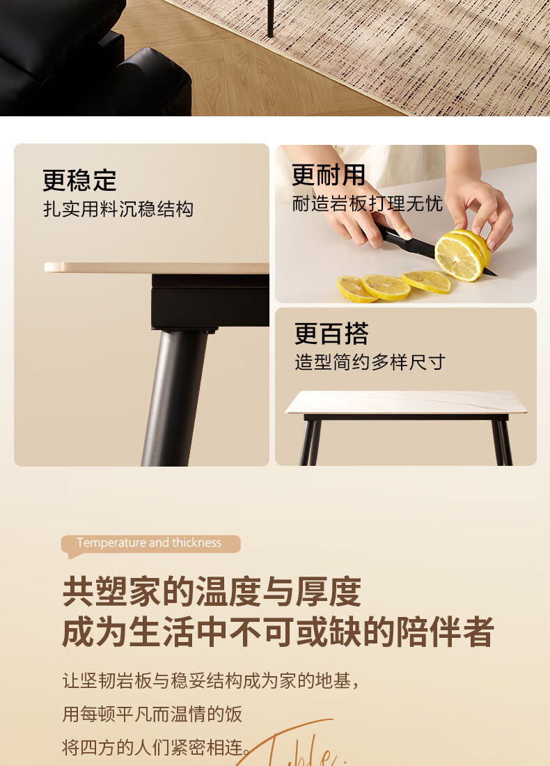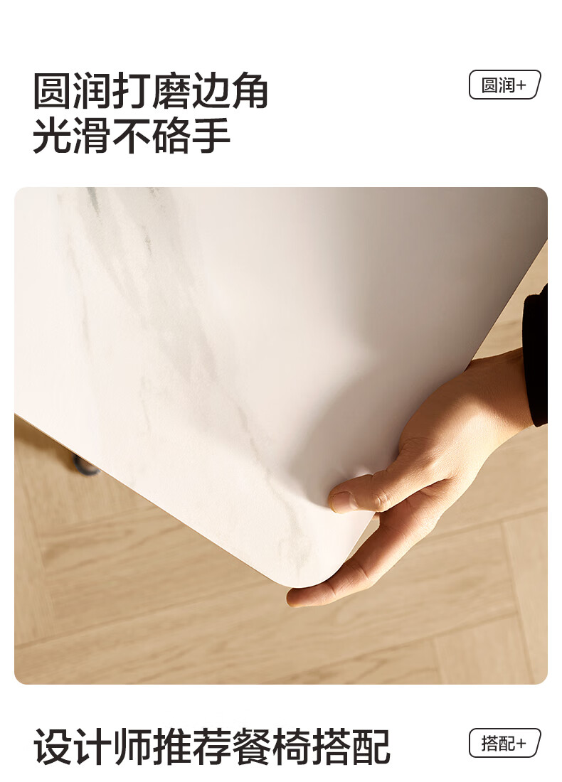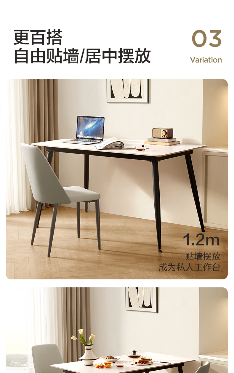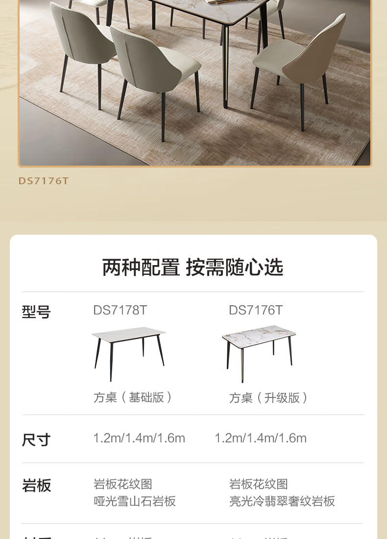 顾家家居(KUKA)现代简约岩板餐桌家用饭桌餐桌椅组合DS7178T 1.4M单桌+折耳灰椅4