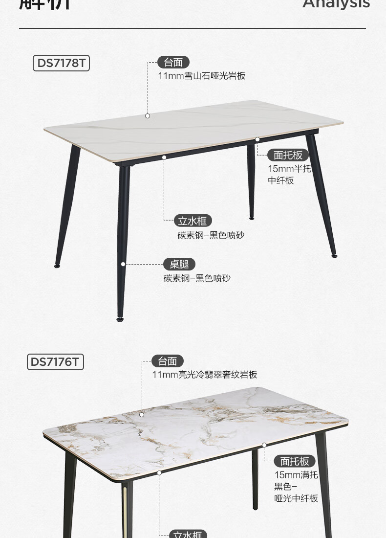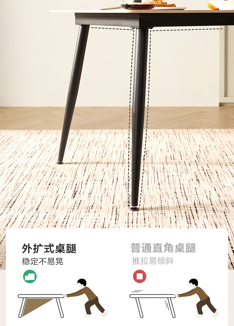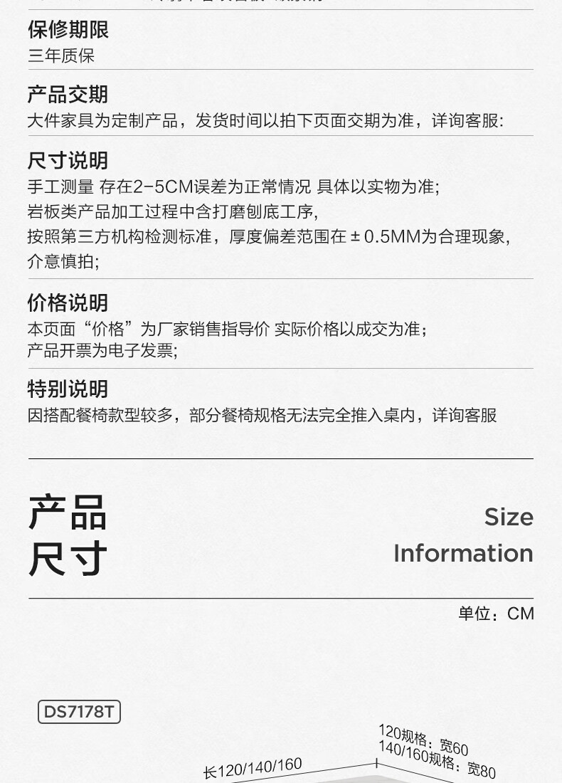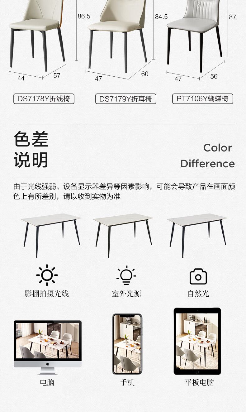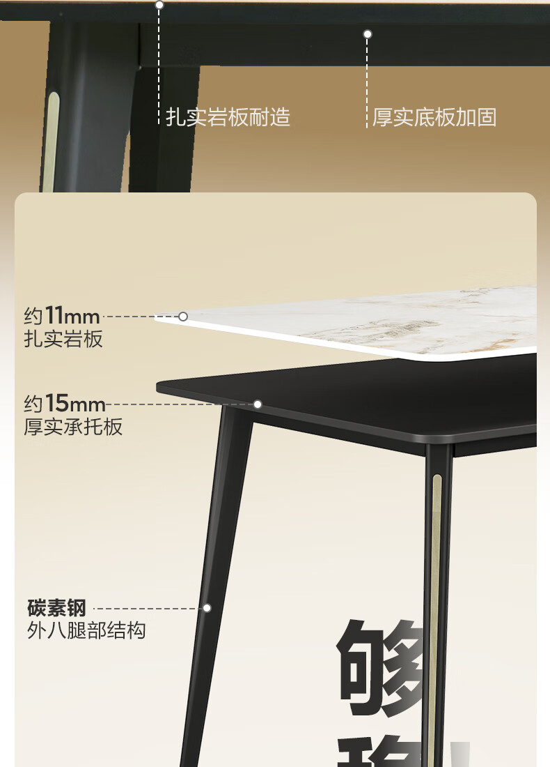 顾家家居(KUKA)现代简约岩板餐桌家用饭桌餐桌椅组合DS7178T 1.4M单桌+折耳灰椅4