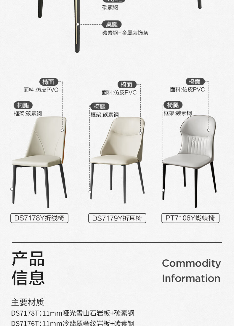 顾家家居(KUKA)意式大理石餐桌家用餐桌椅组合饭桌PT7126T 1.6M餐桌+蝴蝶椅*4