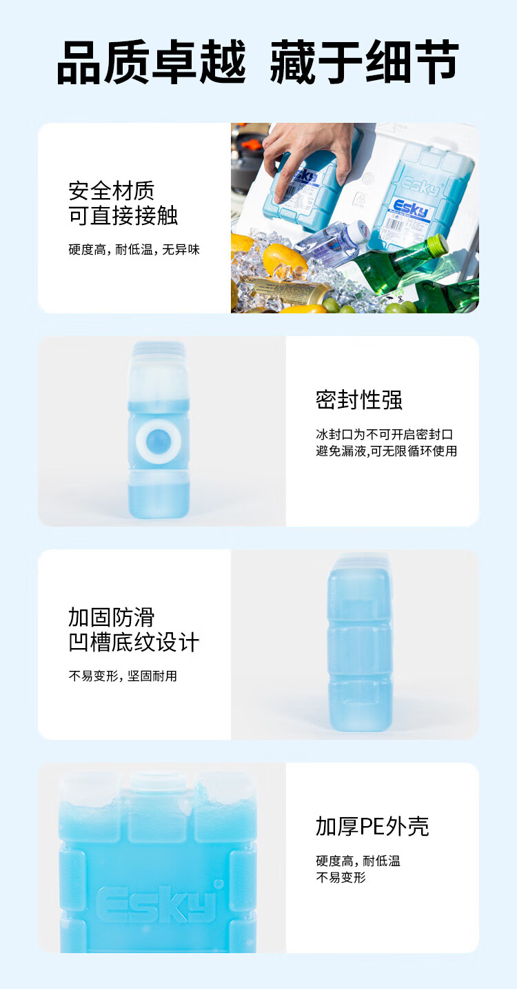 爱斯基(ESKY)冰晶盒空调扇冰板保温箱蓝冰砖摆摊冰排母乳医药冷藏重复用350ML