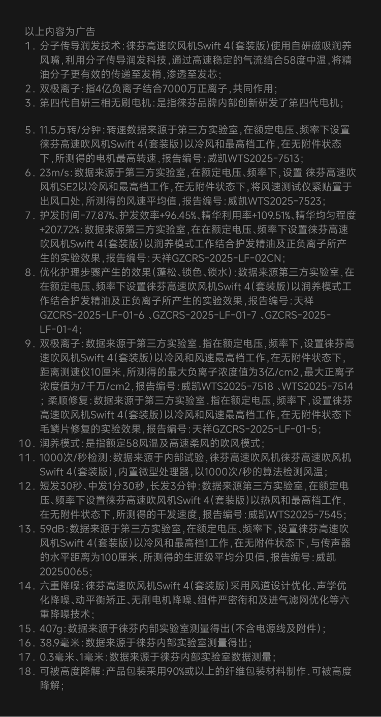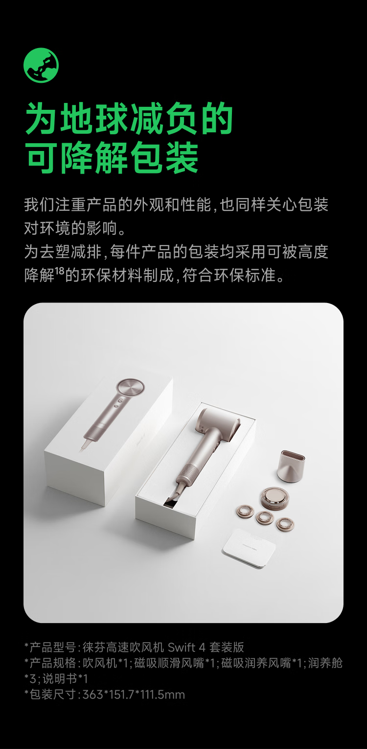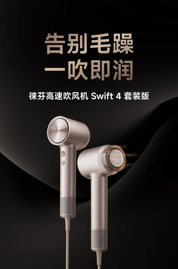 徕芬Laifen高速润发吹风机Swift 4套装版 负离子护发速干家用电吹风 送女友生日礼物 国家补贴 Swift 4 星光色 套装版
