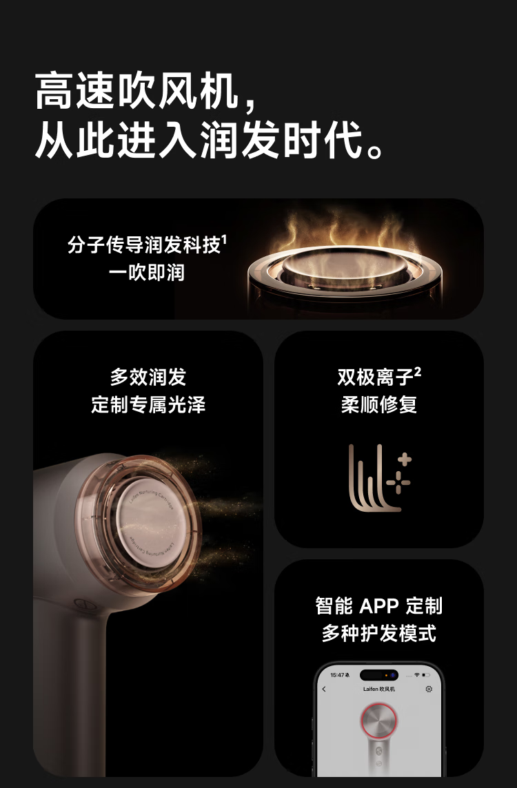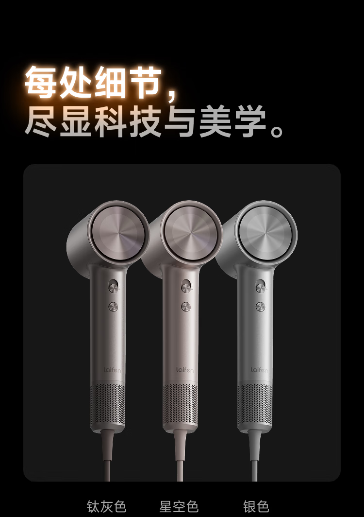 徕芬升【国家3C认证丨50亿负离子护发】高速无叶吹风机家用静音负离子大功率不伤发大风力华强北电吹风筒 星空灰-单风嘴【50亿水润负离子】丨恒温护发速干 2025年新款丨顶配版礼盒装丨10年质保只换不修