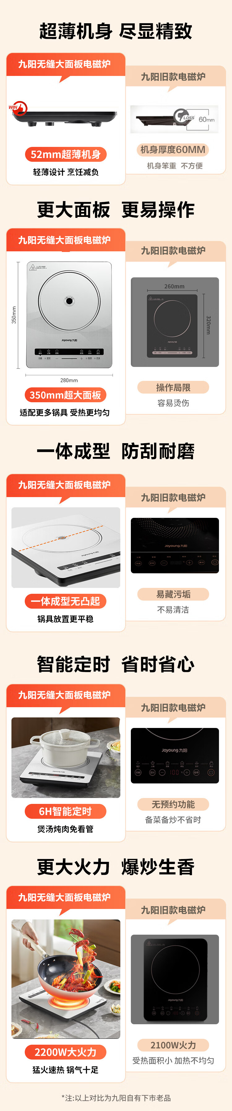 九阳(Joyoung)电磁炉2200W大功率家用电磁灶火锅炉一体微晶面板一键爆炒炒菜智能定时C22S-N520