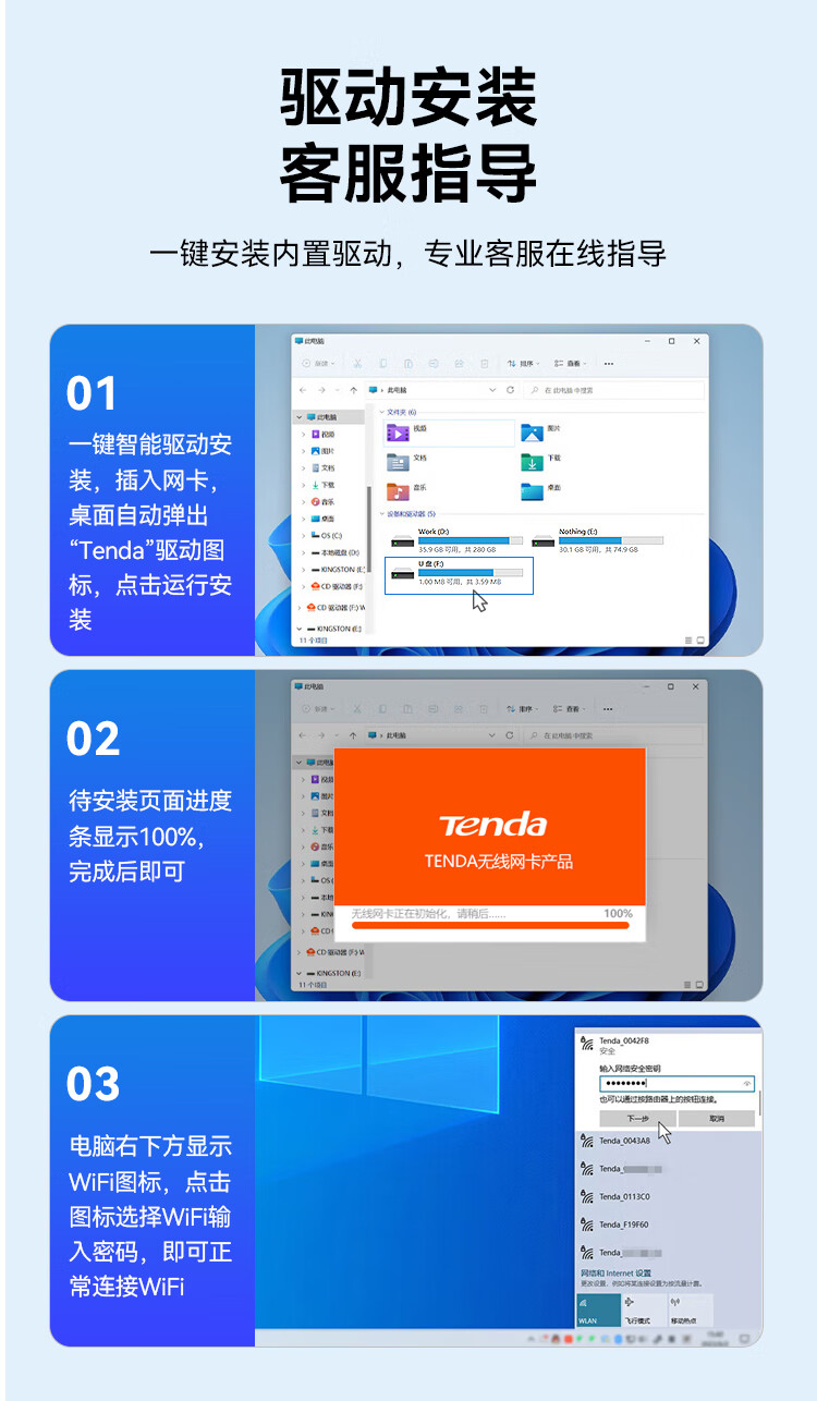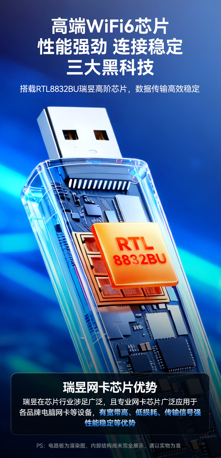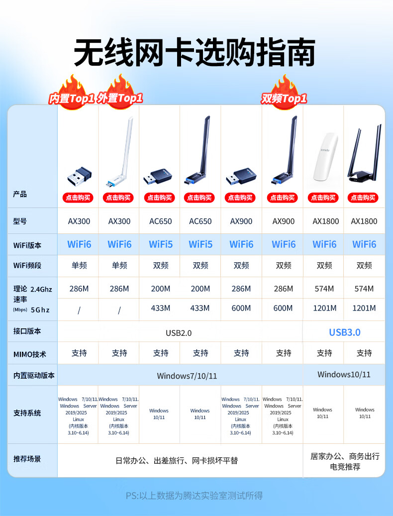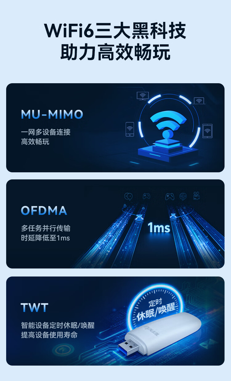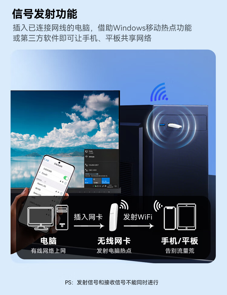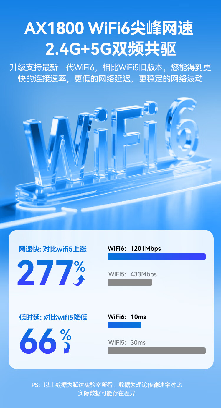 Tenda腾达USB无线网卡WiFi6 智能免驱AX1800 双频5G网卡 台式机专用WiFi接收器 无线WiFi发射器 USB3.0