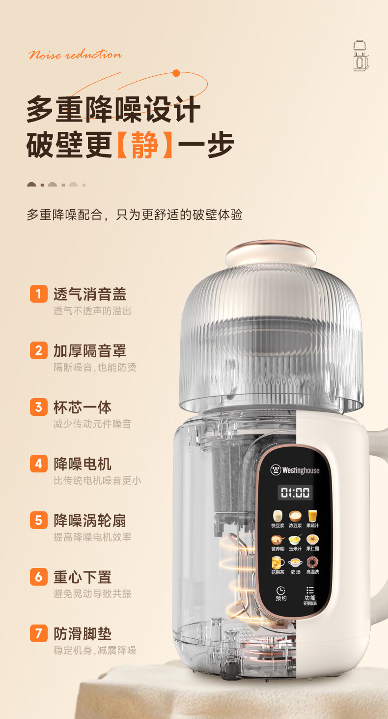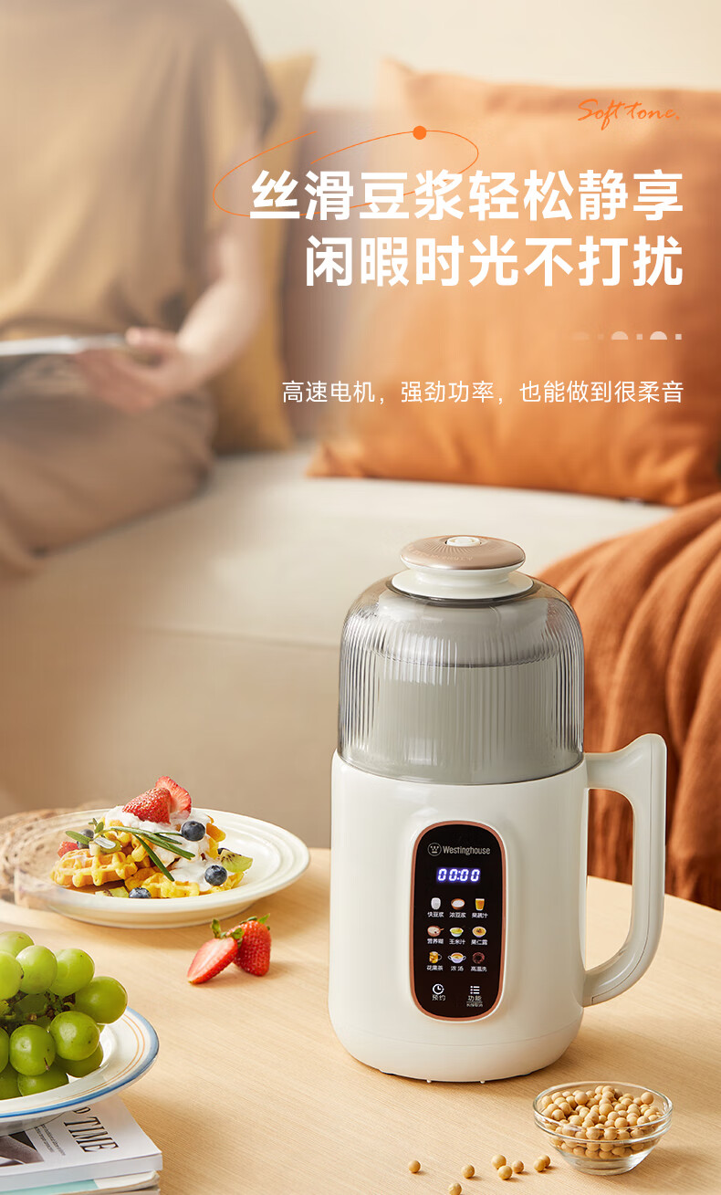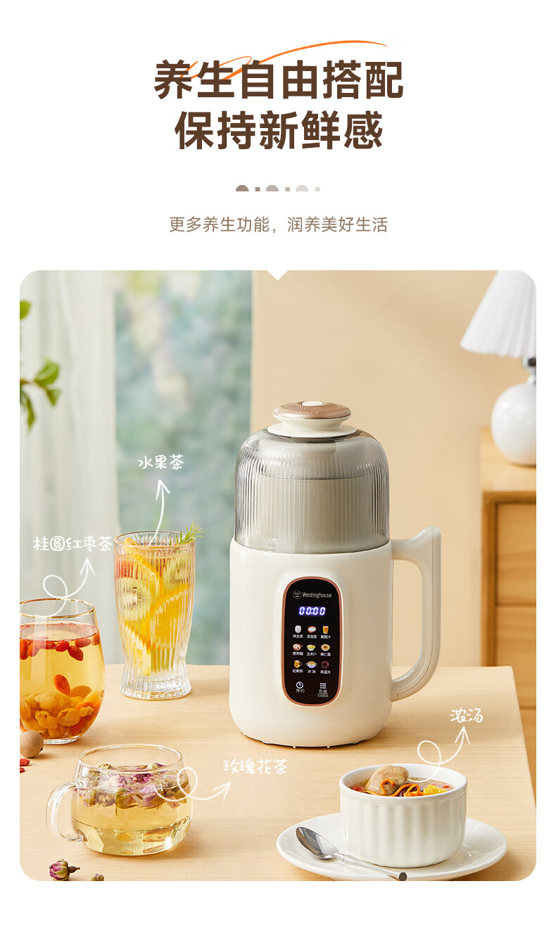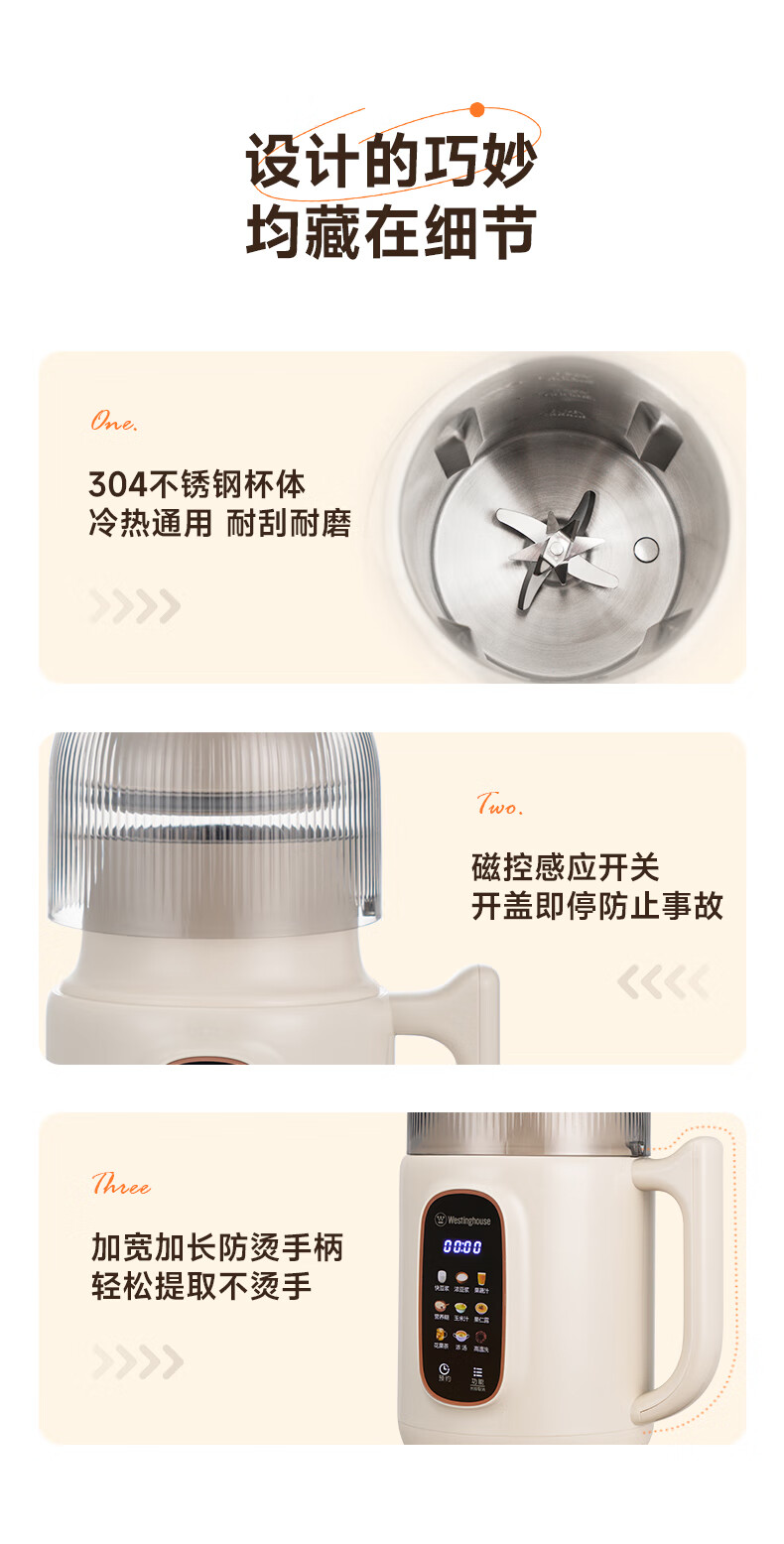 西屋(Westinghouse)不锈钢豆浆机800ml小型破壁机家用1-3人多功能料理机全自动免滤辅食机 WPB08J50