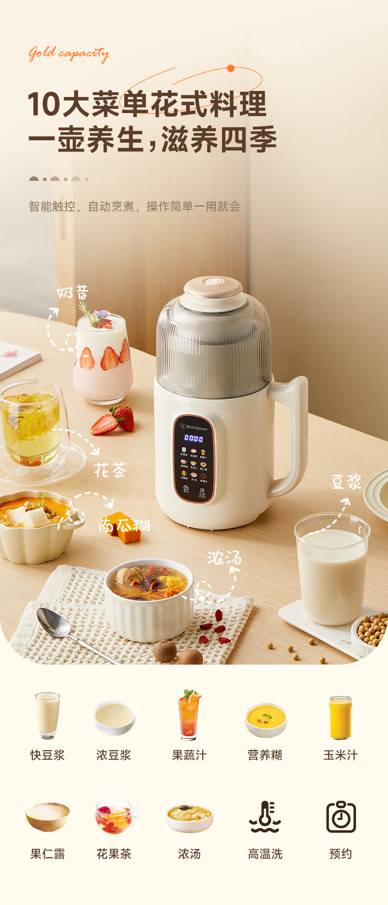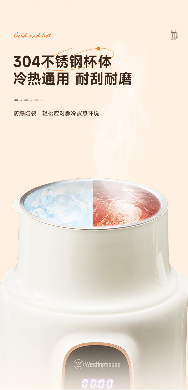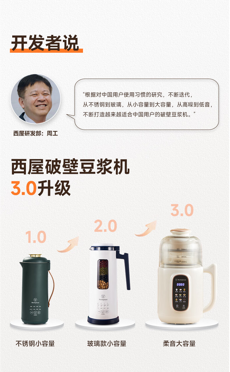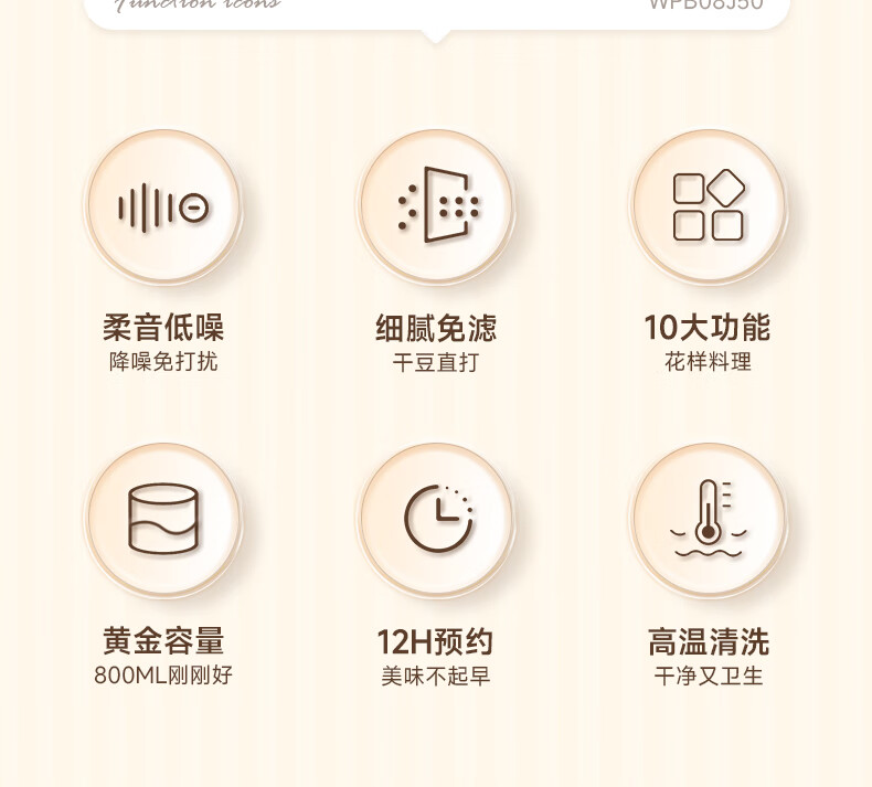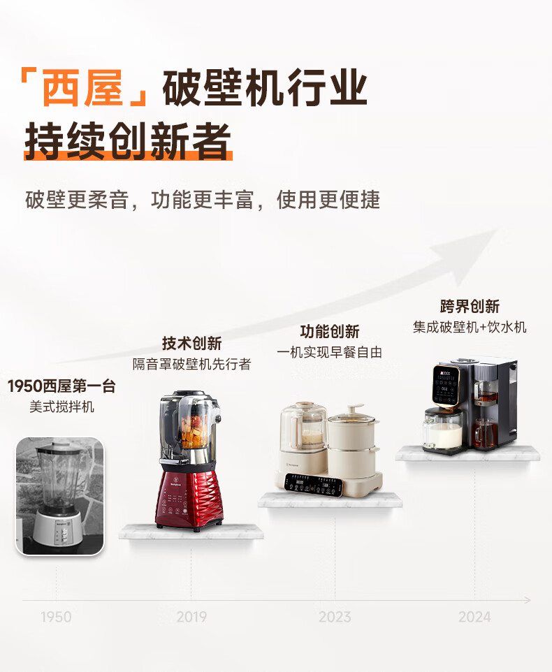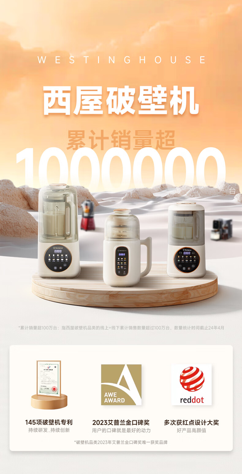 西屋(Westinghouse)不锈钢豆浆机800ml小型破壁机家用1-3人多功能料理机全自动免滤辅食机 WPB08J50