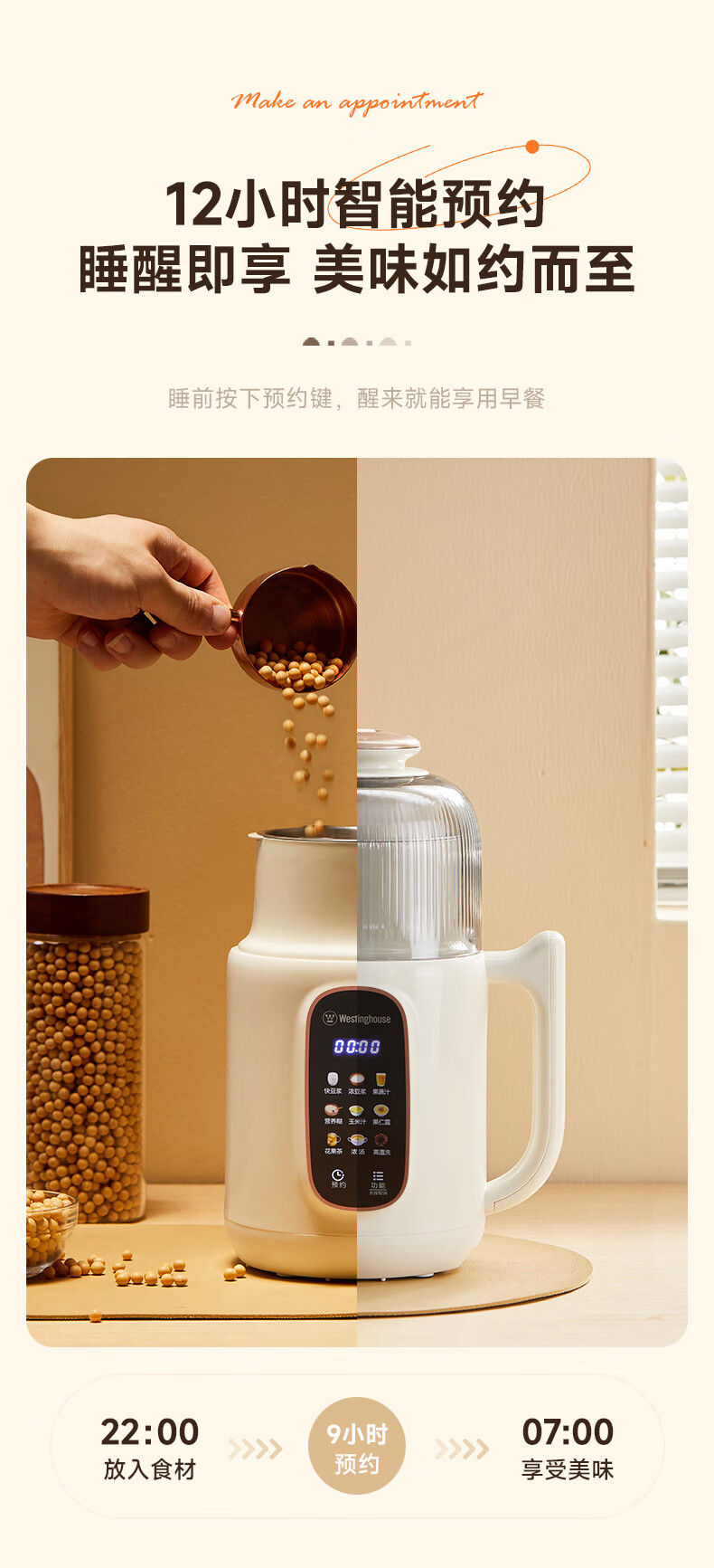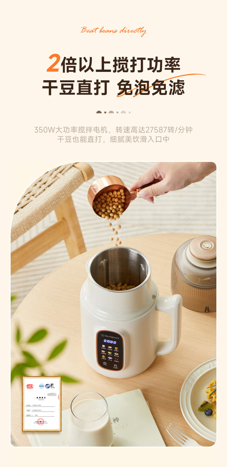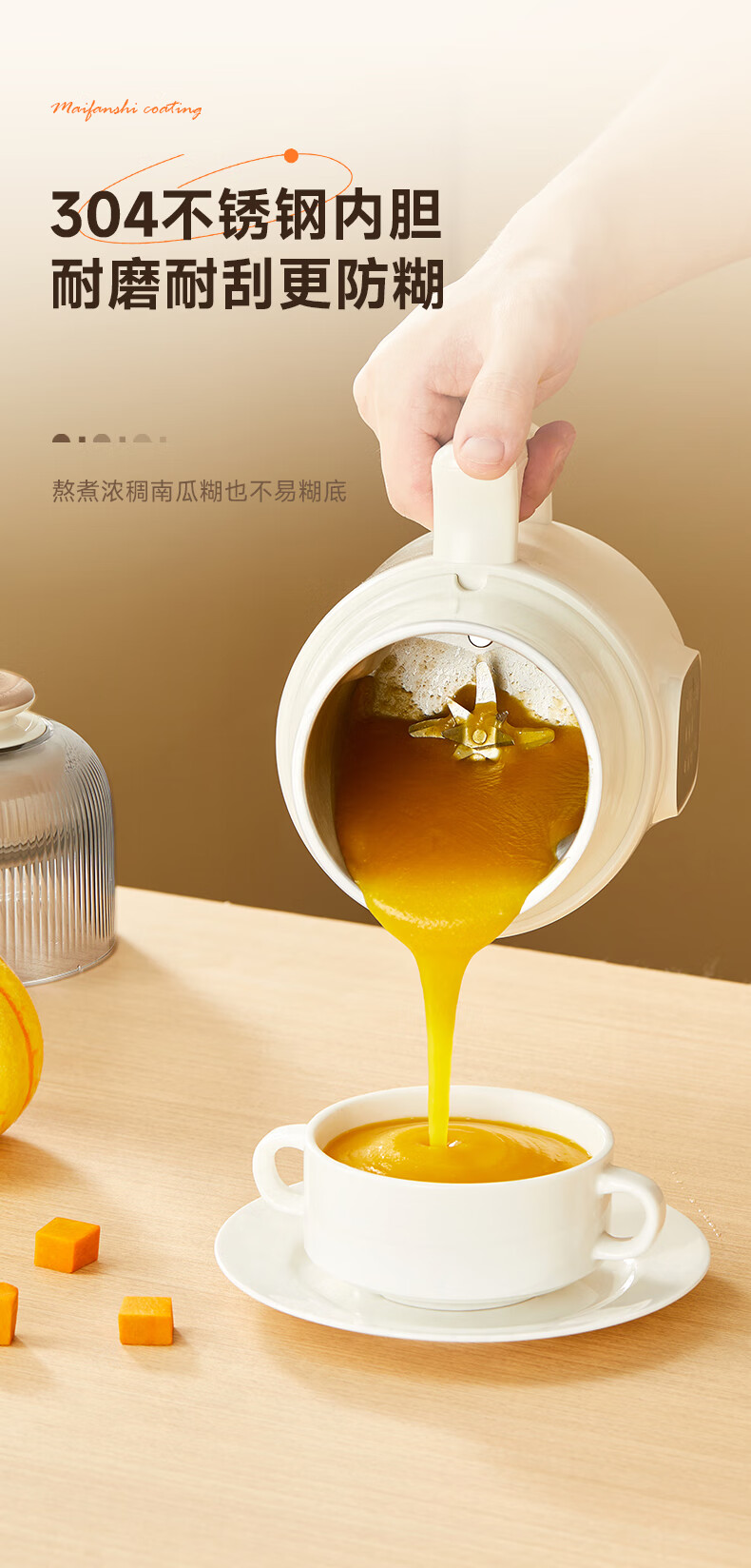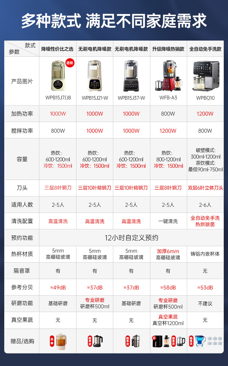 西屋(Westinghouse)不锈钢豆浆机800ml小型破壁机家用1-3人多功能料理机全自动免滤辅食机 WPB08J50