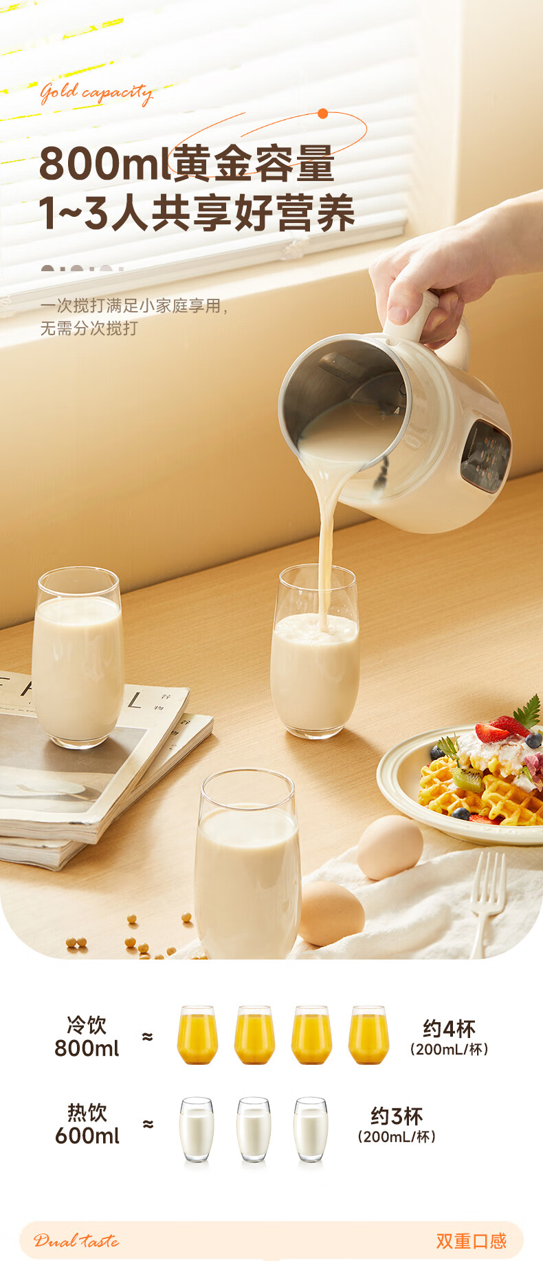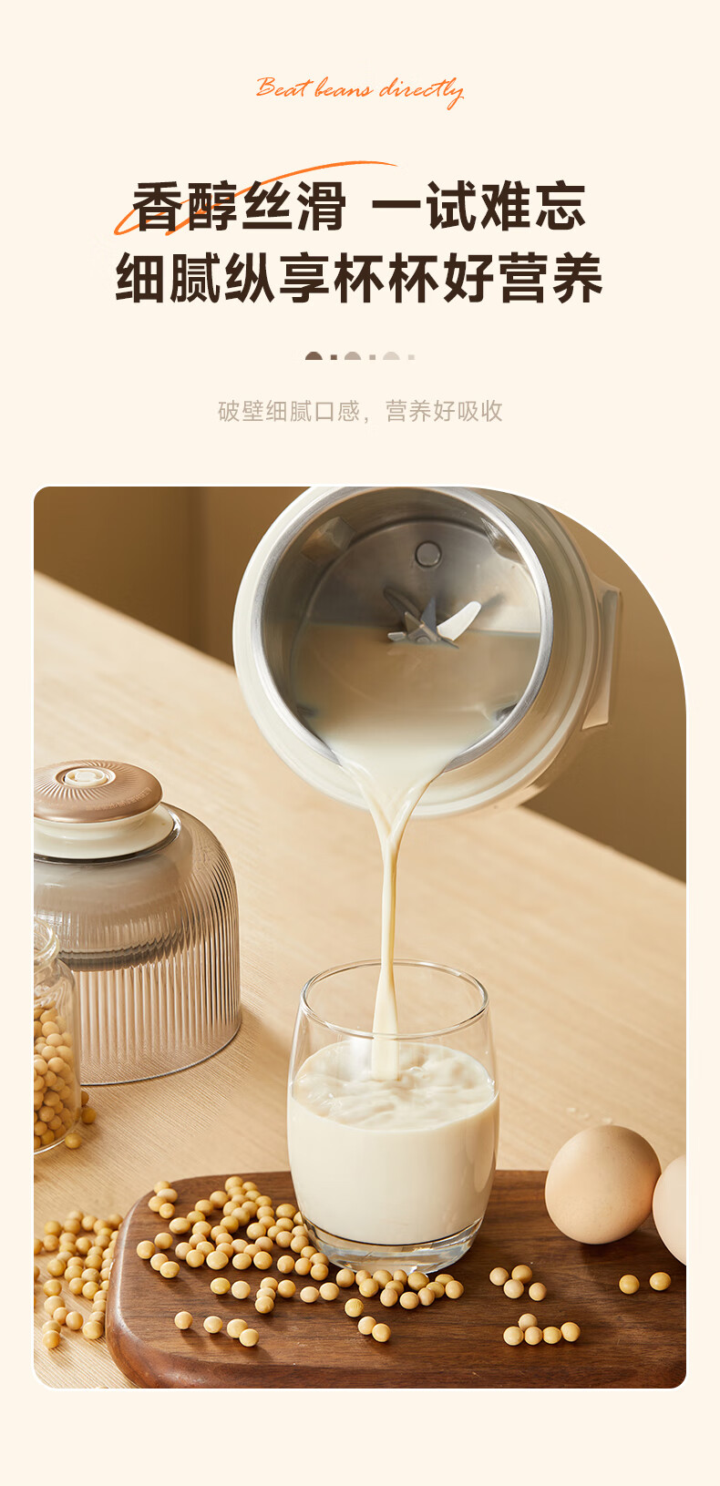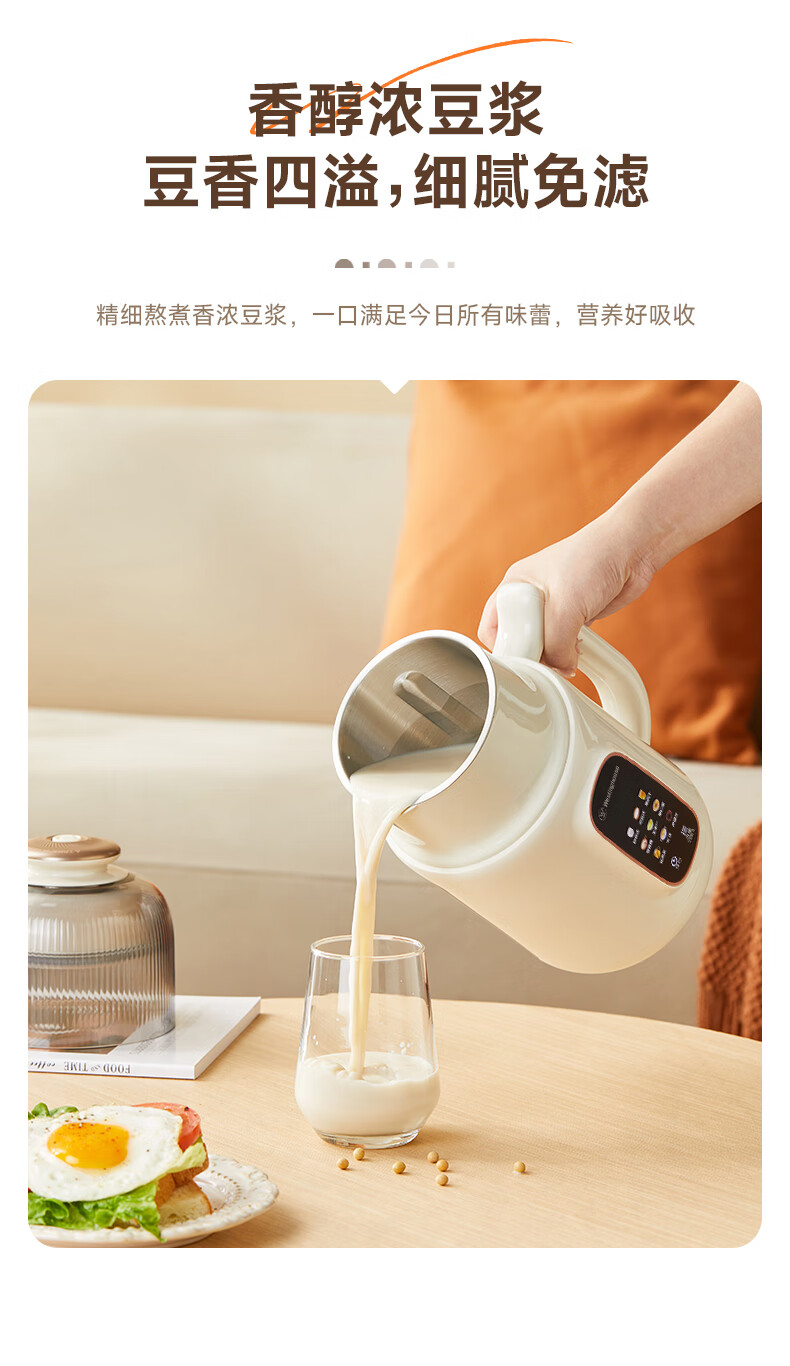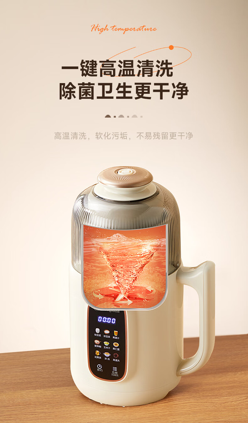小熊(Bear)白月光豆浆机破壁机家用1L快豆浆大容量3-4人用全自动免煮2025新款多功能免过滤一键清洗DJJ-H08C1