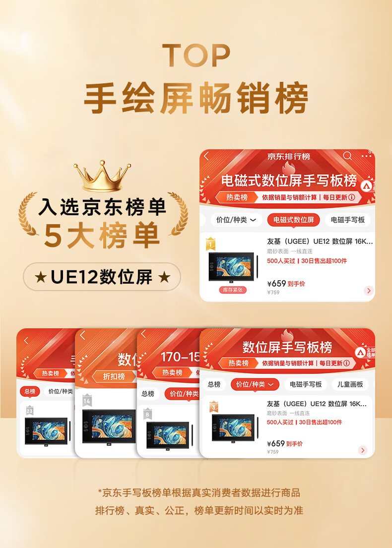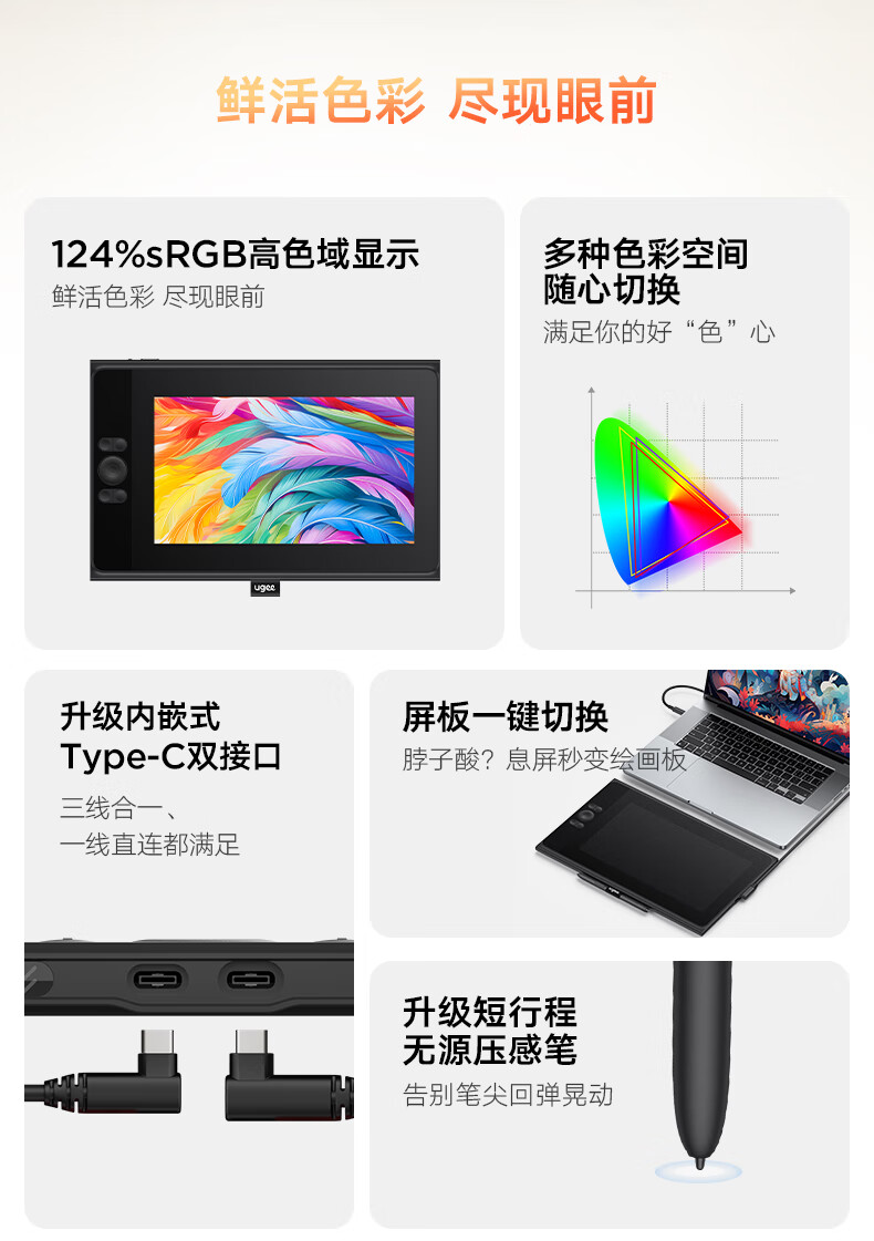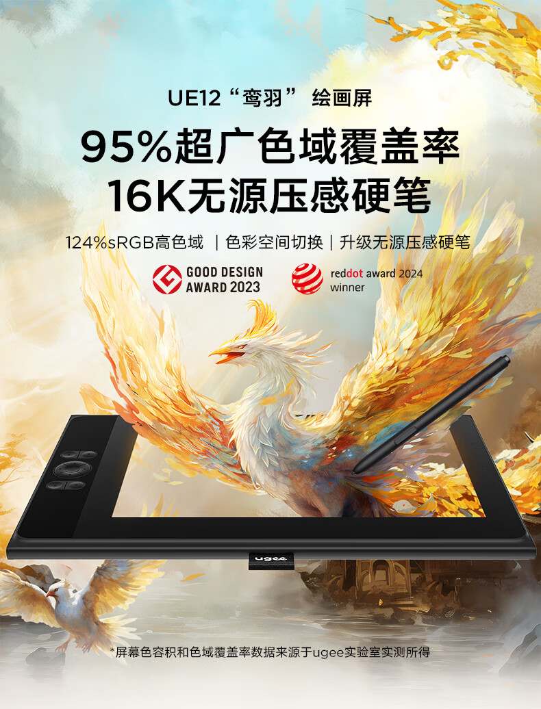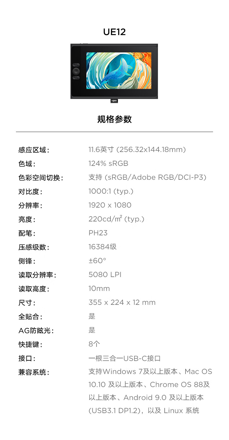 友基(UGEE)UE12 数位屏 连电脑 绘画屏手绘屏 数位板手绘板 连电脑绘画板 16K压感 【需连电脑使用】UE12标配