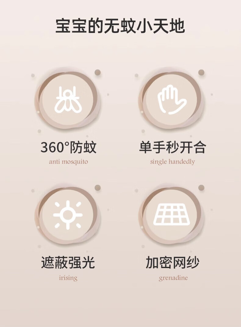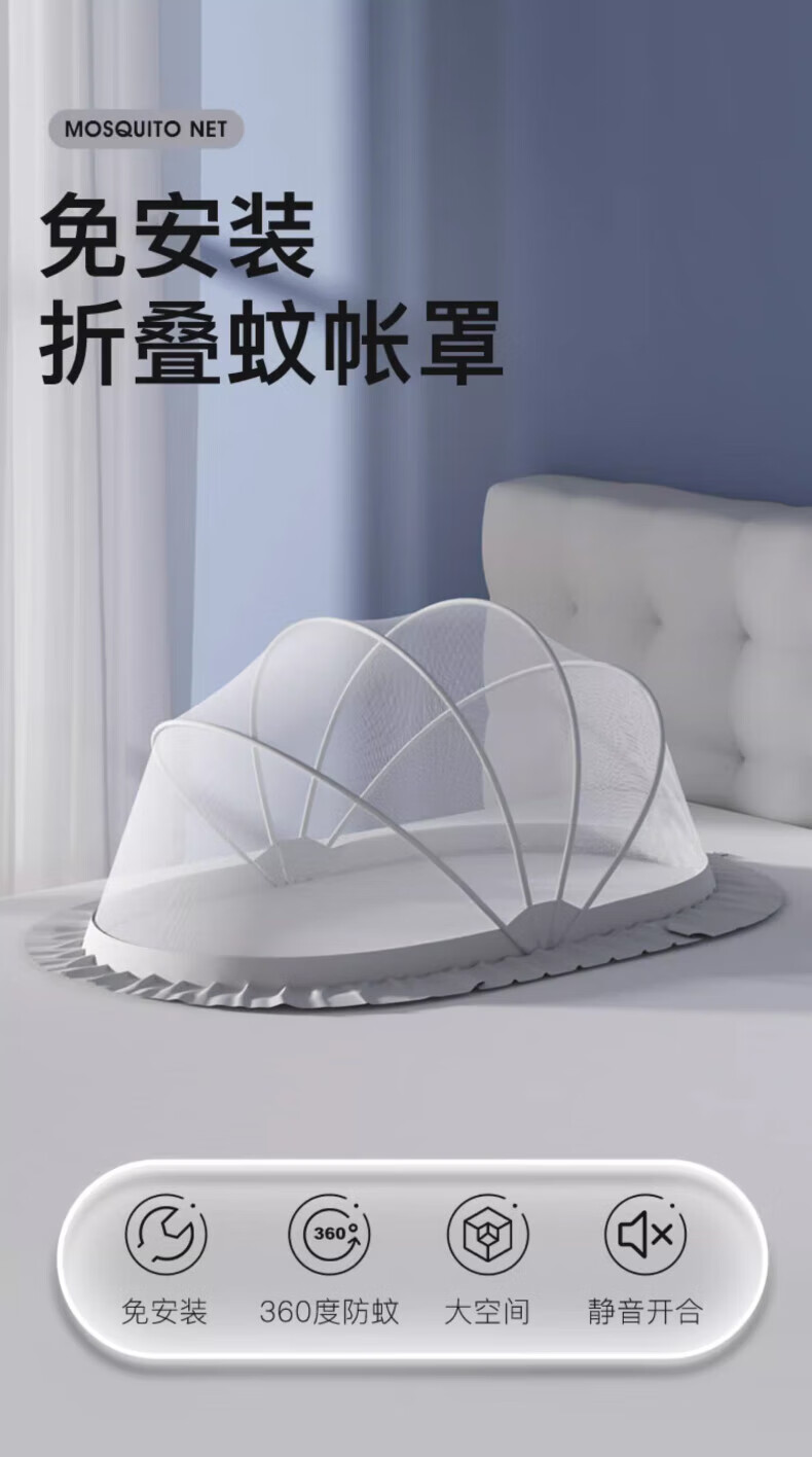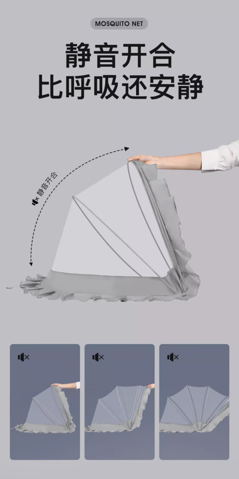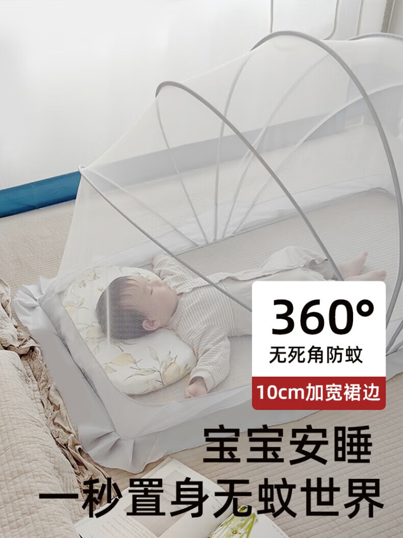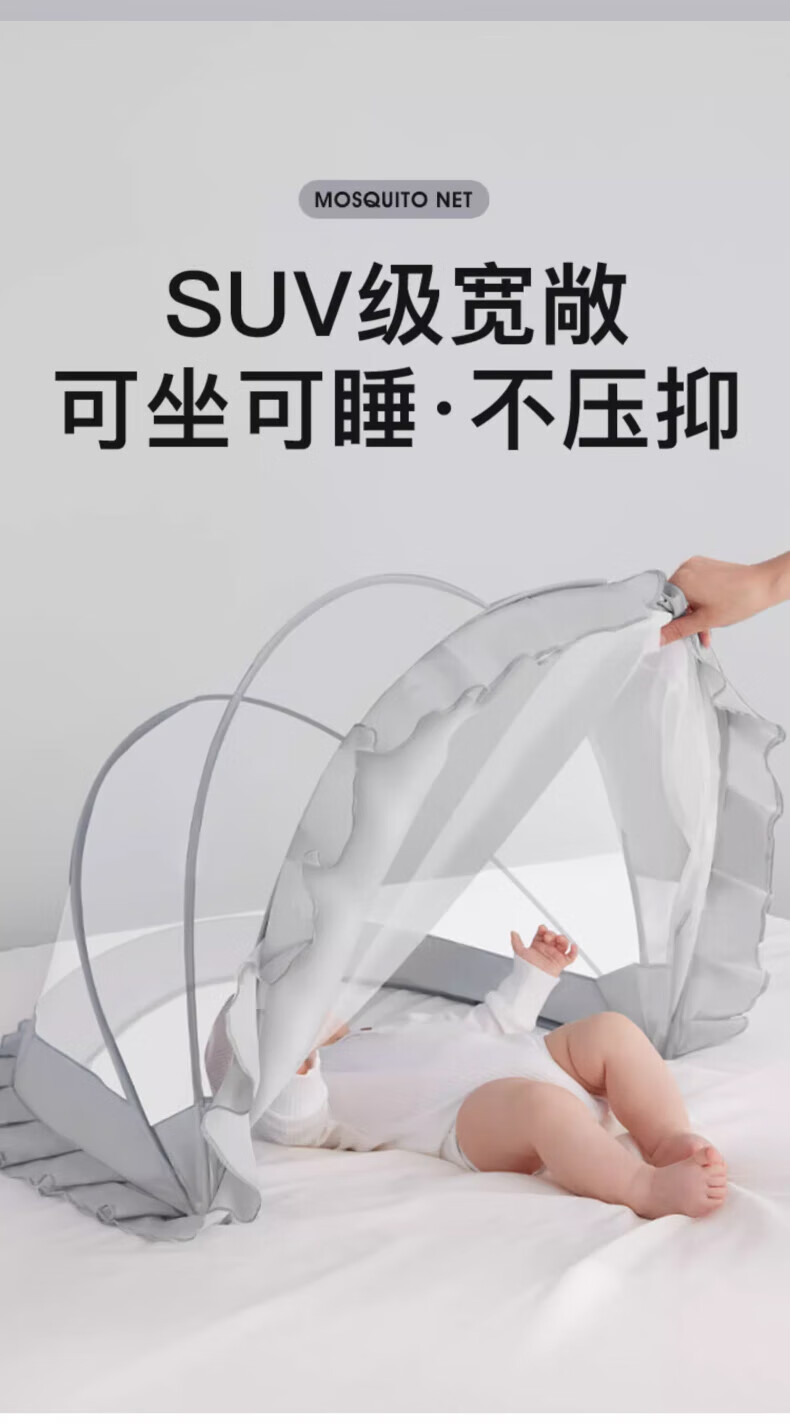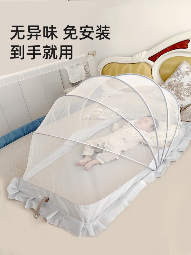 DEATKN婴儿床上蚊帐罩宝宝儿童专用宝宝防蚊罩全罩式可折叠蒙古包 纱灰色小号(建议0-1.8岁)