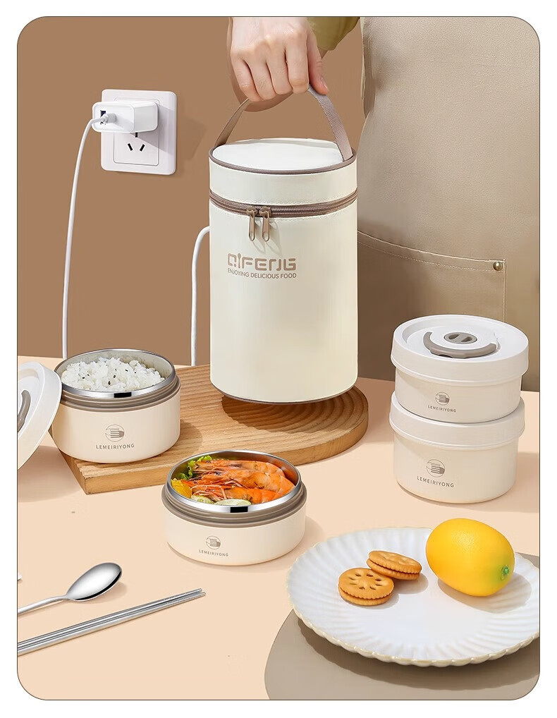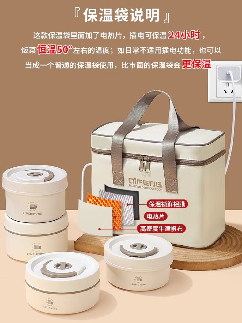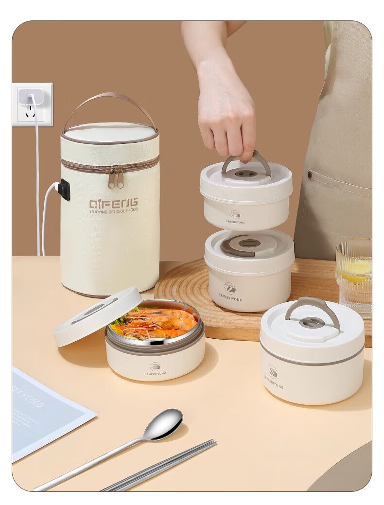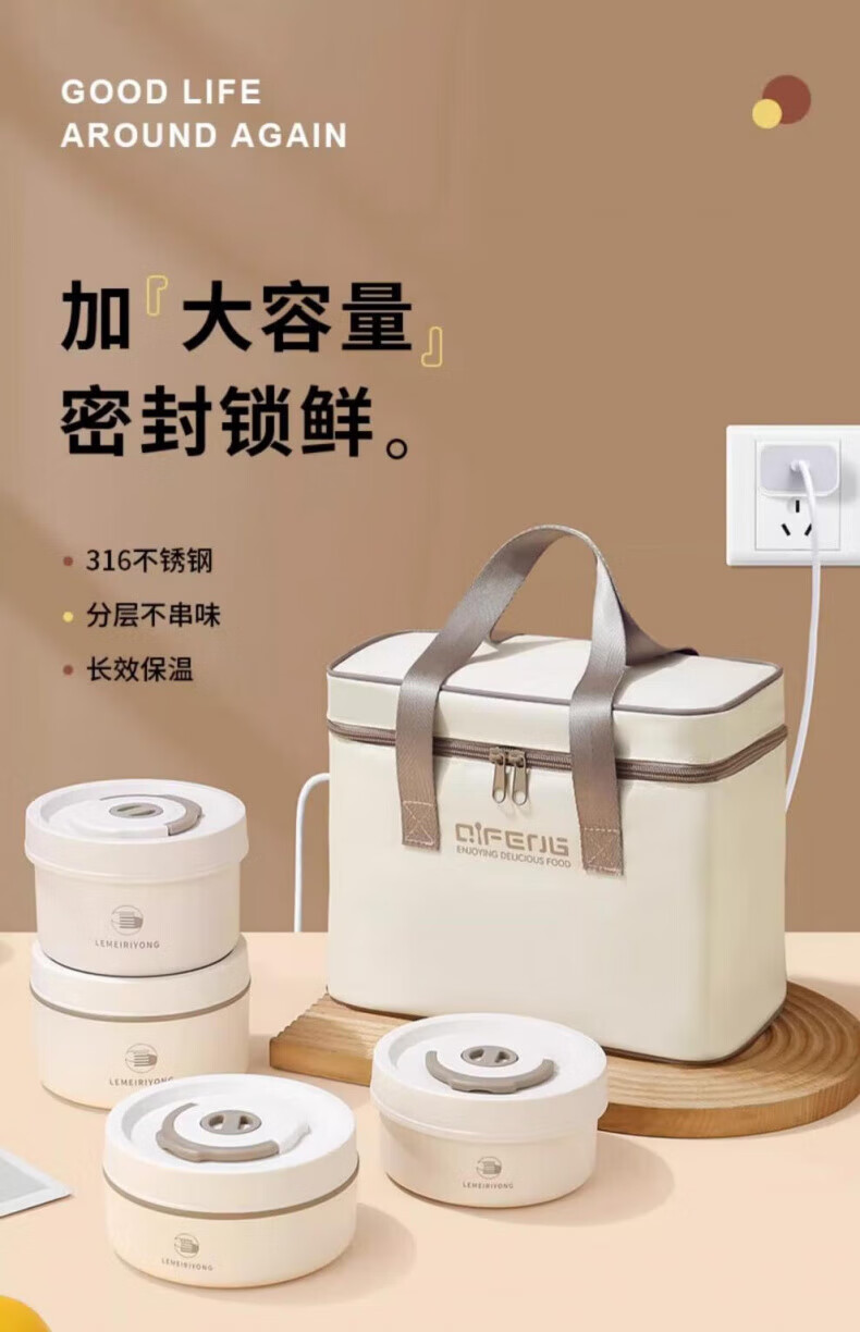 DEATKN德国高端保温插电加热饭盒桶可微波加热恒温24小时便当神器 2.1L 316-微波款大2小2送恒温保温