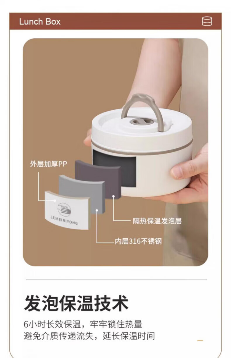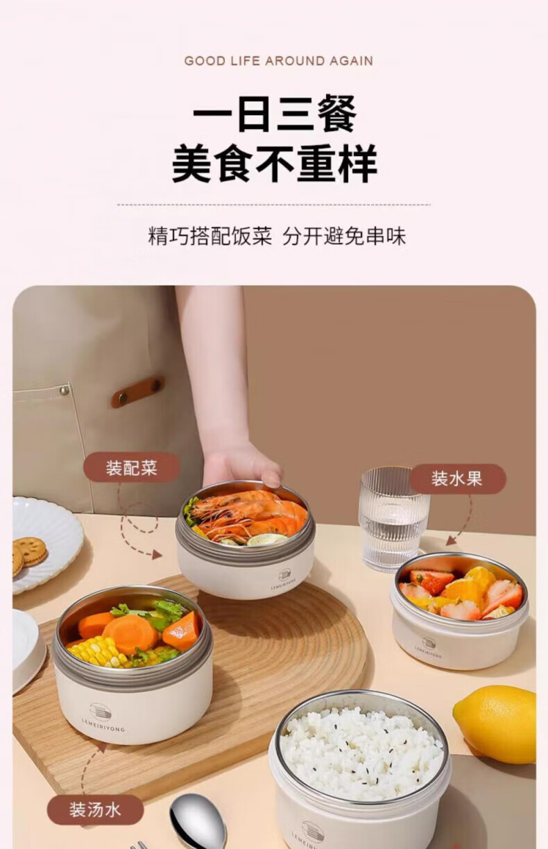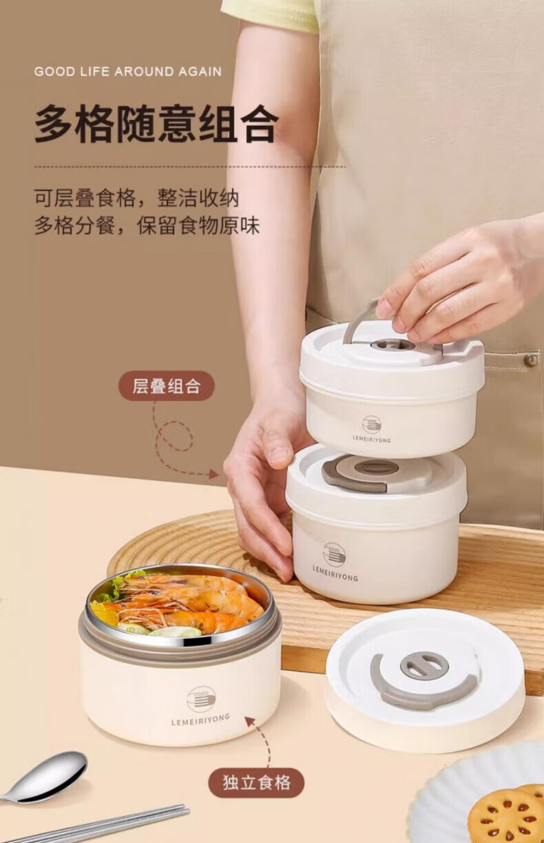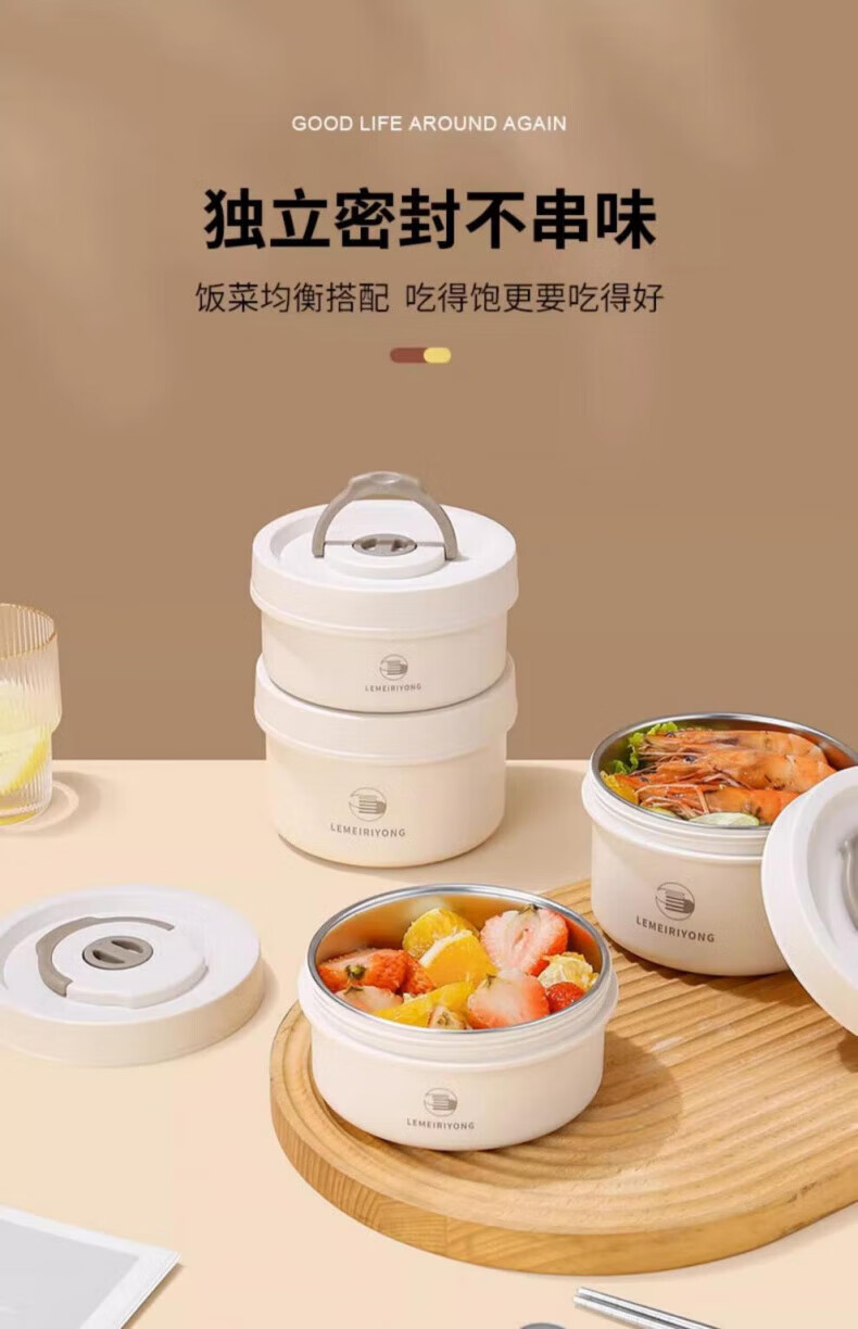 DEATKN德国高端保温插电加热饭盒桶可微波加热恒温24小时便当神器 2.1L 316-微波款大2小2送恒温保温