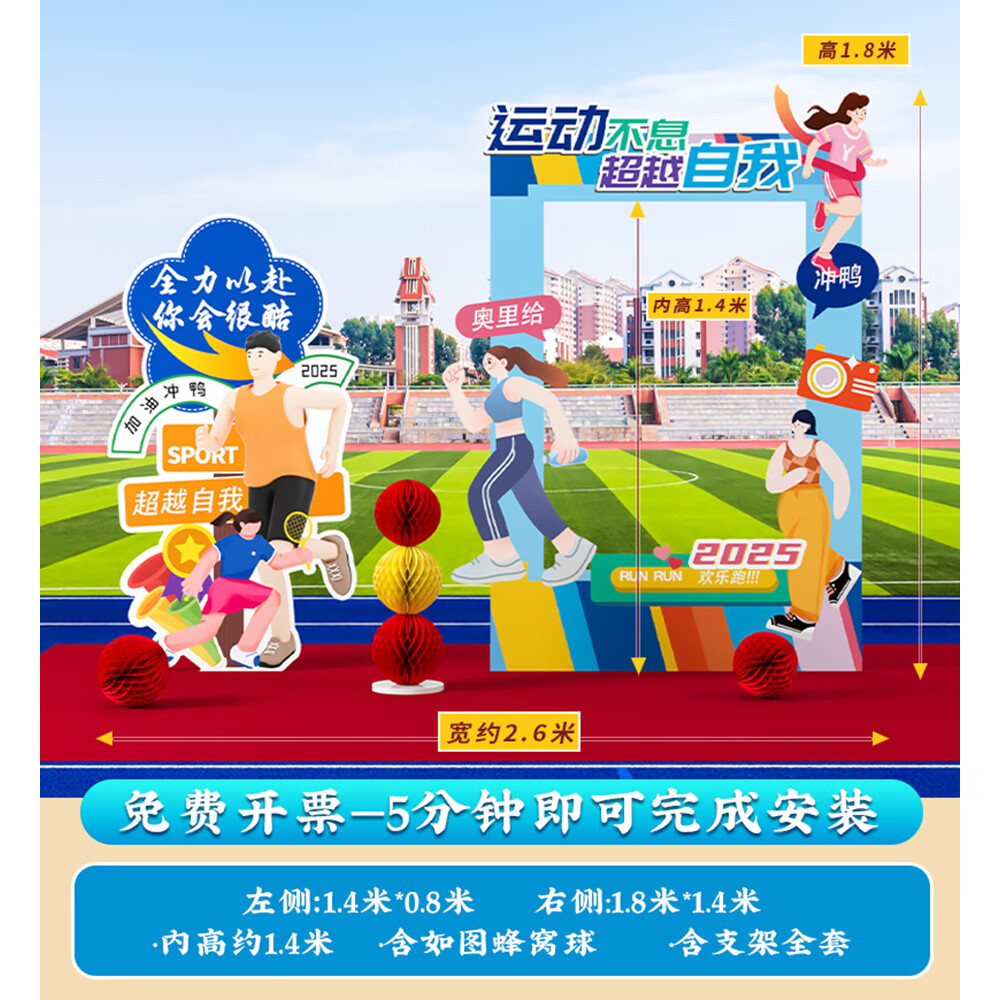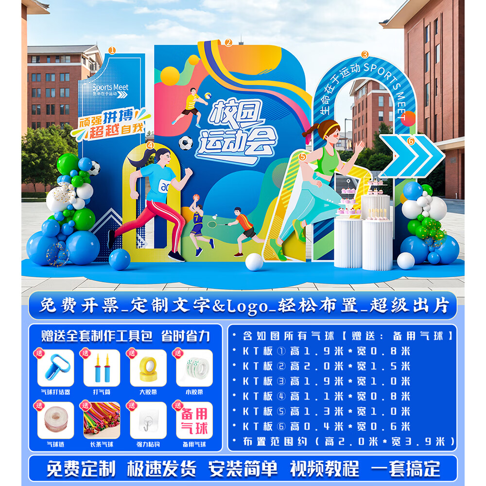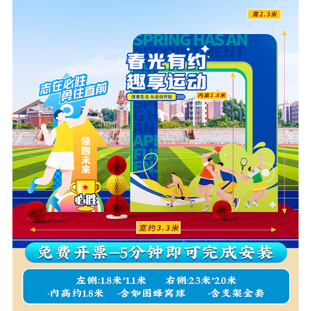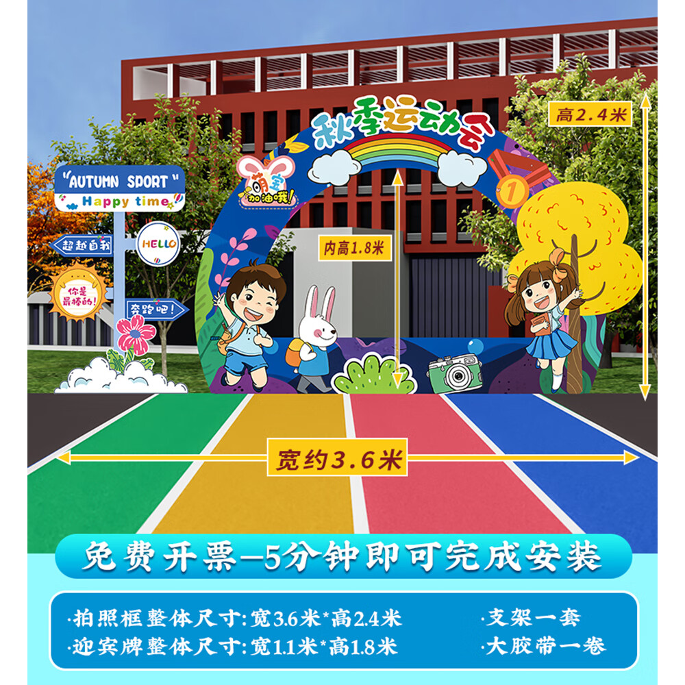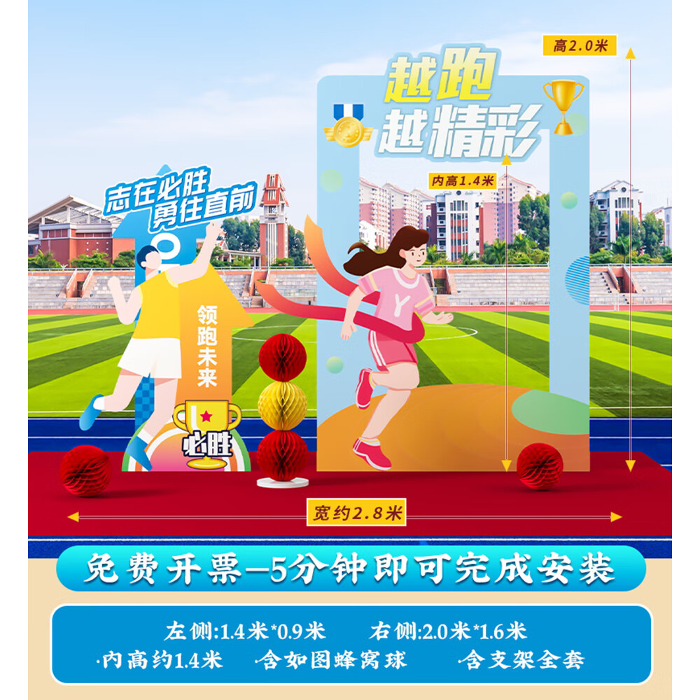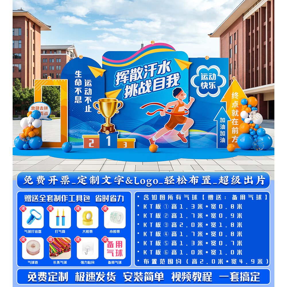 玺飞校园秋季运动会场景布置装饰初高中健身氛围活动气球背景墙kt板 当日发/62款秋季运动会背景墙【高2*宽3.9】 【下单立发-无色差】