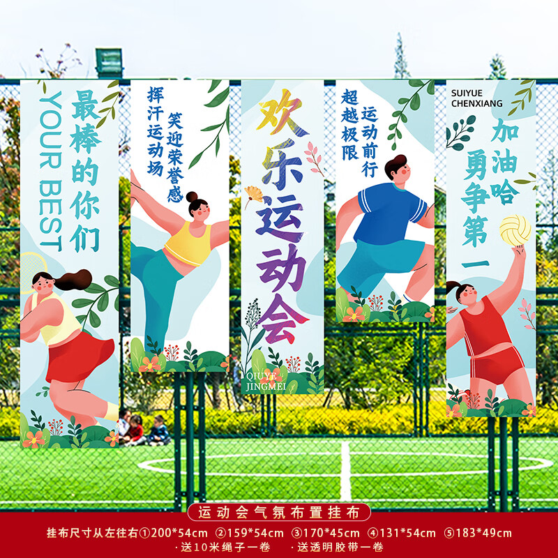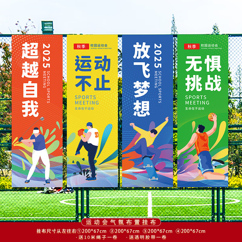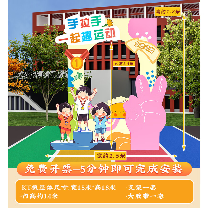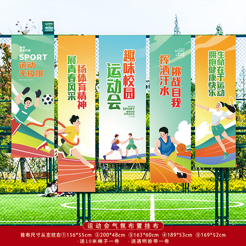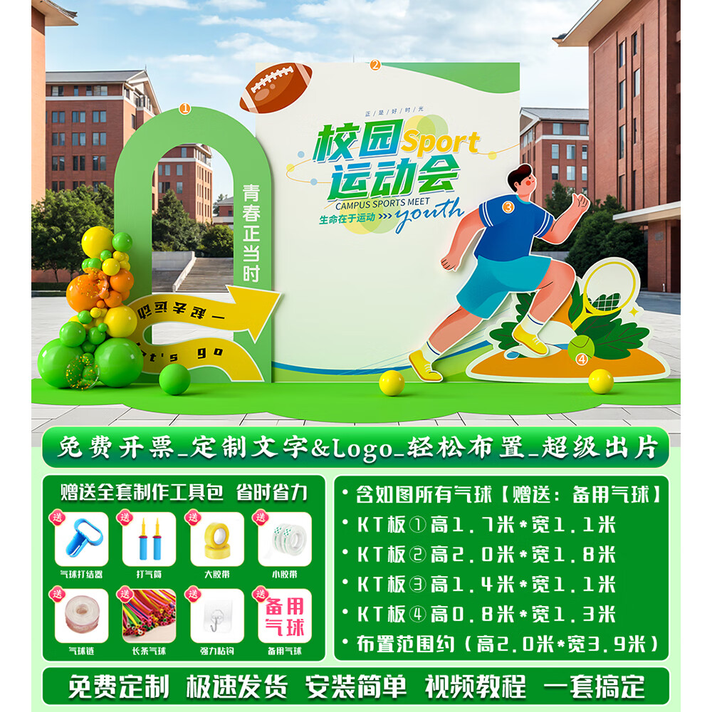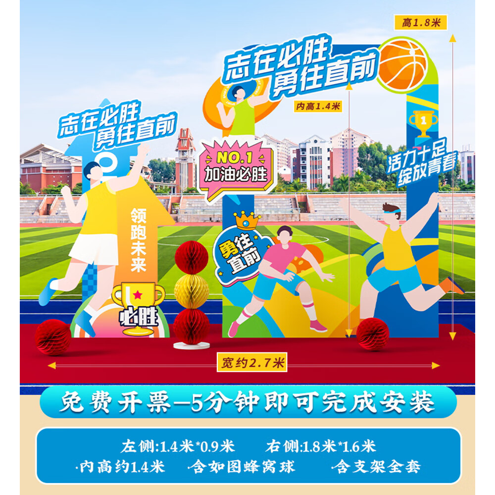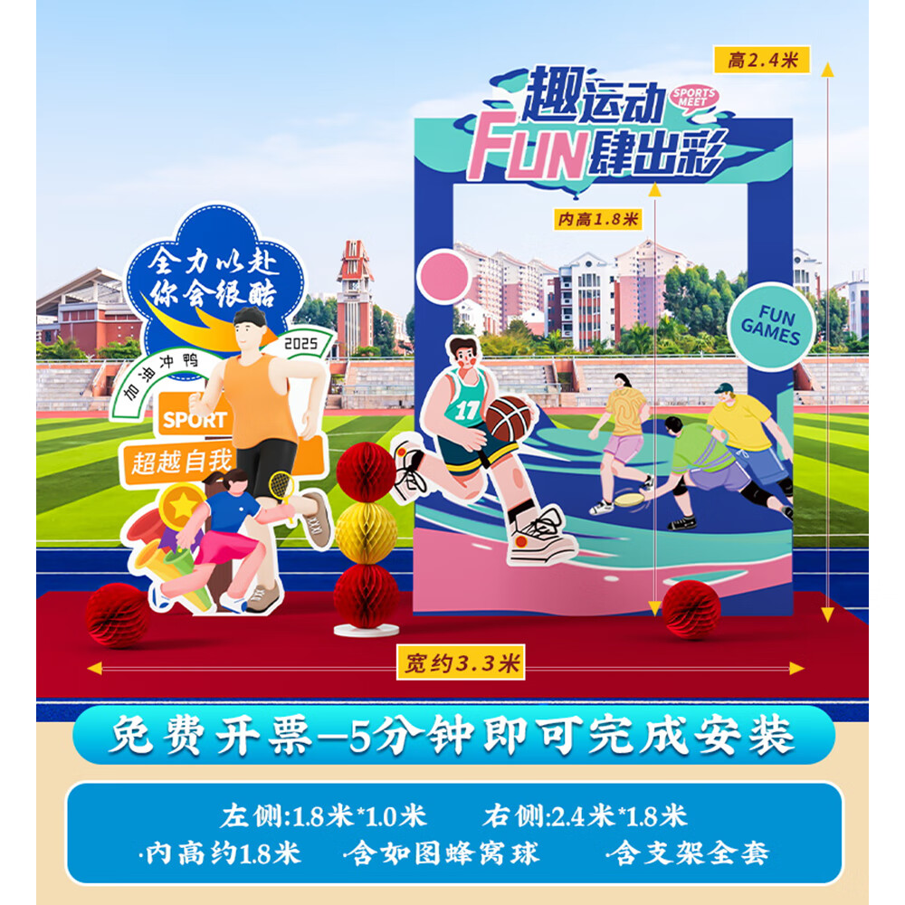 玺飞校园秋季运动会场景布置装饰初高中健身氛围活动气球背景墙kt板 当日发/62款秋季运动会背景墙【高2*宽3.9】 【下单立发-无色差】