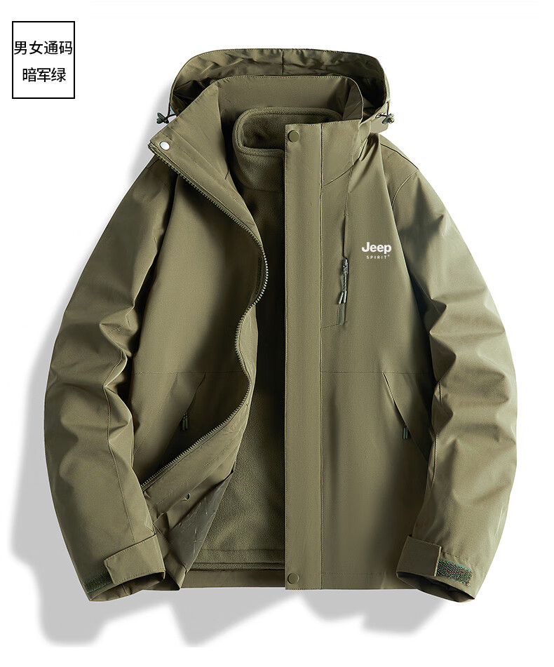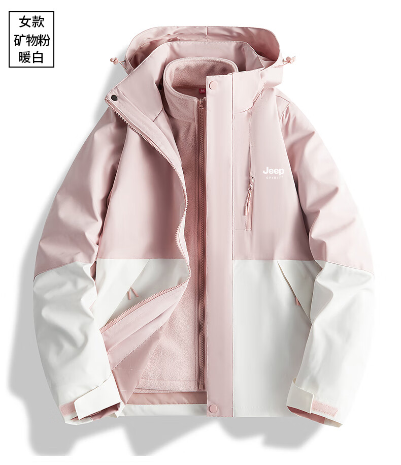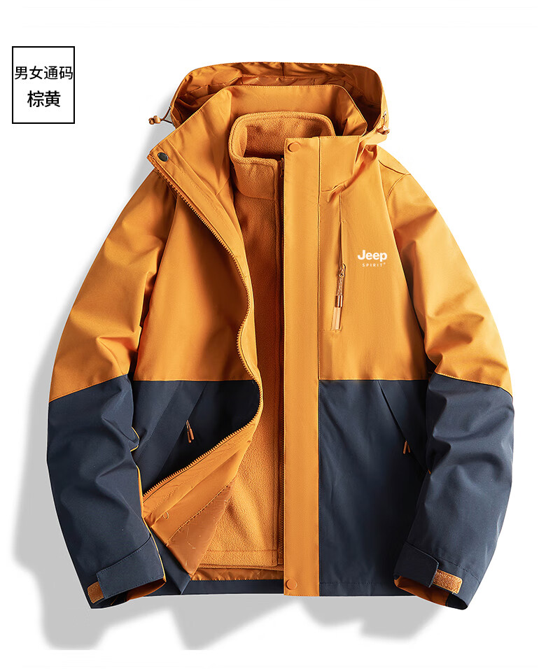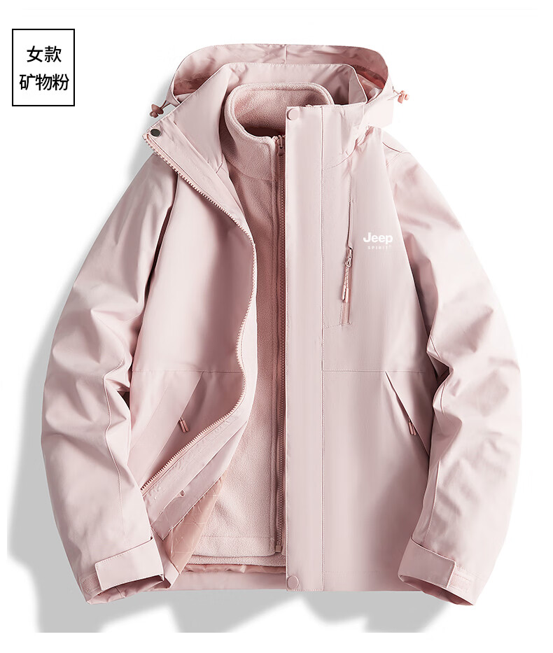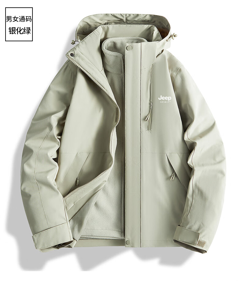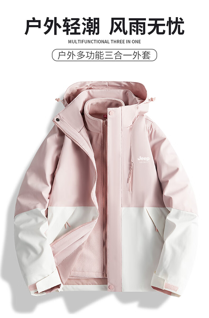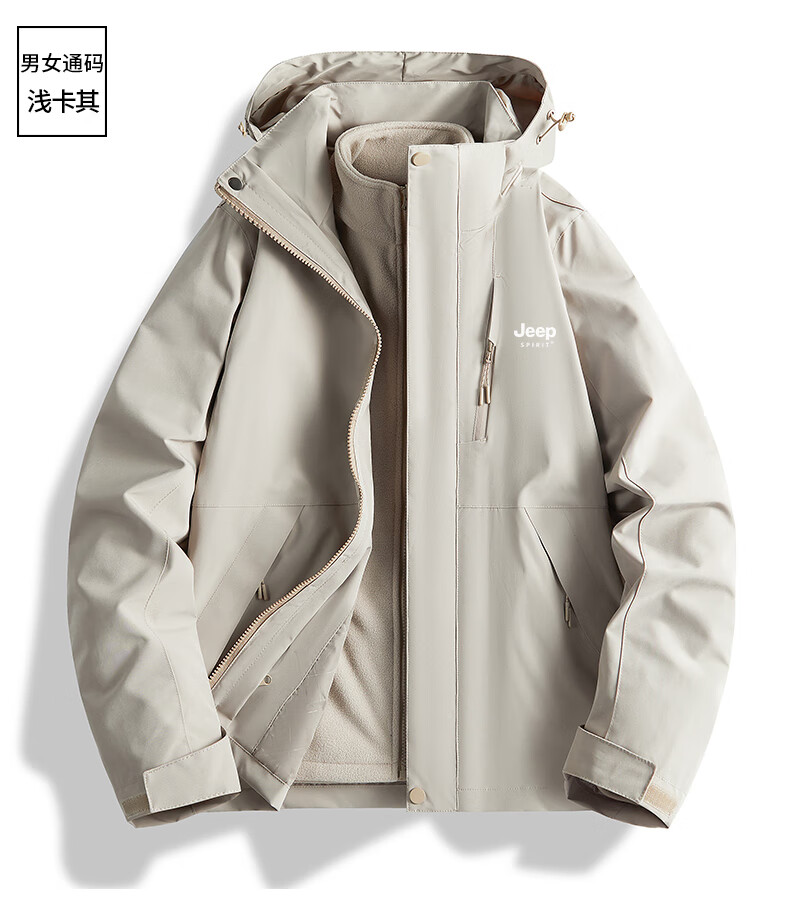 吉普(JEEP)冲锋衣女新款三合一可拆卸户外防风防水超好看登山服冲锋衣裤外套 男女同款-浅卡其【三合一可拆卸 L(100-120斤)