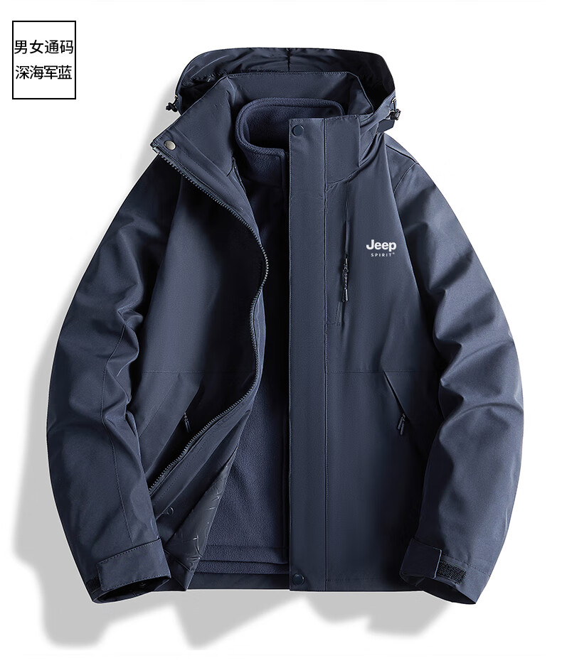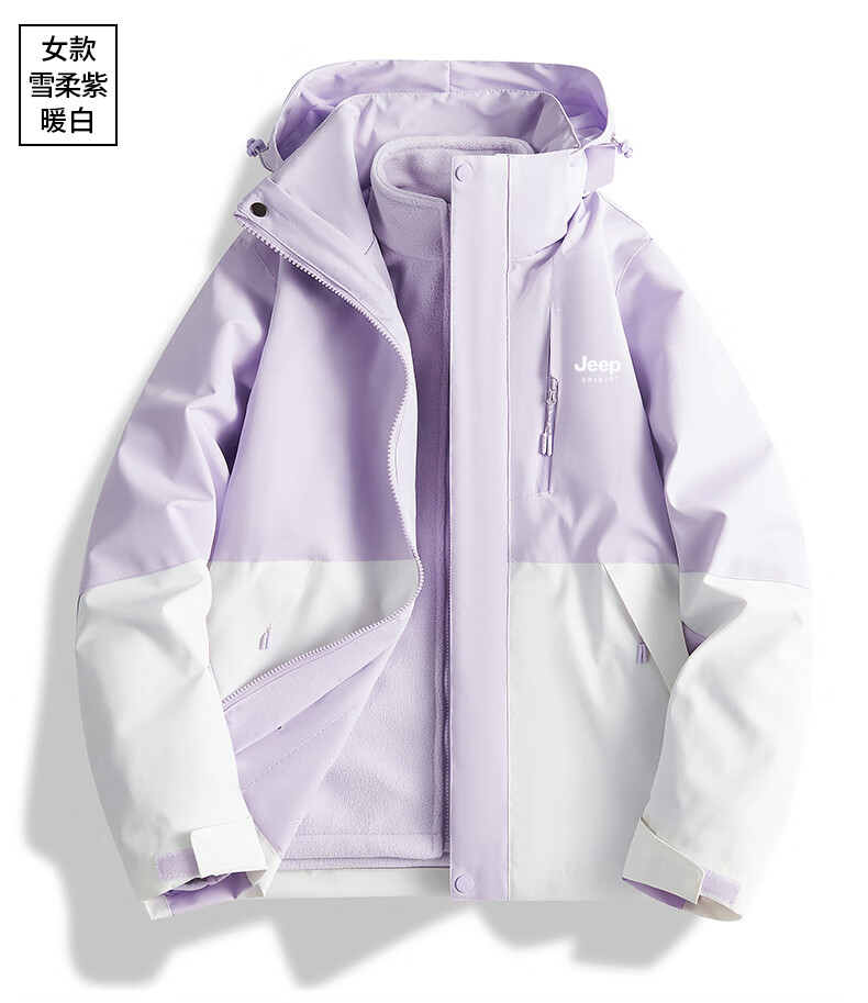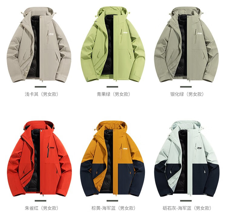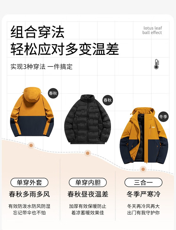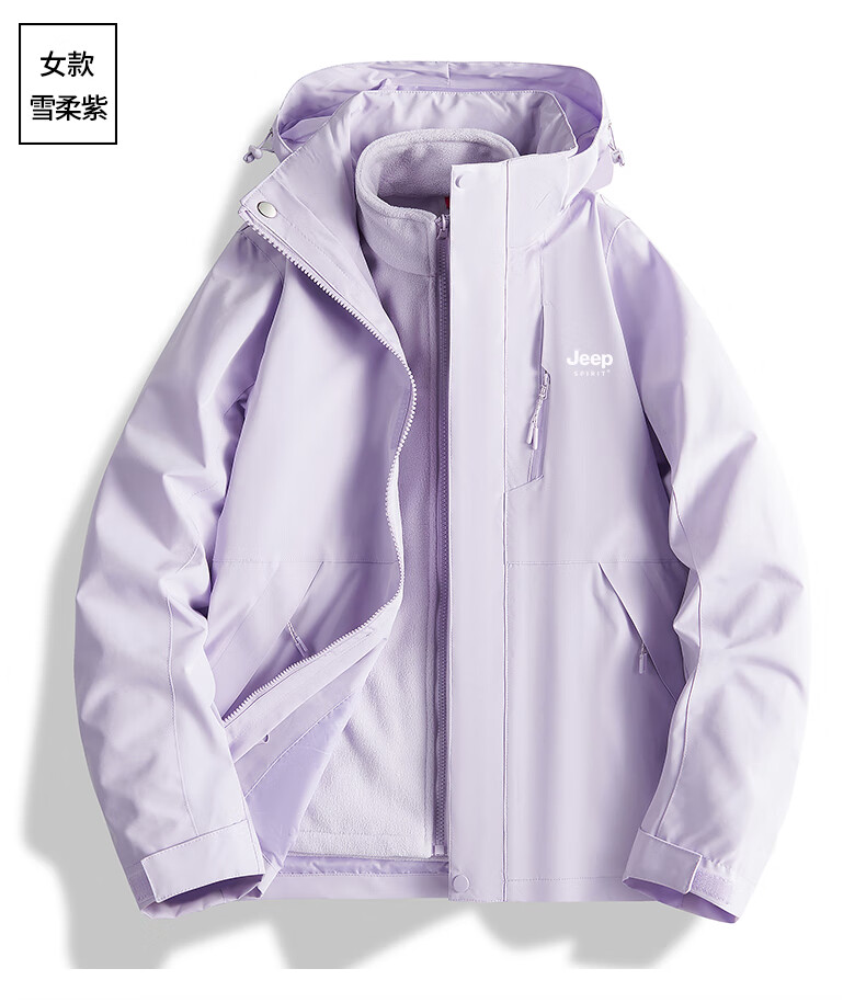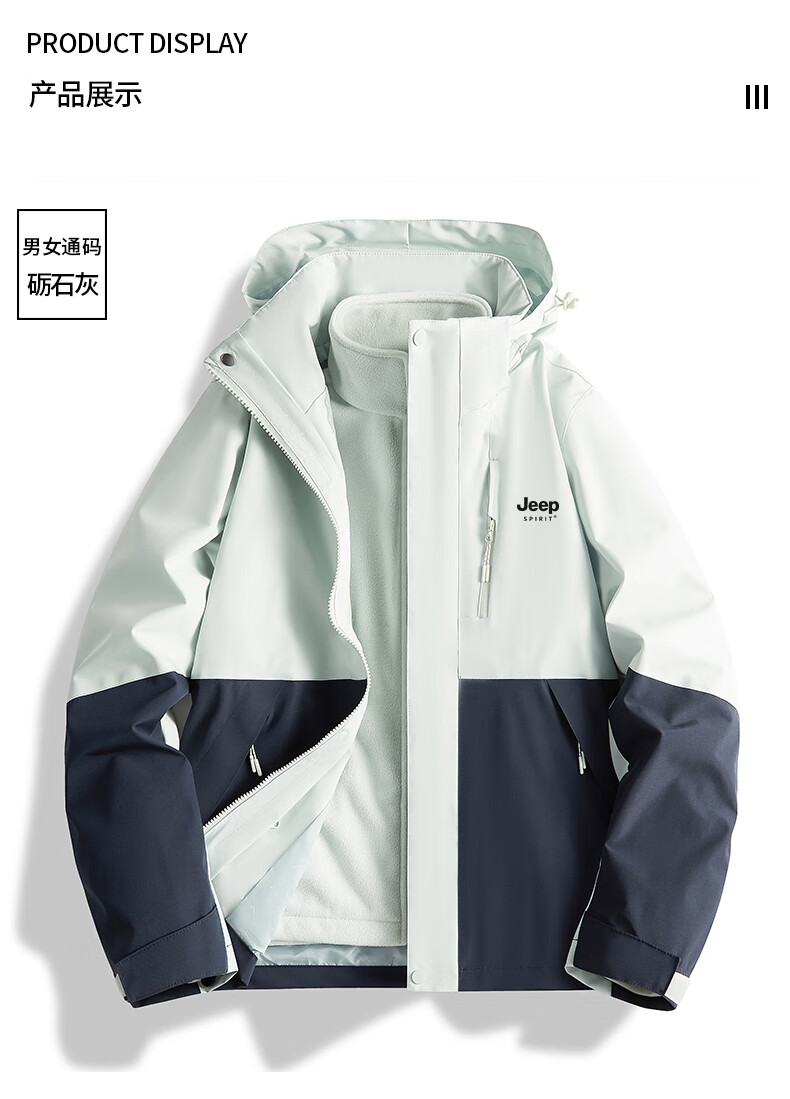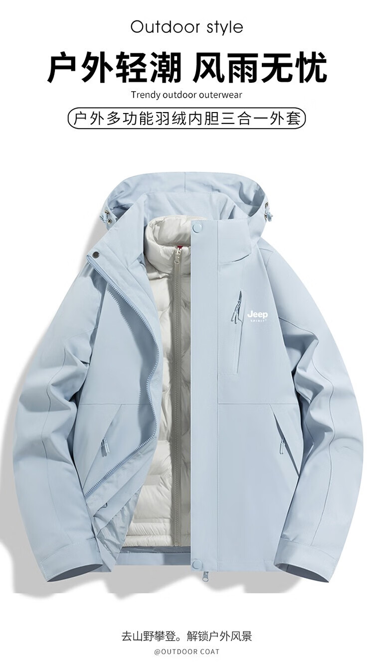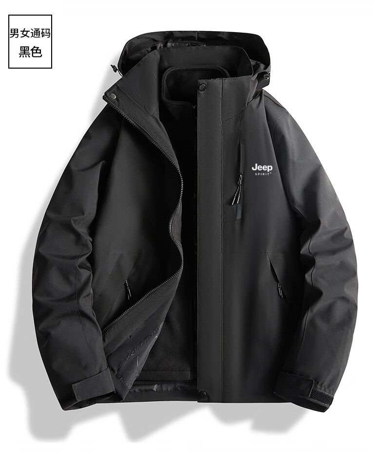 吉普(JEEP)冲锋衣女新款三合一可拆卸户外防风防水超好看登山服冲锋衣裤外套 男女同款-浅卡其【三合一可拆卸 L(100-120斤)