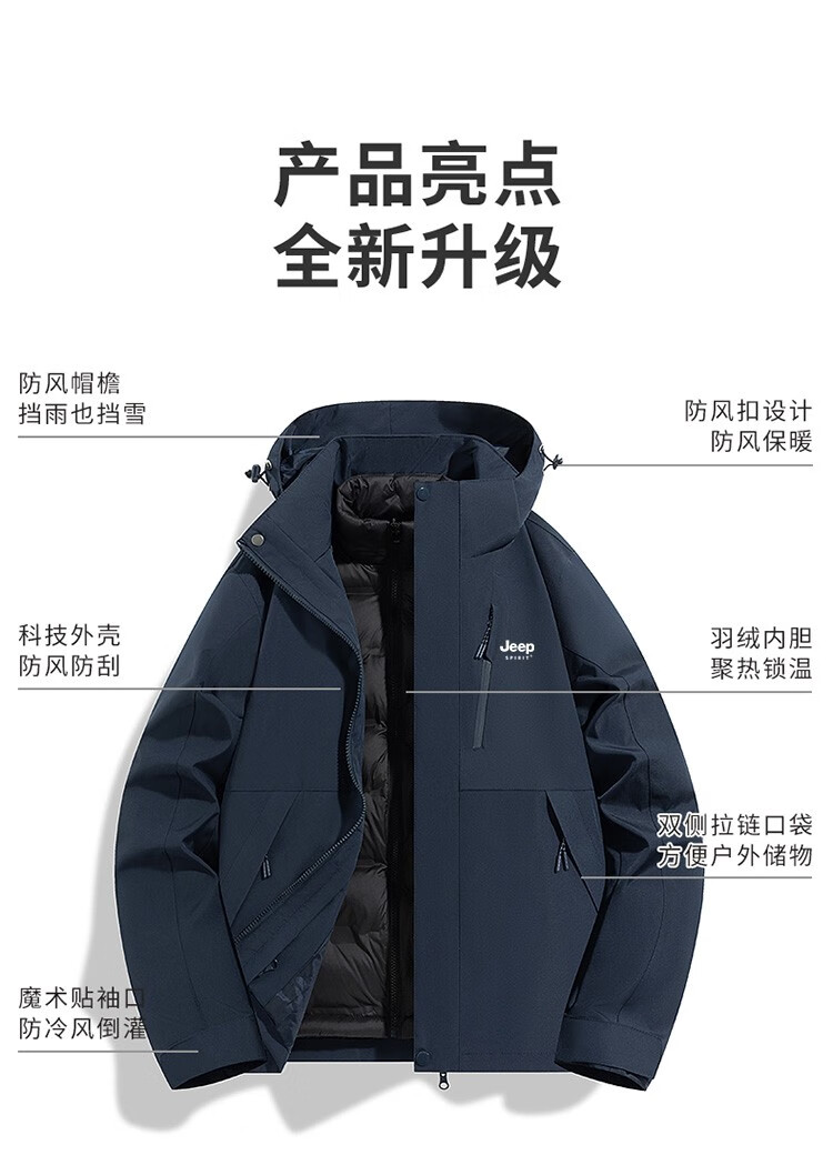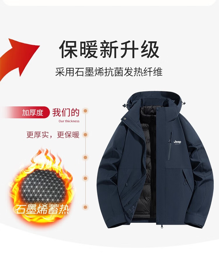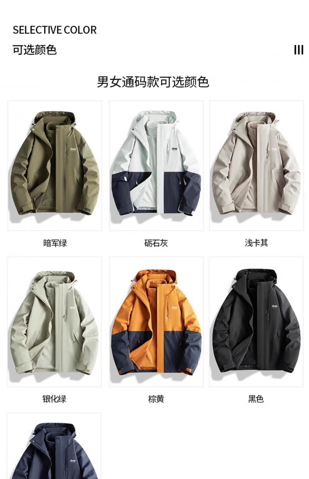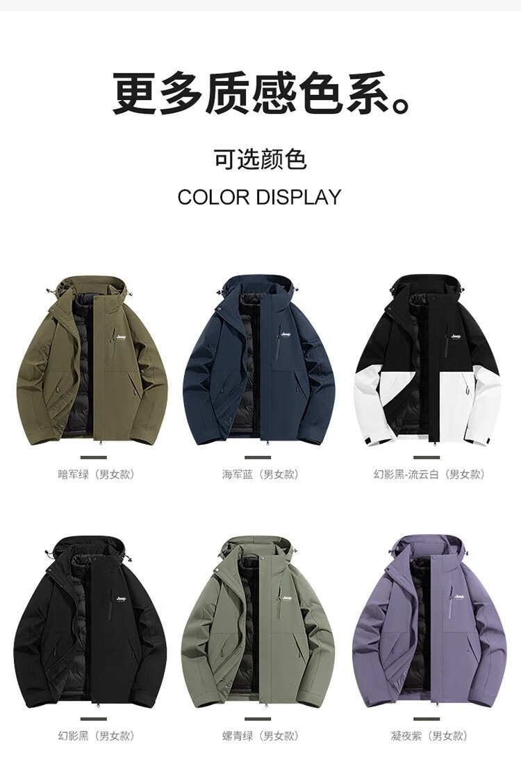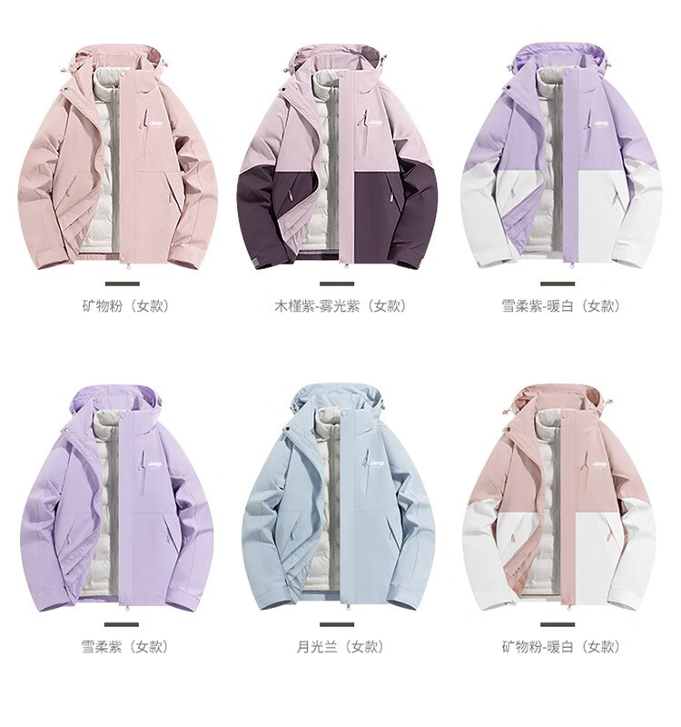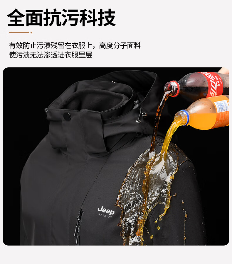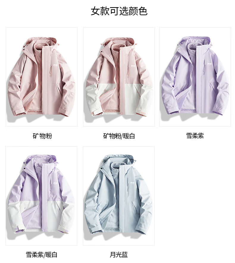 吉普(JEEP)冲锋衣女新款三合一可拆卸户外防风防水超好看登山服冲锋衣裤外套 男女同款-浅卡其【三合一可拆卸 L(100-120斤)
