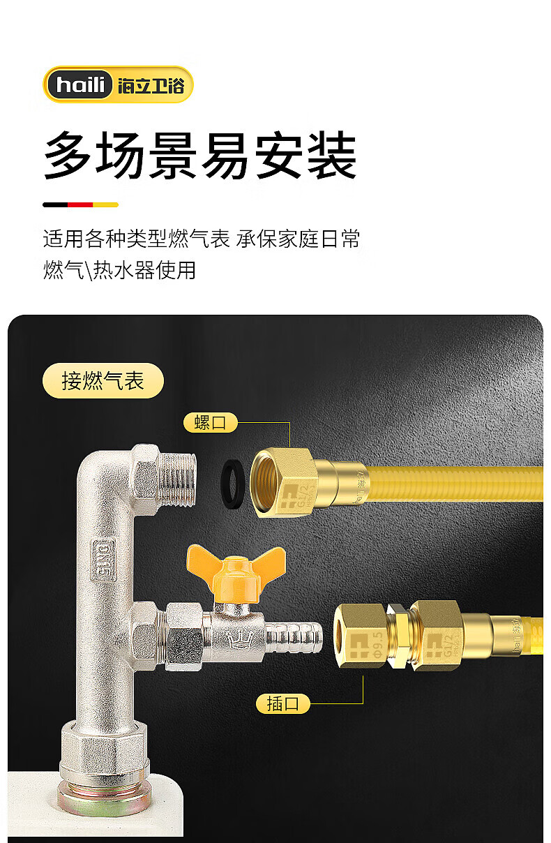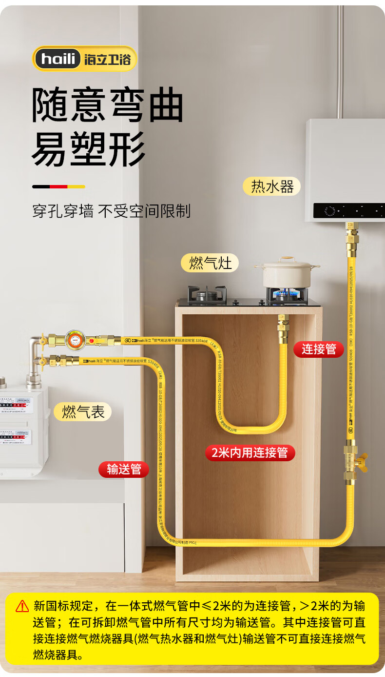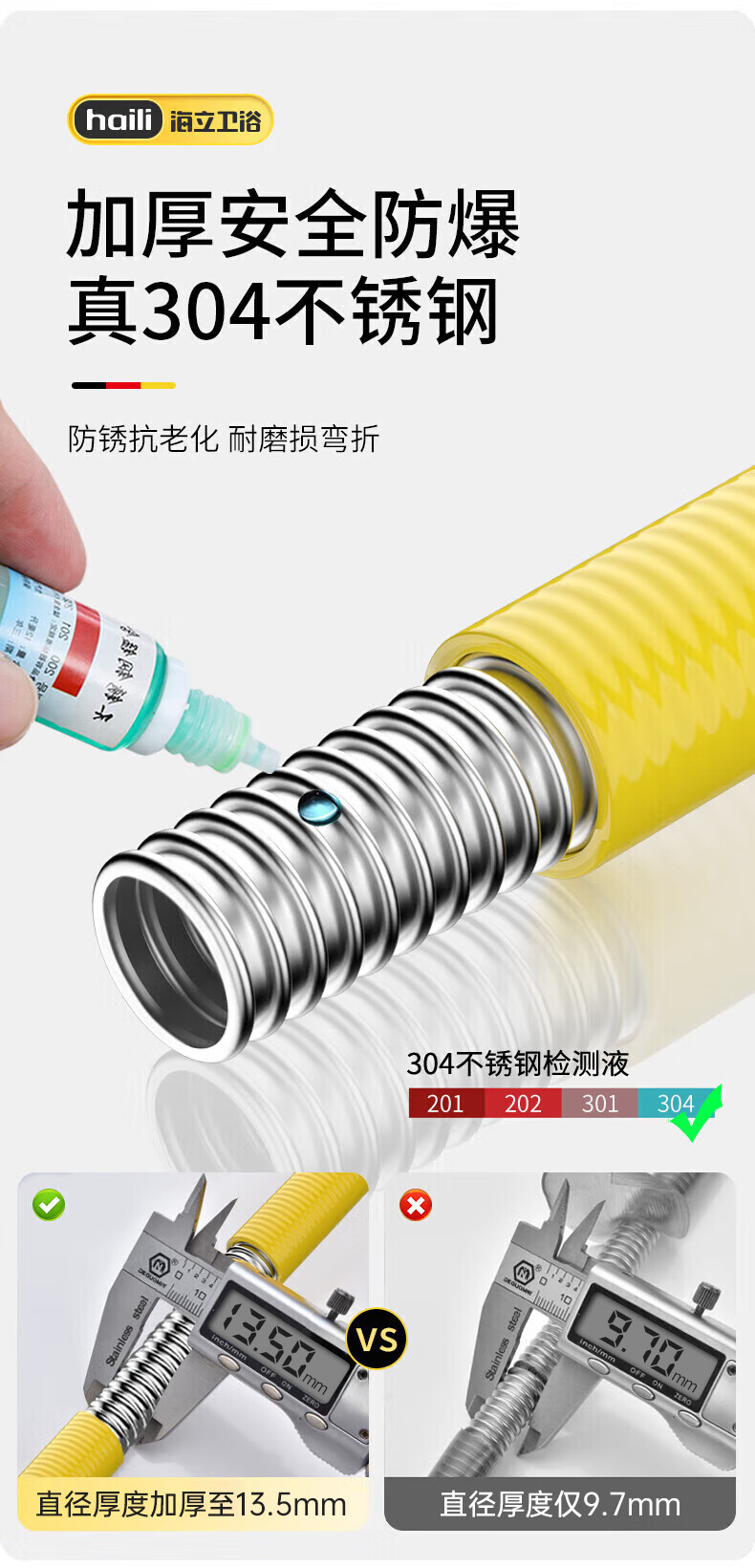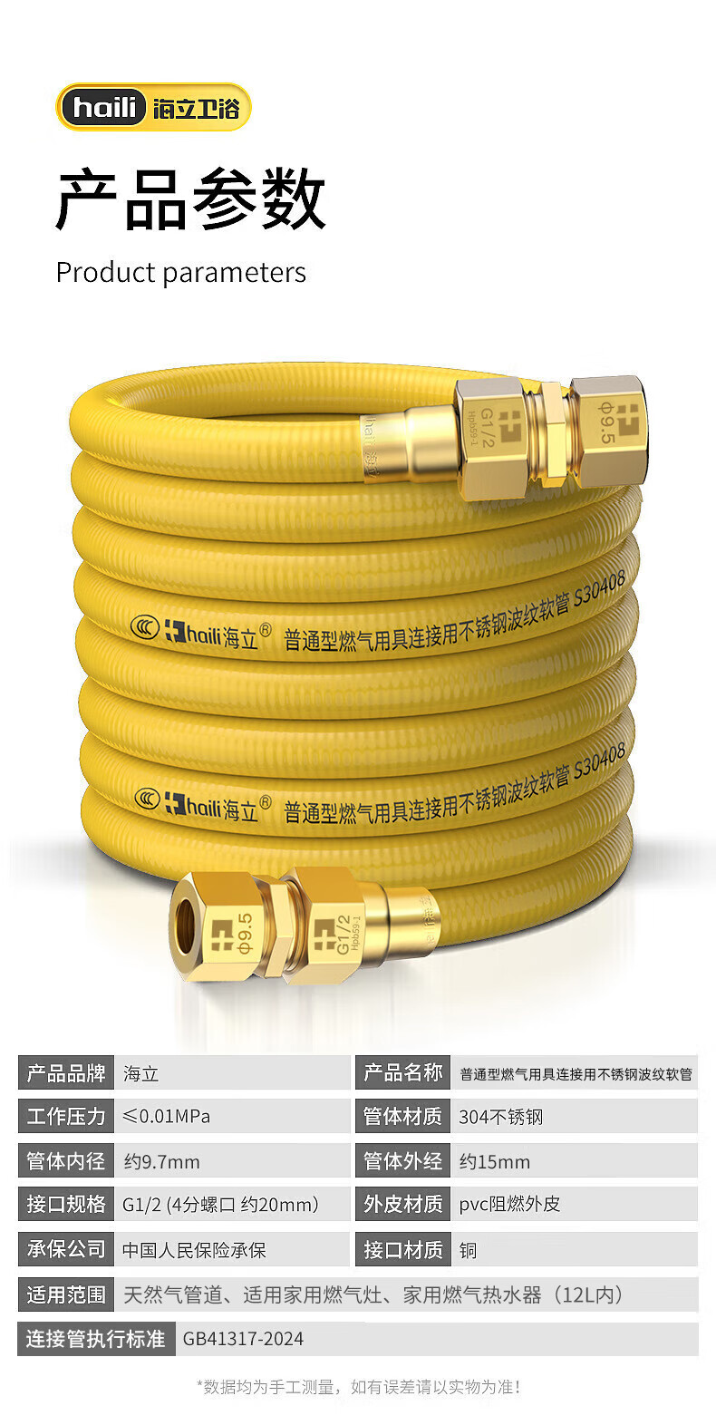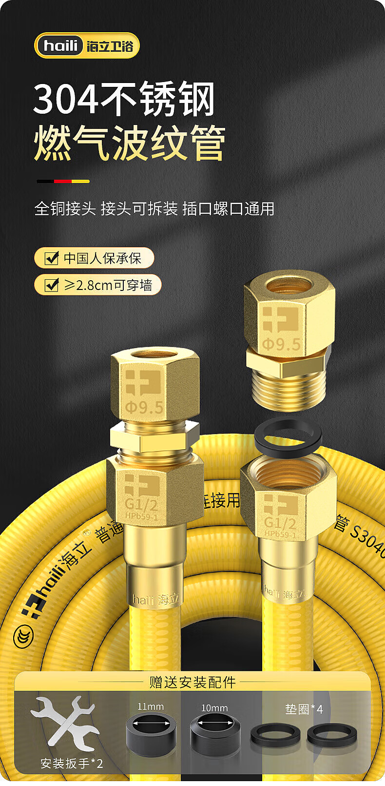 海立燃气管天然气软管304不锈钢防爆波纹管连接煤气灶热水器1.5米RB8