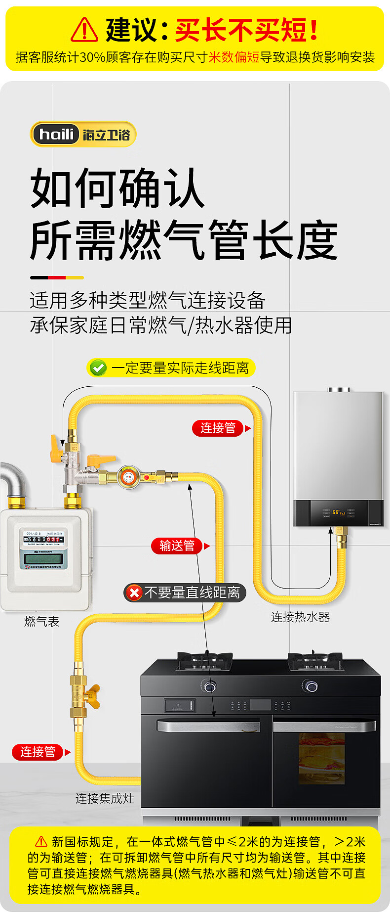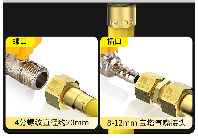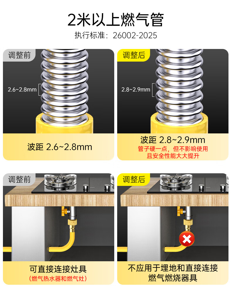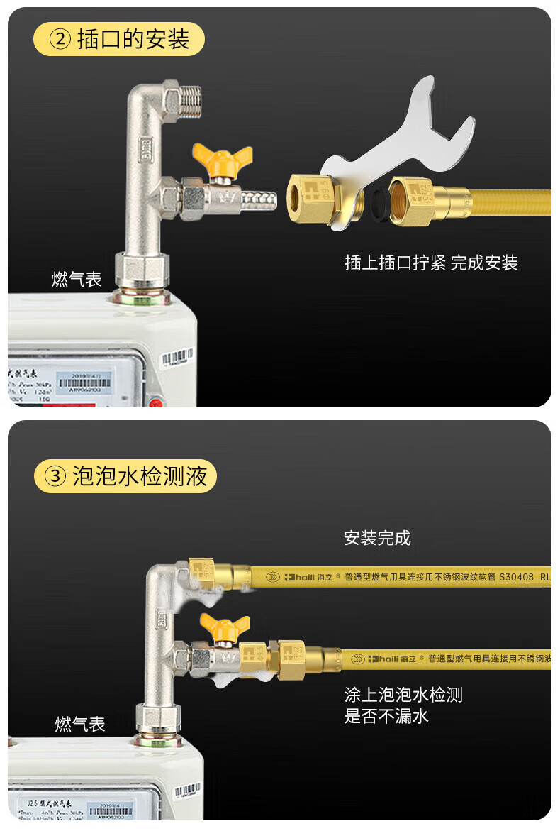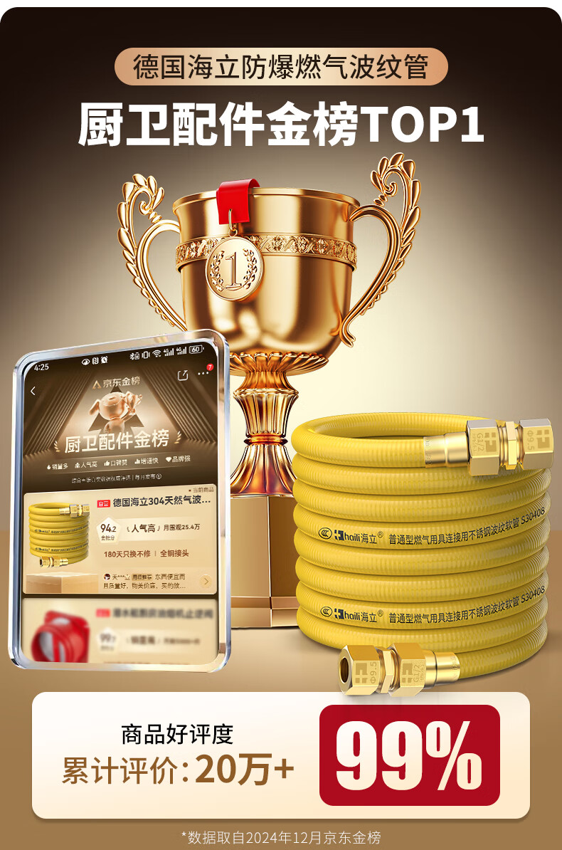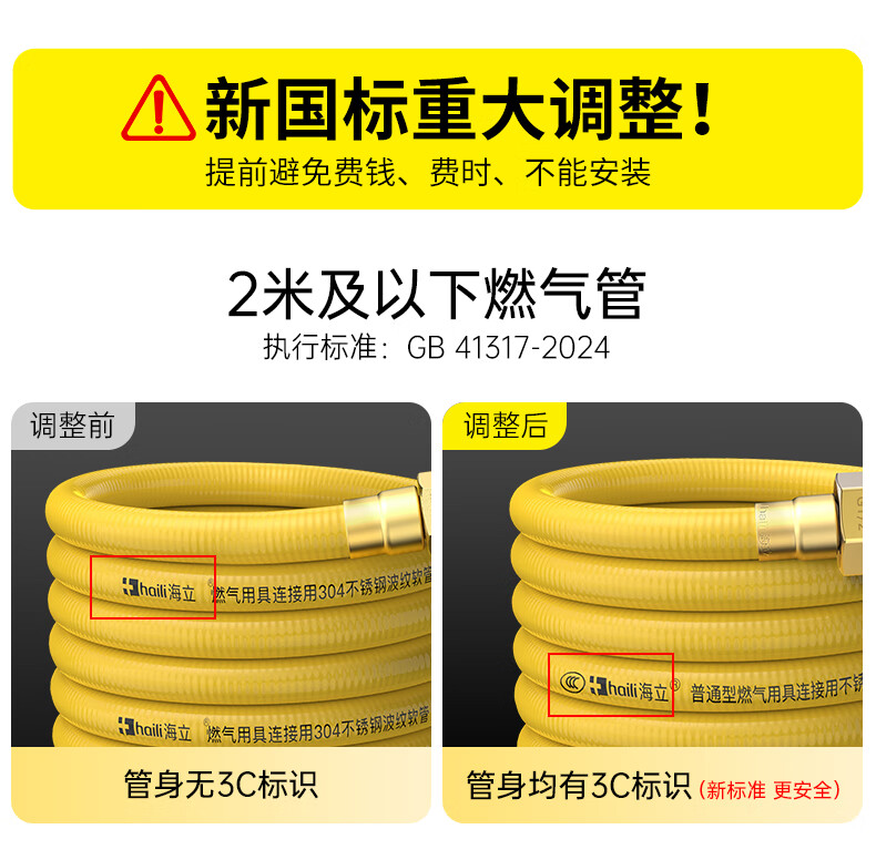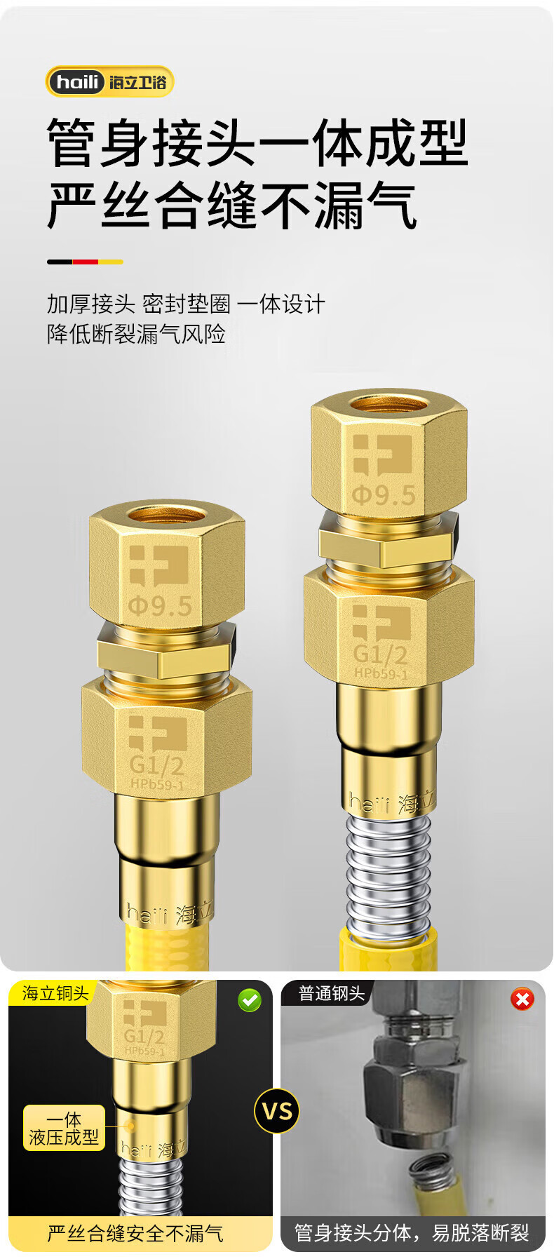 海立燃气管天然气软管304不锈钢防爆波纹管连接煤气灶热水器1.5米RB8