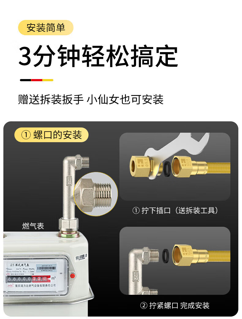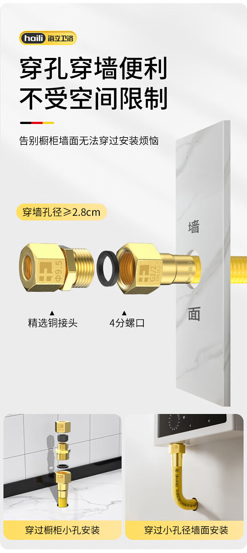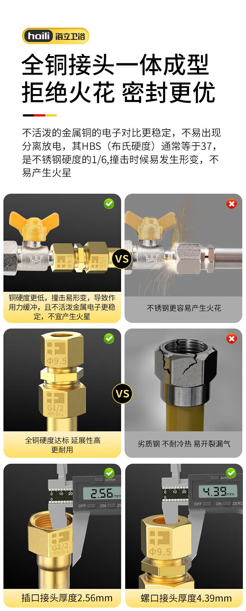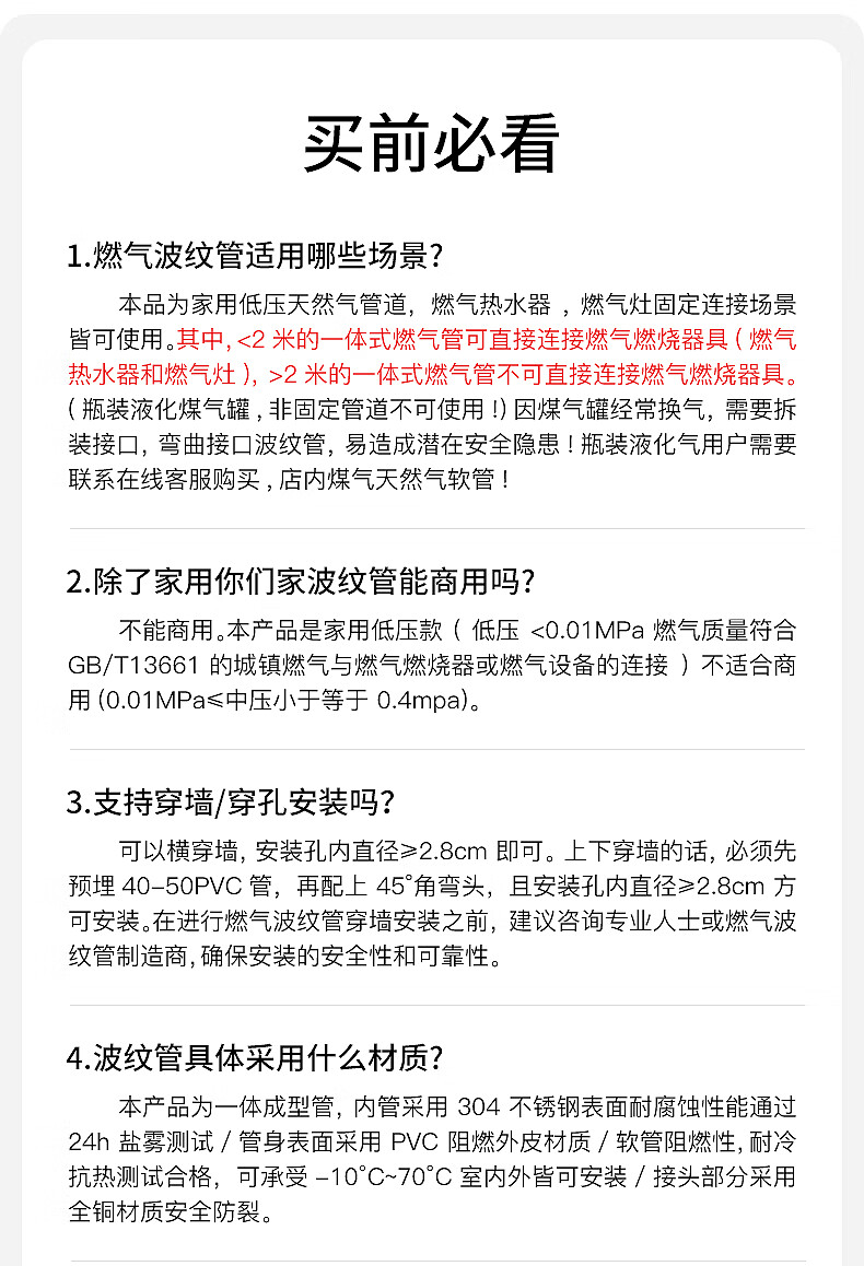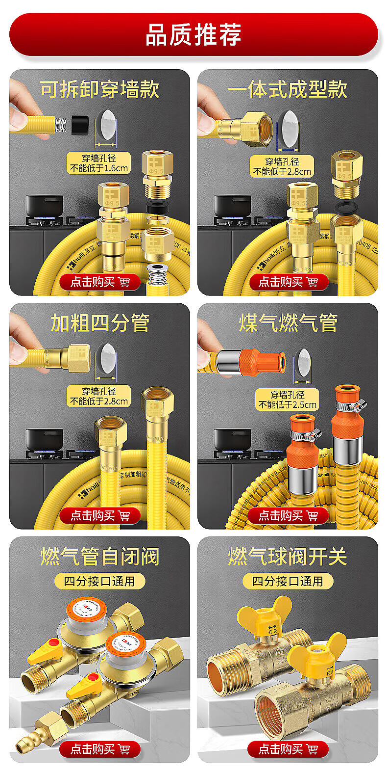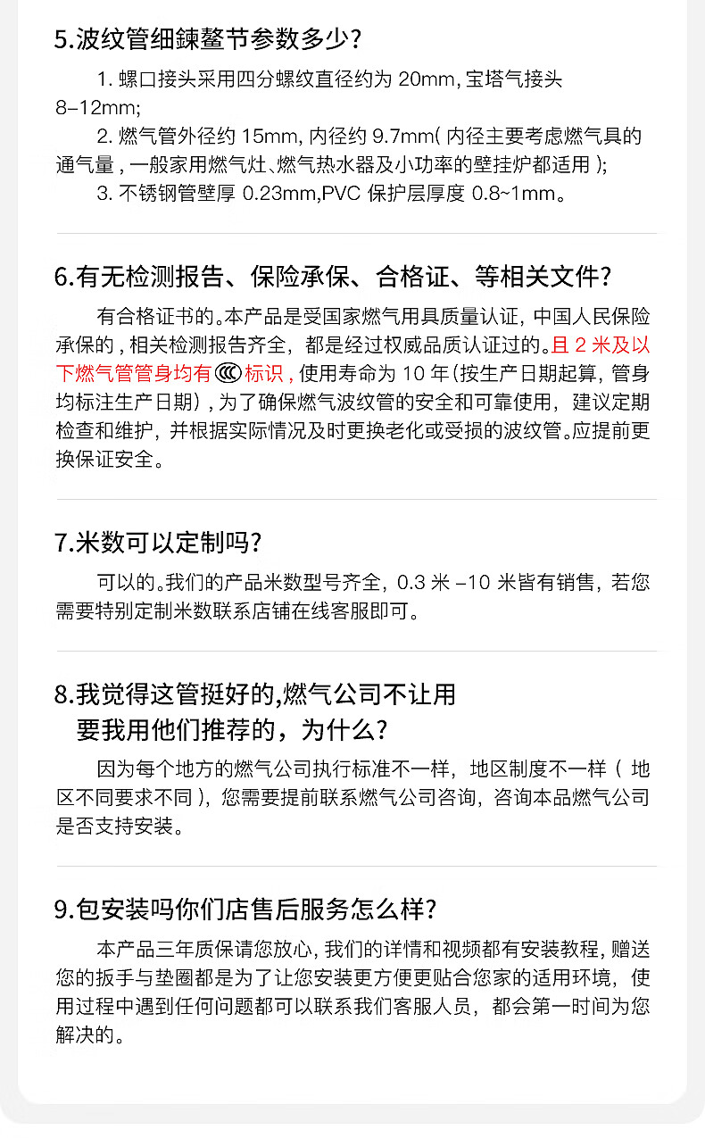 海立燃气管天然气软管304不锈钢防爆波纹管连接煤气灶热水器1.5米RB8