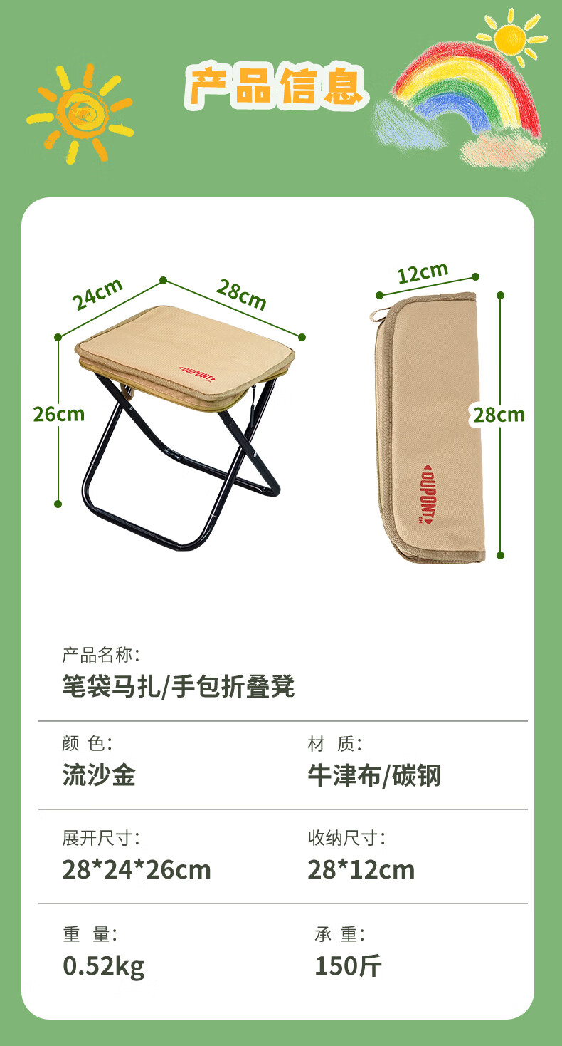 杜邦(DU PONT)户外折叠椅凳马扎户外便携式旅行折叠凳子户外装备露营椅