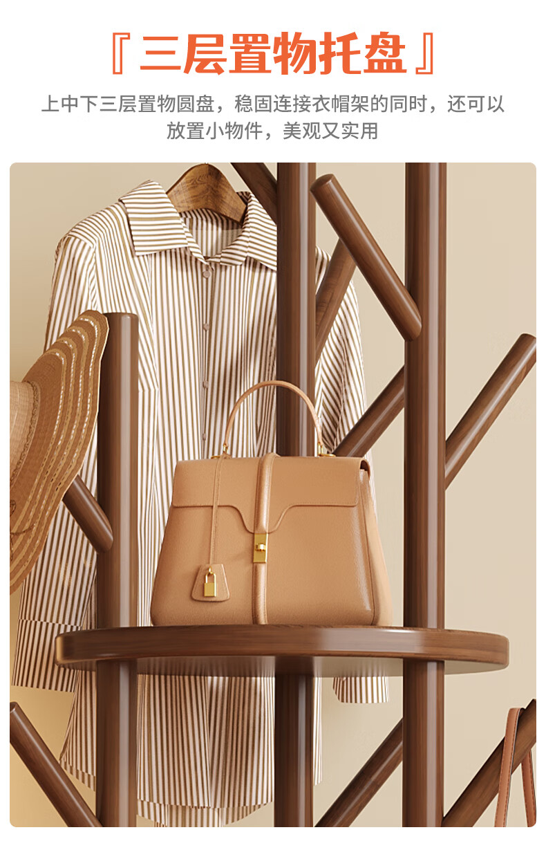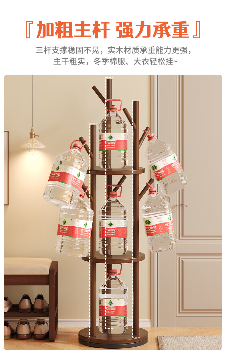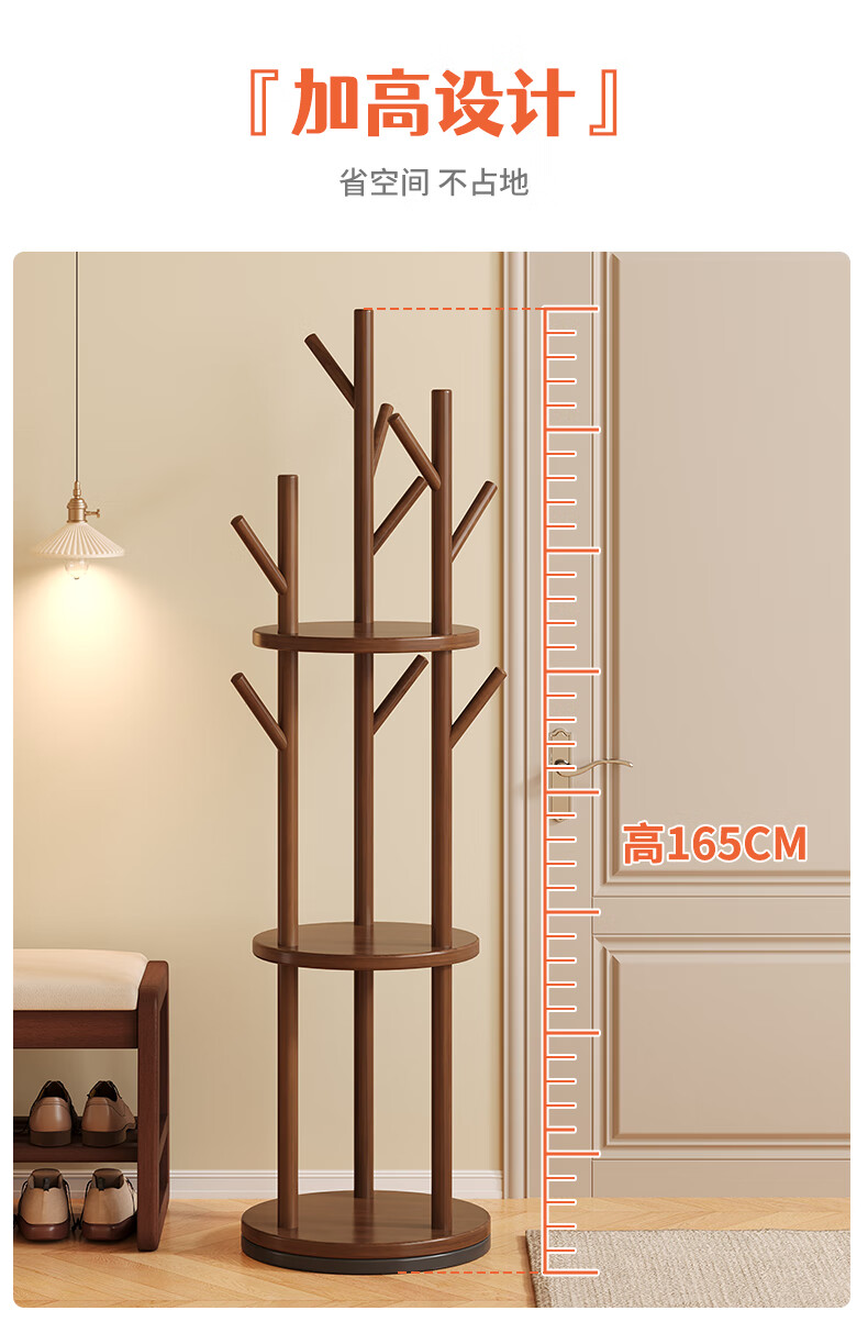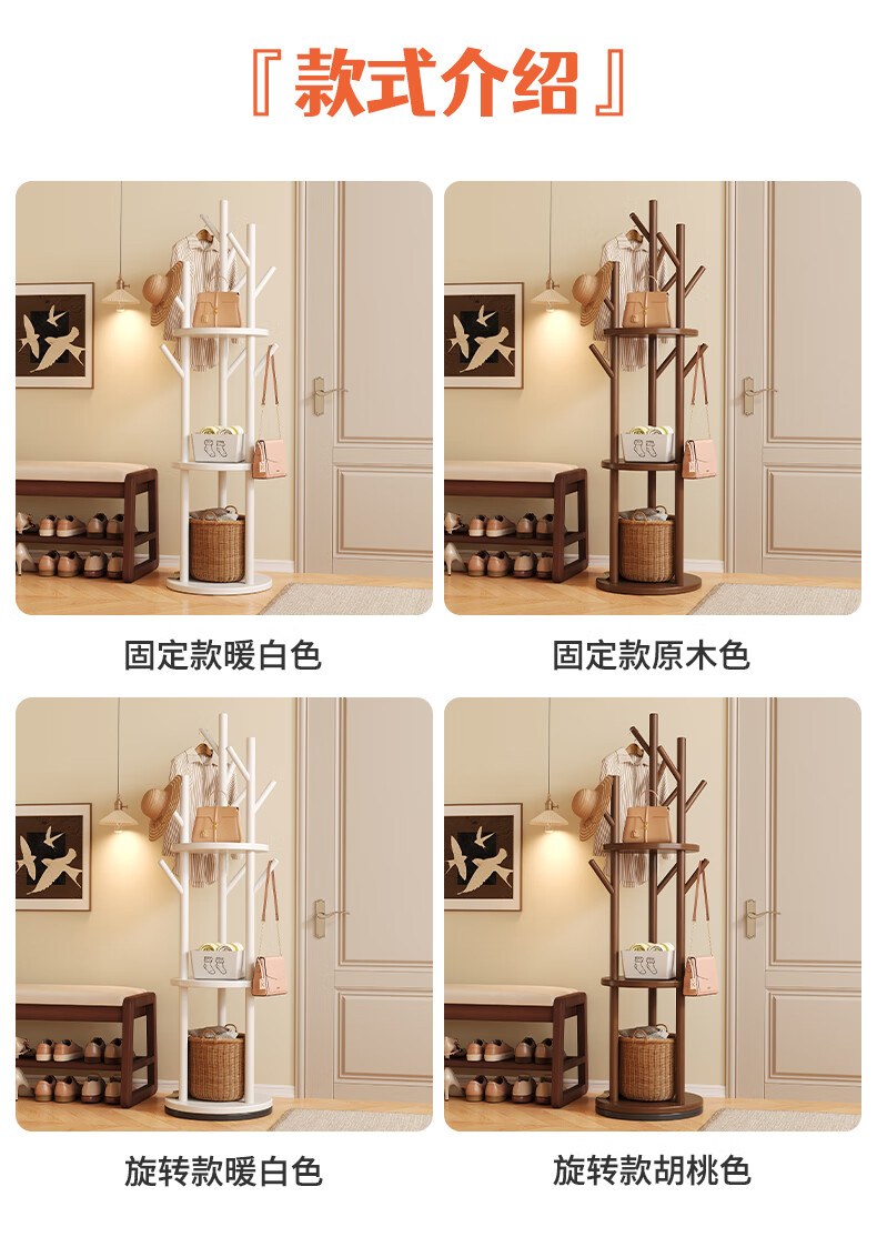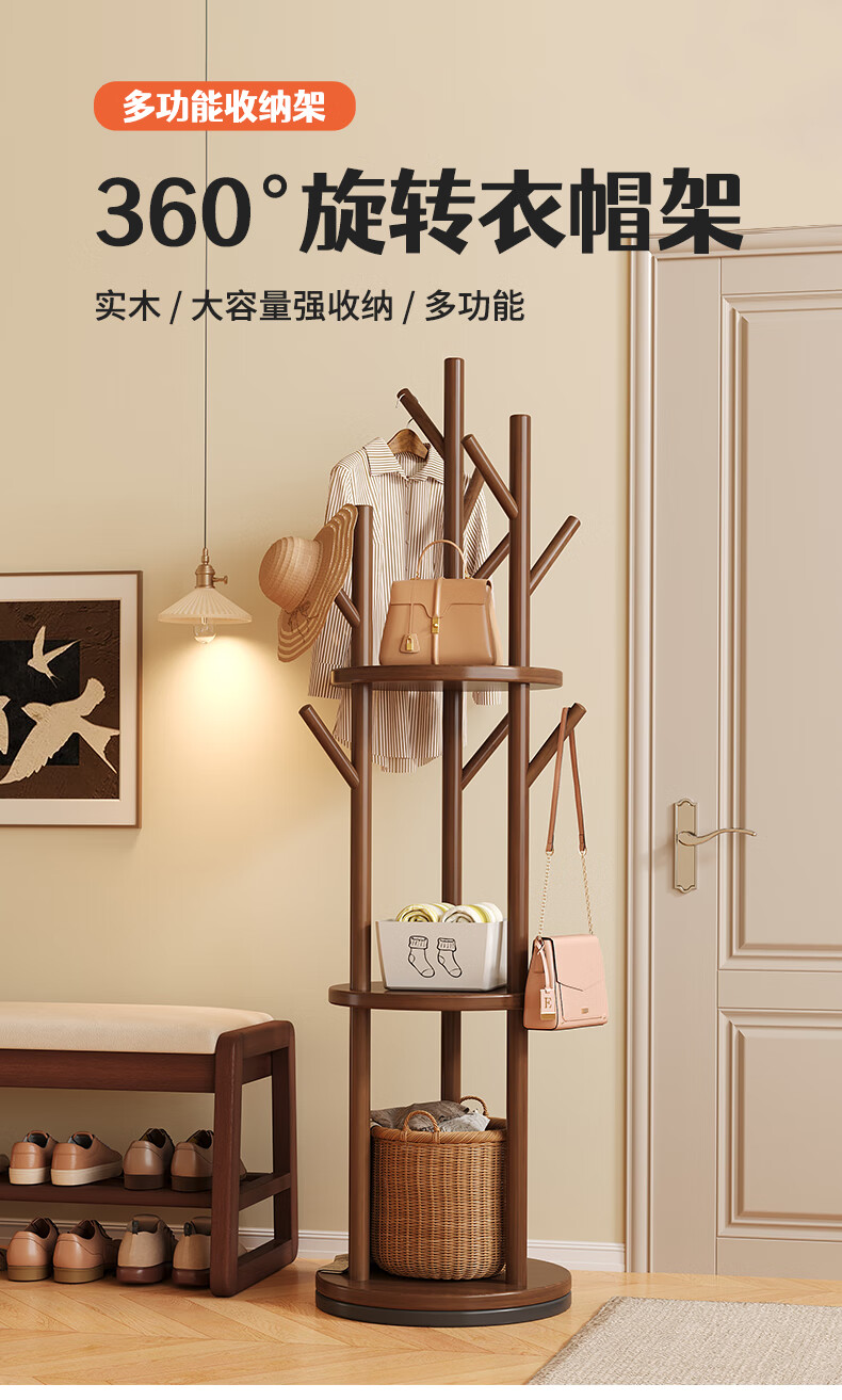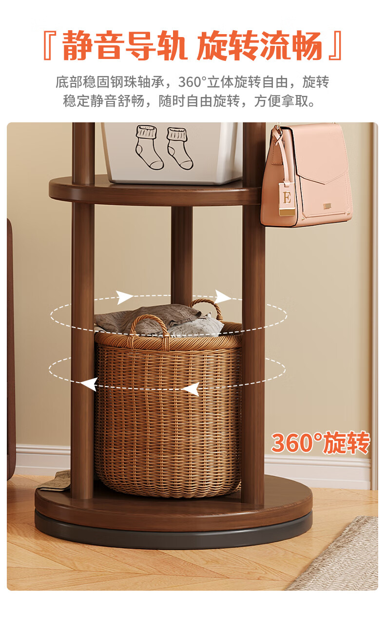 姗姗木艺实木旋转衣帽架卧室客厅落地家用转角玄关入户简易立式床头挂衣架