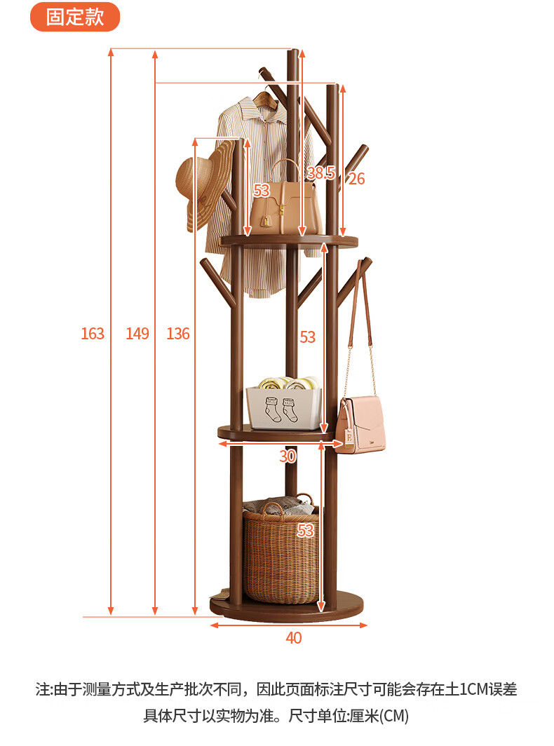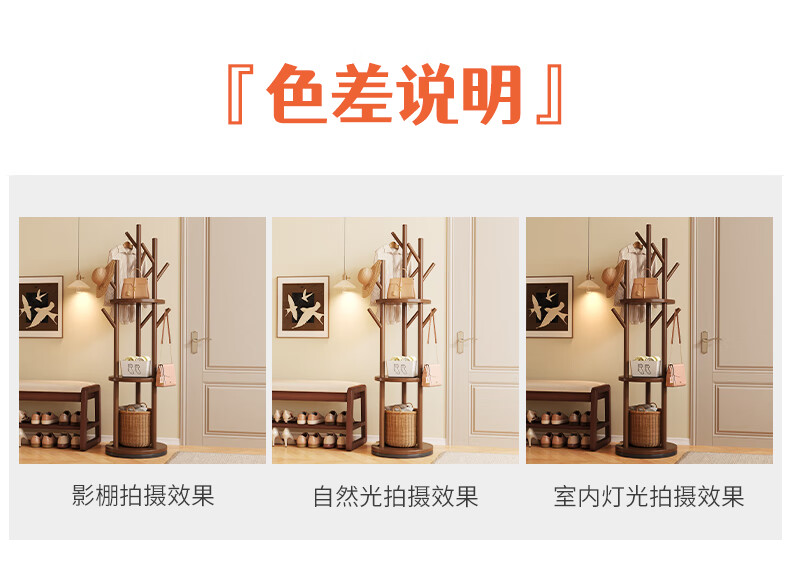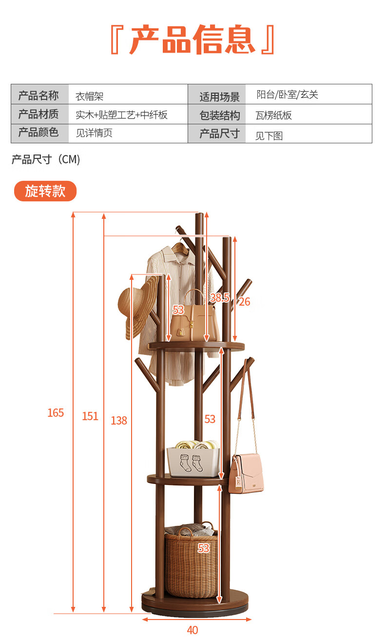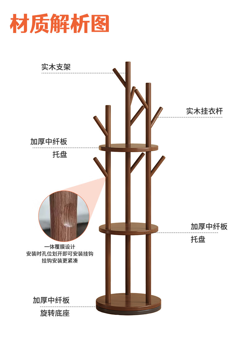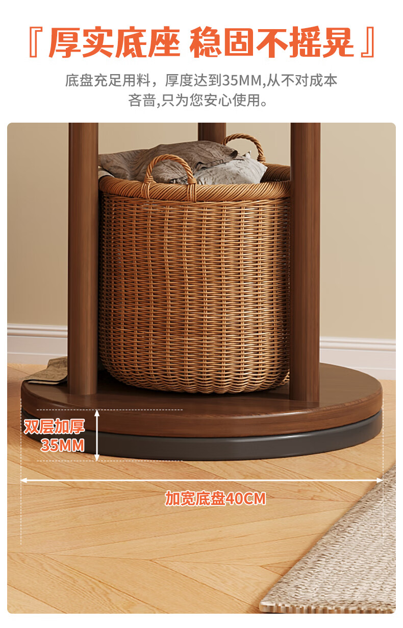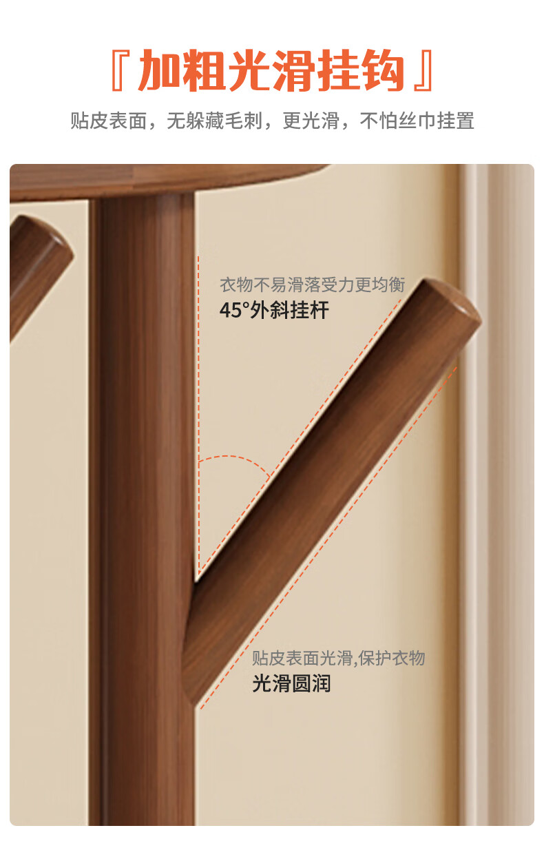 姗姗木艺实木旋转衣帽架卧室客厅落地家用转角玄关入户简易立式床头挂衣架