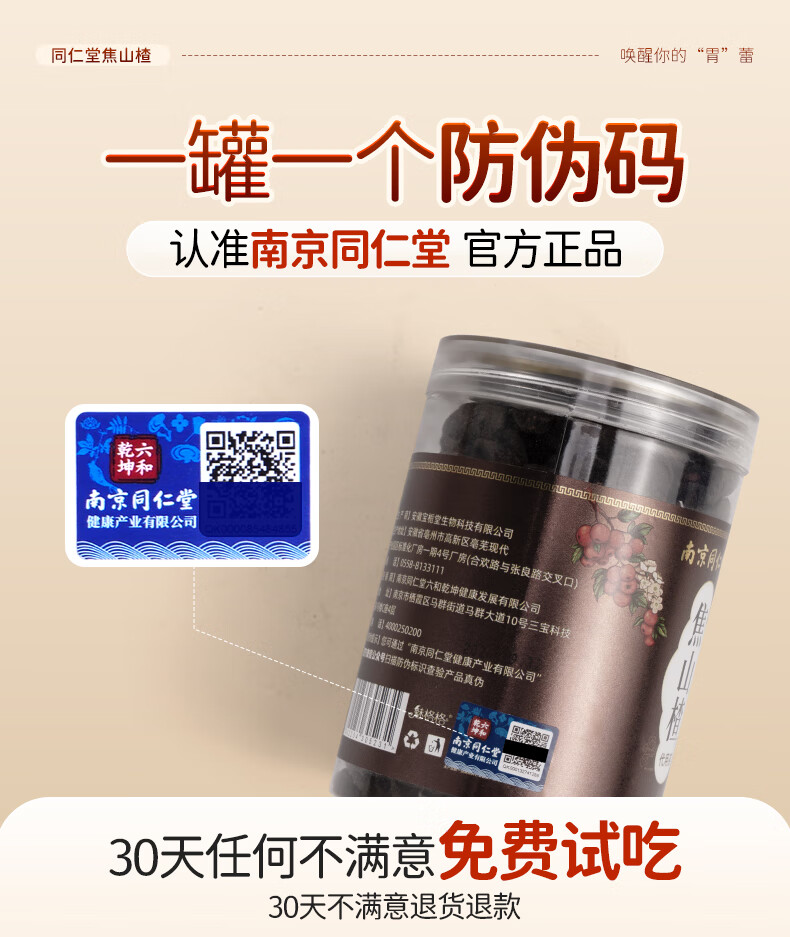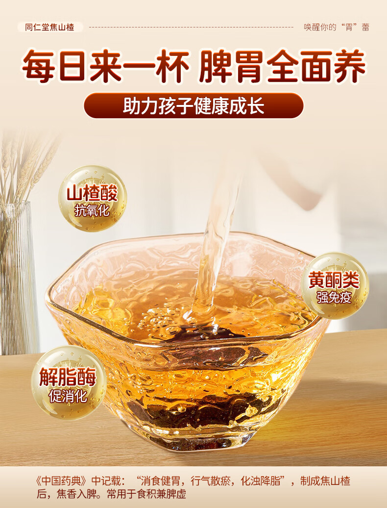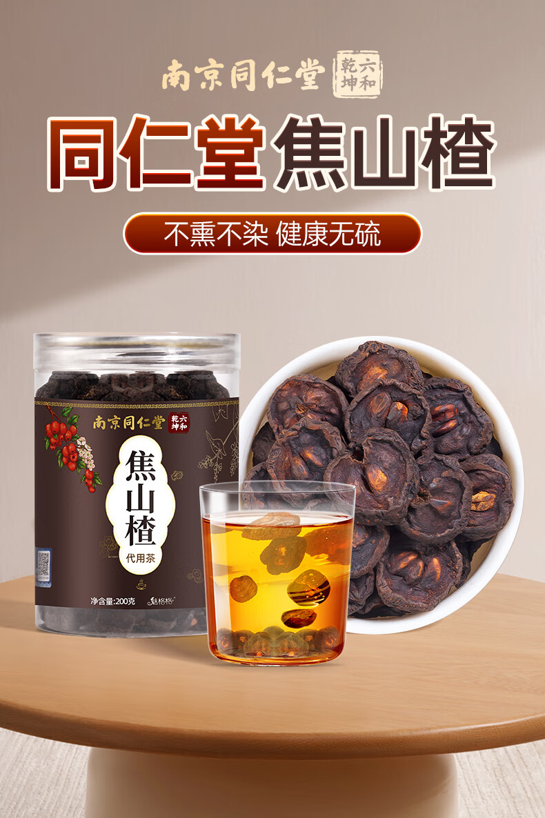 南京同仁堂 山楂干焦山楂婴儿调理脾胃积食焦三仙儿童鸡内金山楂干泡茶水片无添加