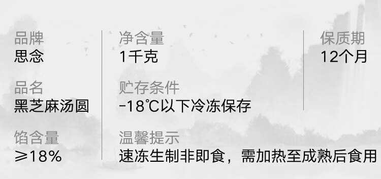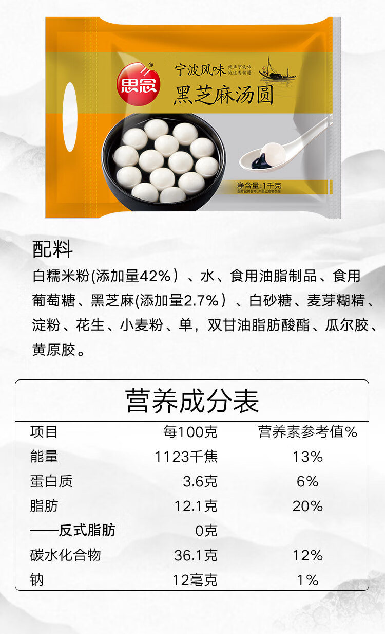 思念宁波风味黑芝麻汤圆1kg/84只 早餐甜品下午茶生鲜黑芝麻汤圆