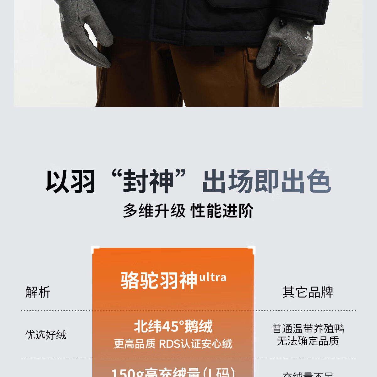 骆驼羽神Ultra户外羽绒服冬季新款男女款专业三防外套派克鹅绒服