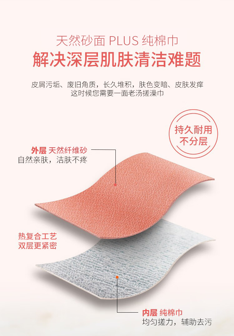 老汤搓澡巾女士专用强力搓泥不伤皮肤洗澡巾 简约细砂桔色-240*14cm