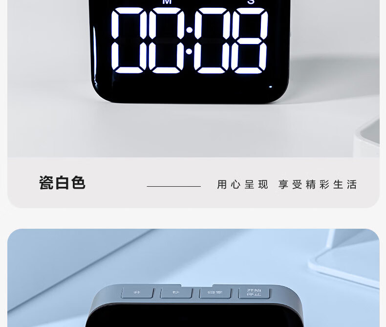 得力(deli)纽赛电子计时器高清大屏办公学生儿童专用时间管理烘焙答辩开学升学 白NS883开学礼物开学季