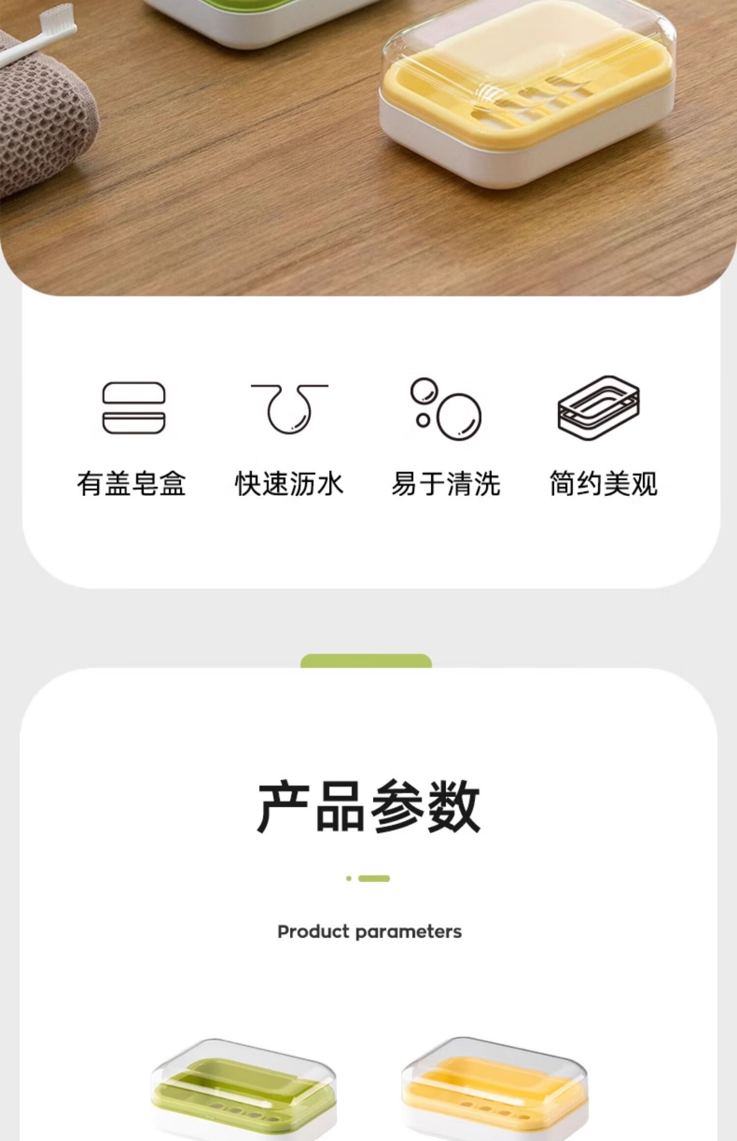 茶花 肥皂盒香皂盒创意沥水免打孔带盖浴室洗衣皂盒皂架 2只