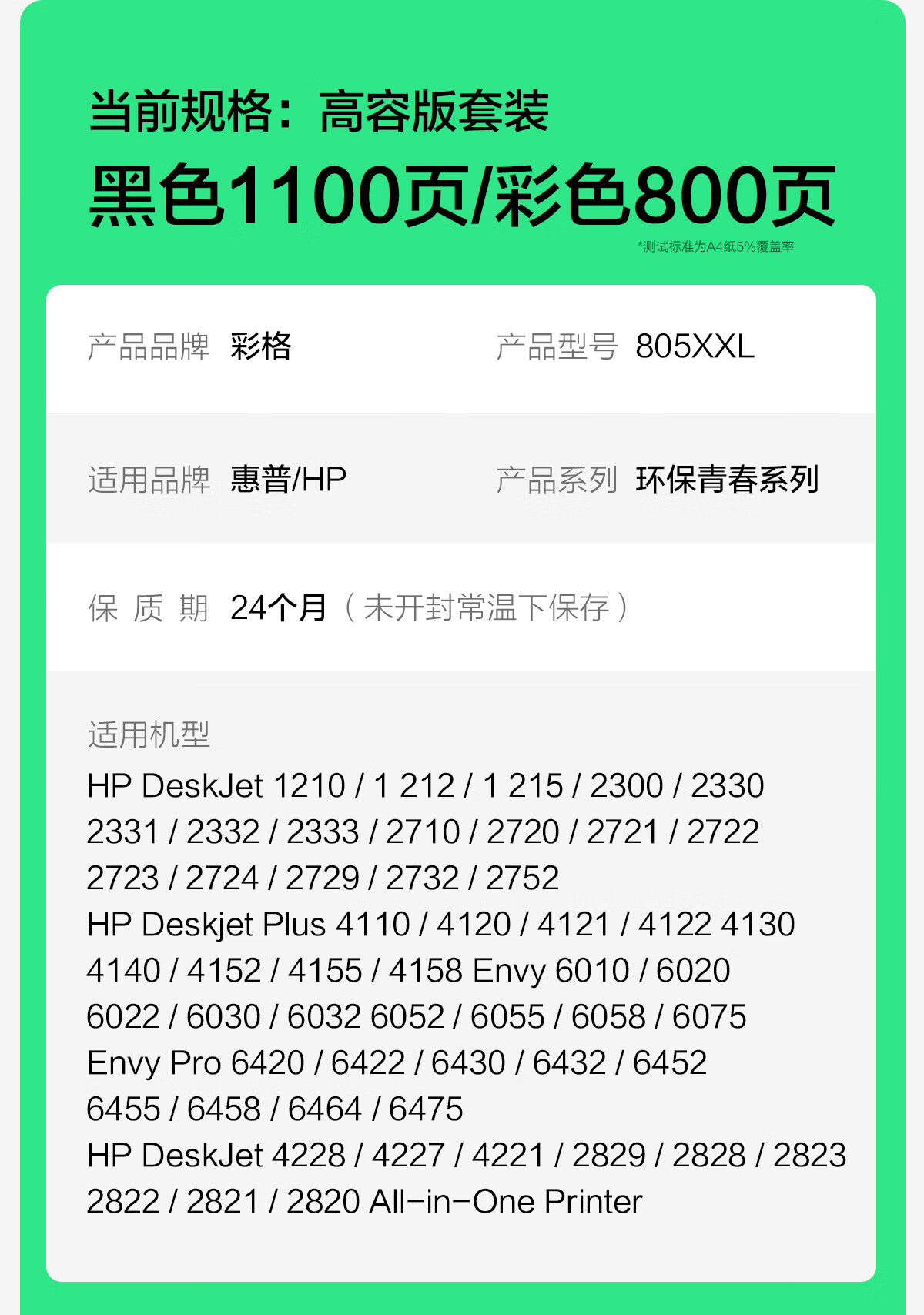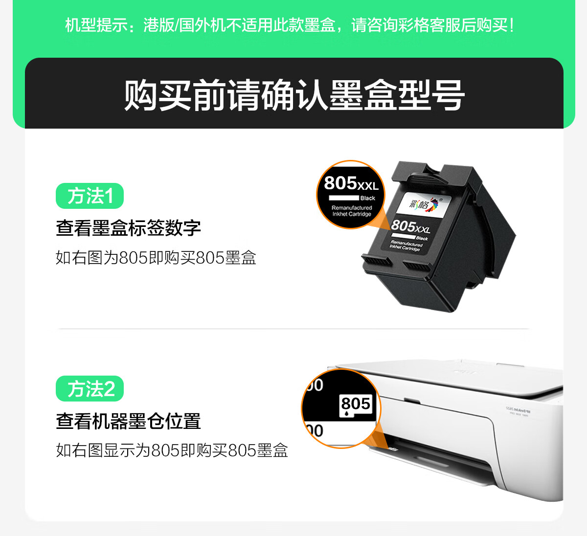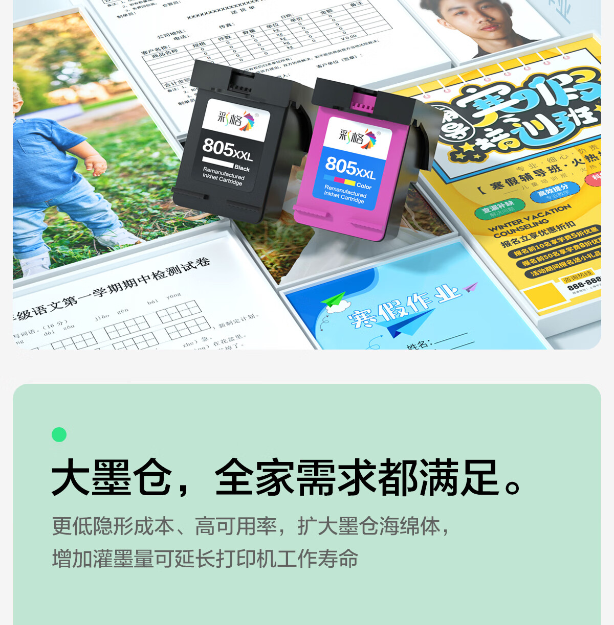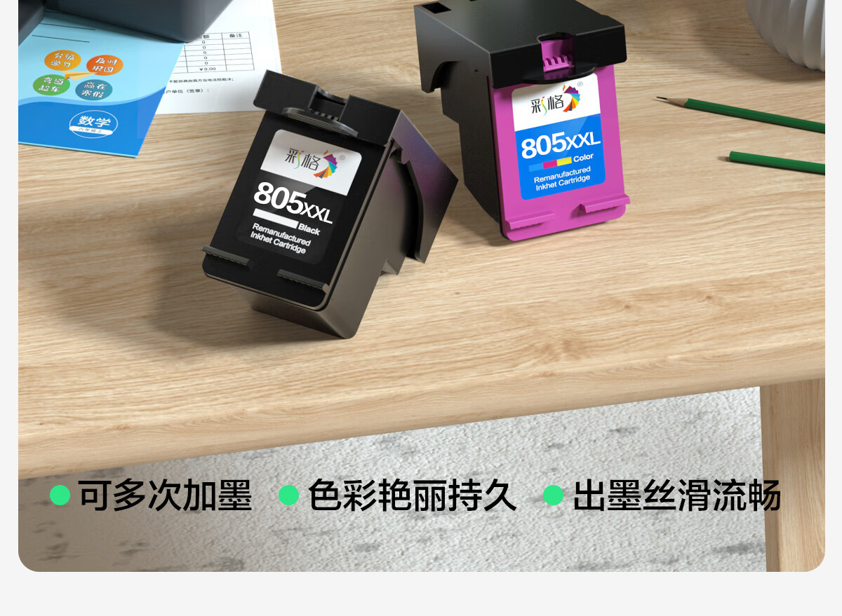 彩格适用惠普805墨盒HP2700 2720打印机1212 2330 2332 2723 2729可加墨1210 2722 2721 2820黑彩Deskjet墨水