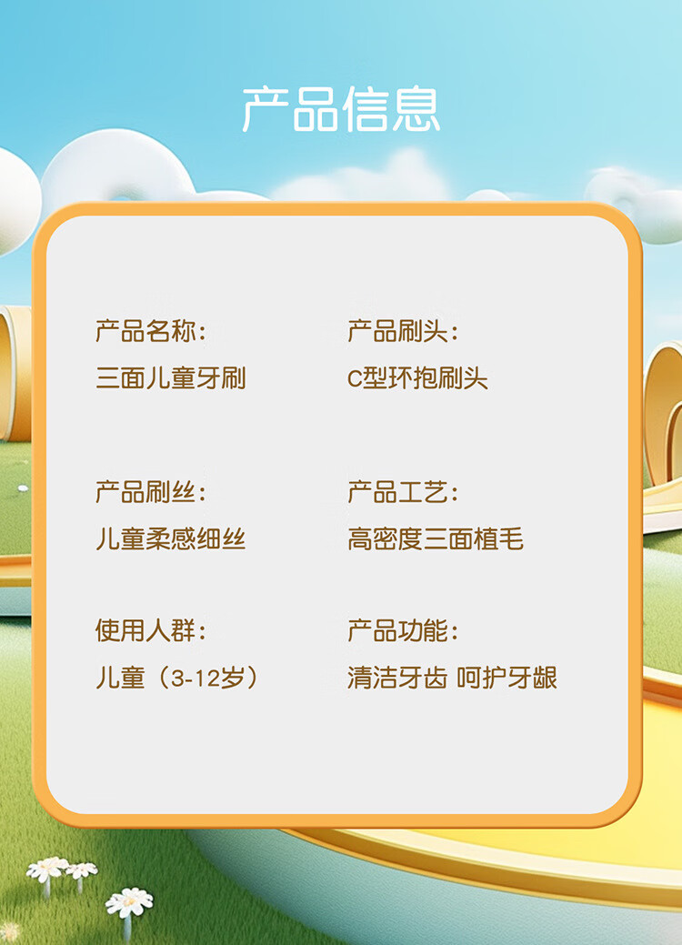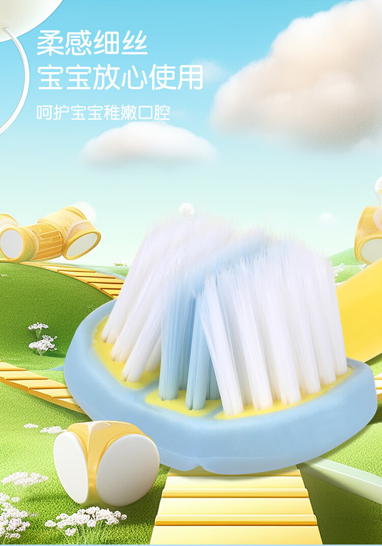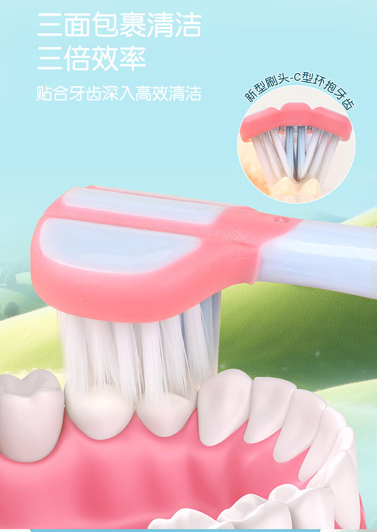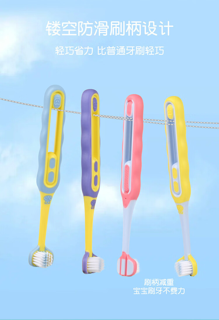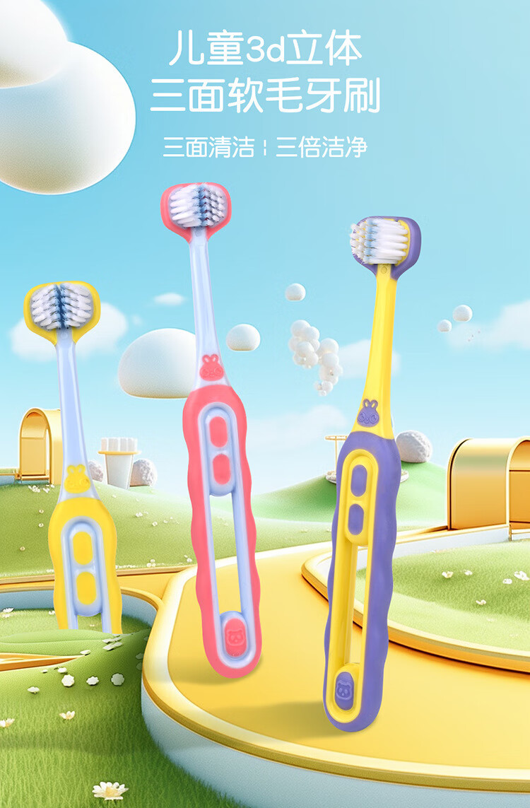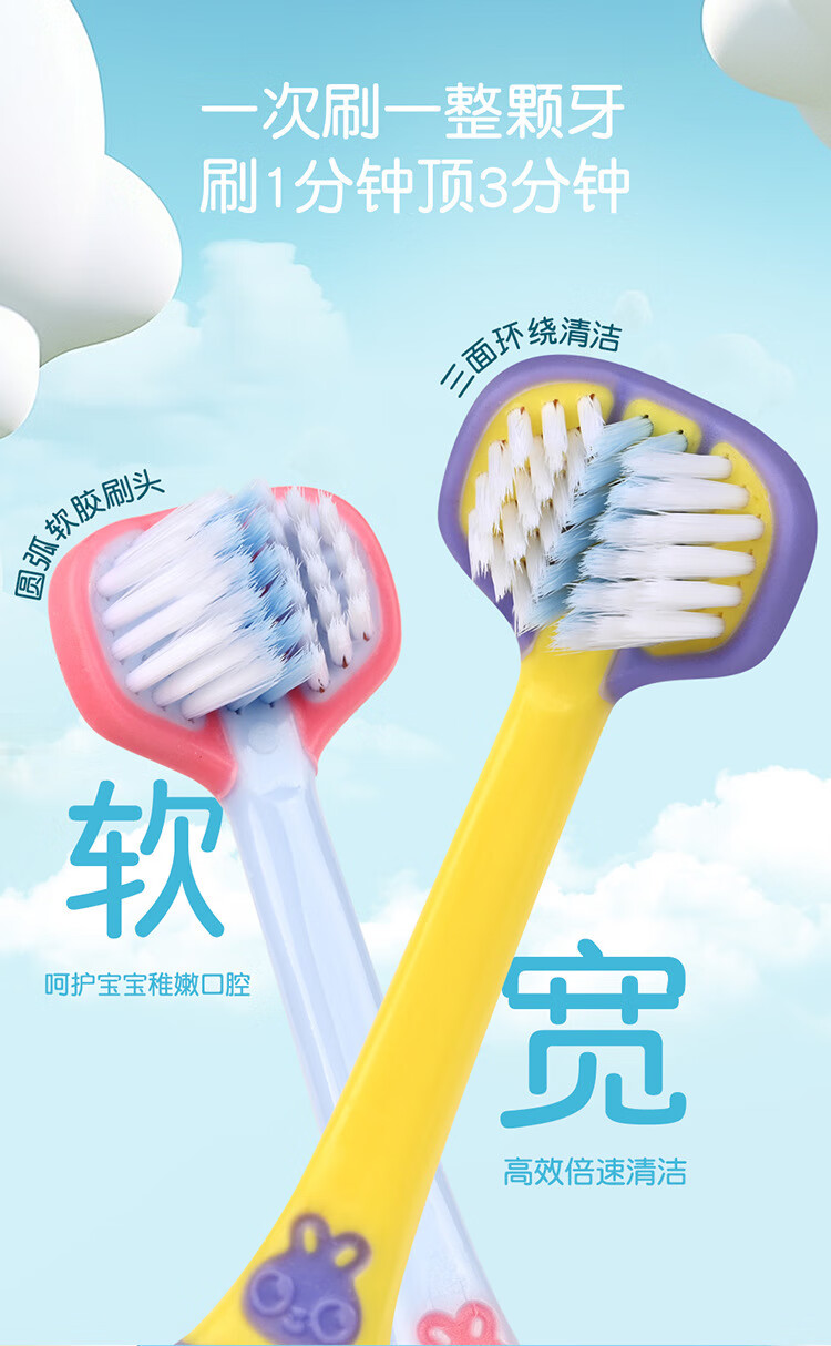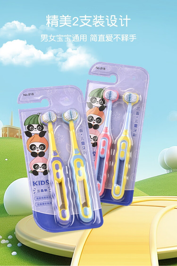 【甄选严选】儿童软毛三面牙刷超细毛3-15岁可爱宝宝换牙期口腔清 粉+黄 2支
